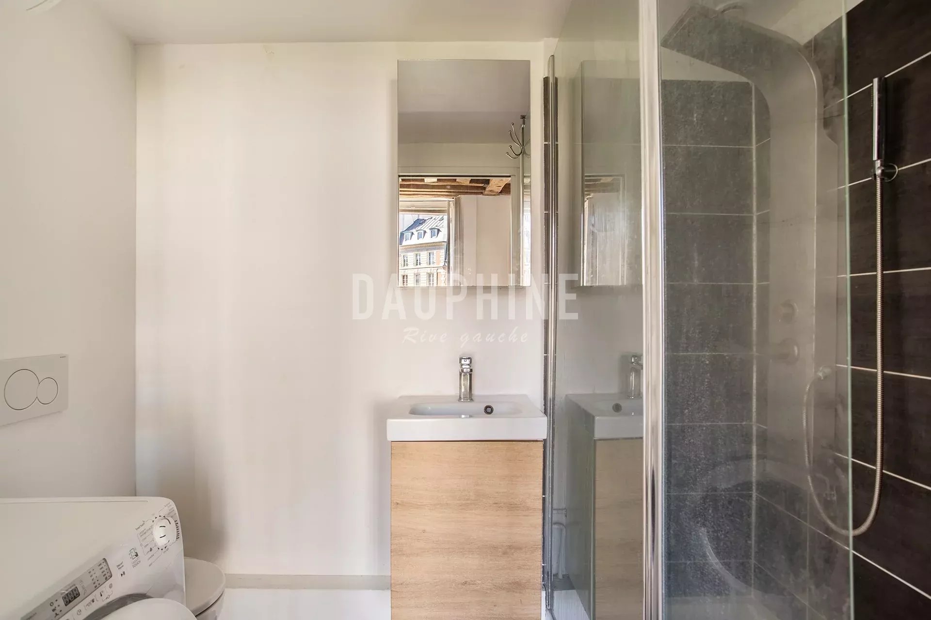 Place Dauphine - Dans un bel immeuble du 15ème siècle bien entretenu, découvrez ce studio en bon état de 23,78m² loi Carrez, bénéficiant d'une superbe vue sur la Place Dauphine, de poutres apparentes et situé au 3ème étage desservi par escalier. Entrée, pièce principale, coin avec cuisine, salle d'eau avec toilettes. Idéal pied à terre.