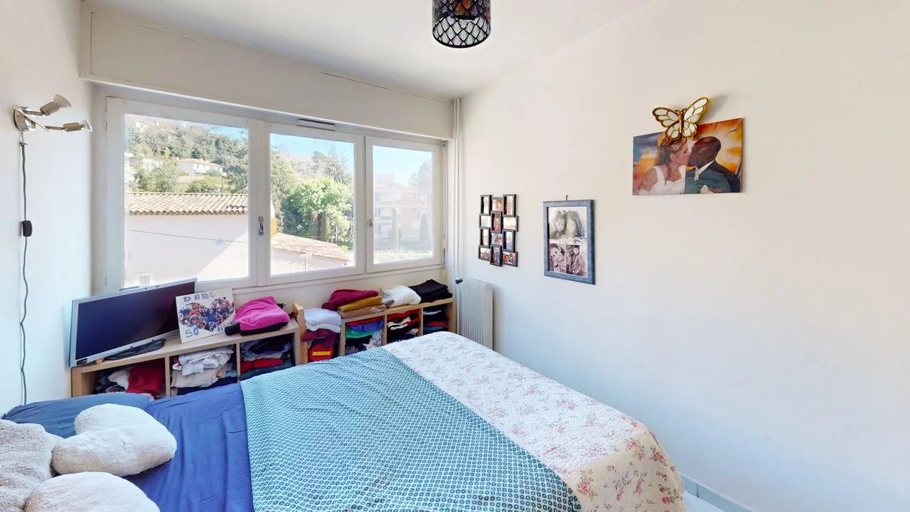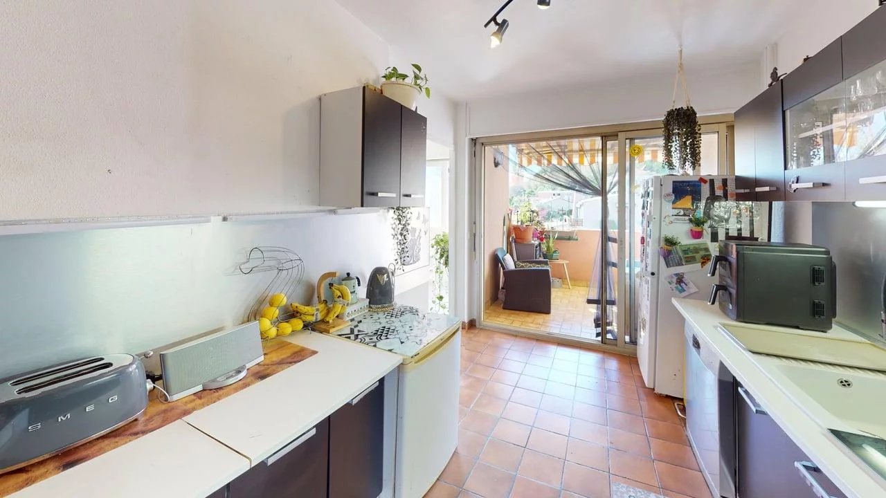 Situé au 2e étage sans ascenseur, cet appartement traversant est une véritable pépite de luminosité, baignée par le soleil toute l'année. Orienté Est-Ouest, il offre une vue dégagée alliant verdure abondante et le majestueux château de Villeneuve-Loubet.