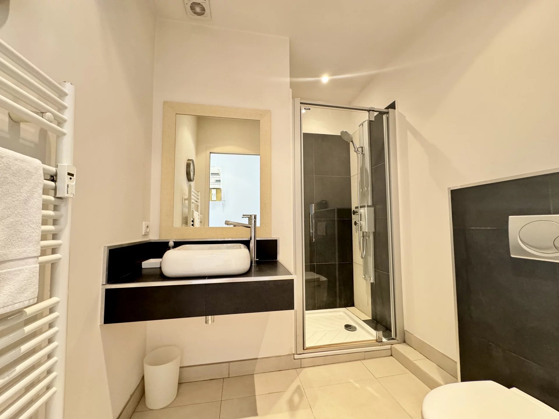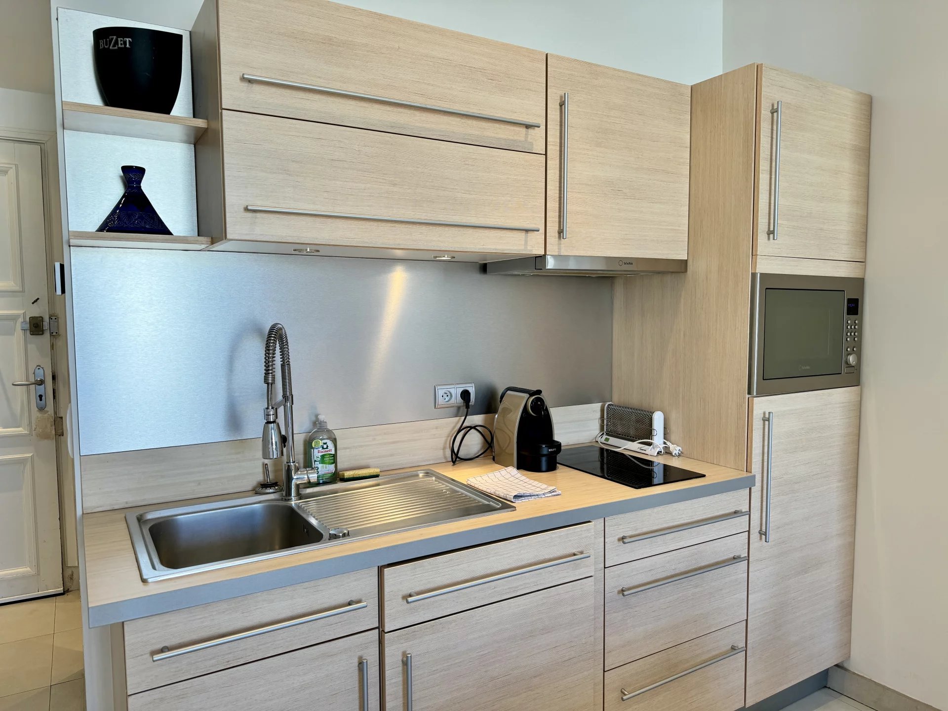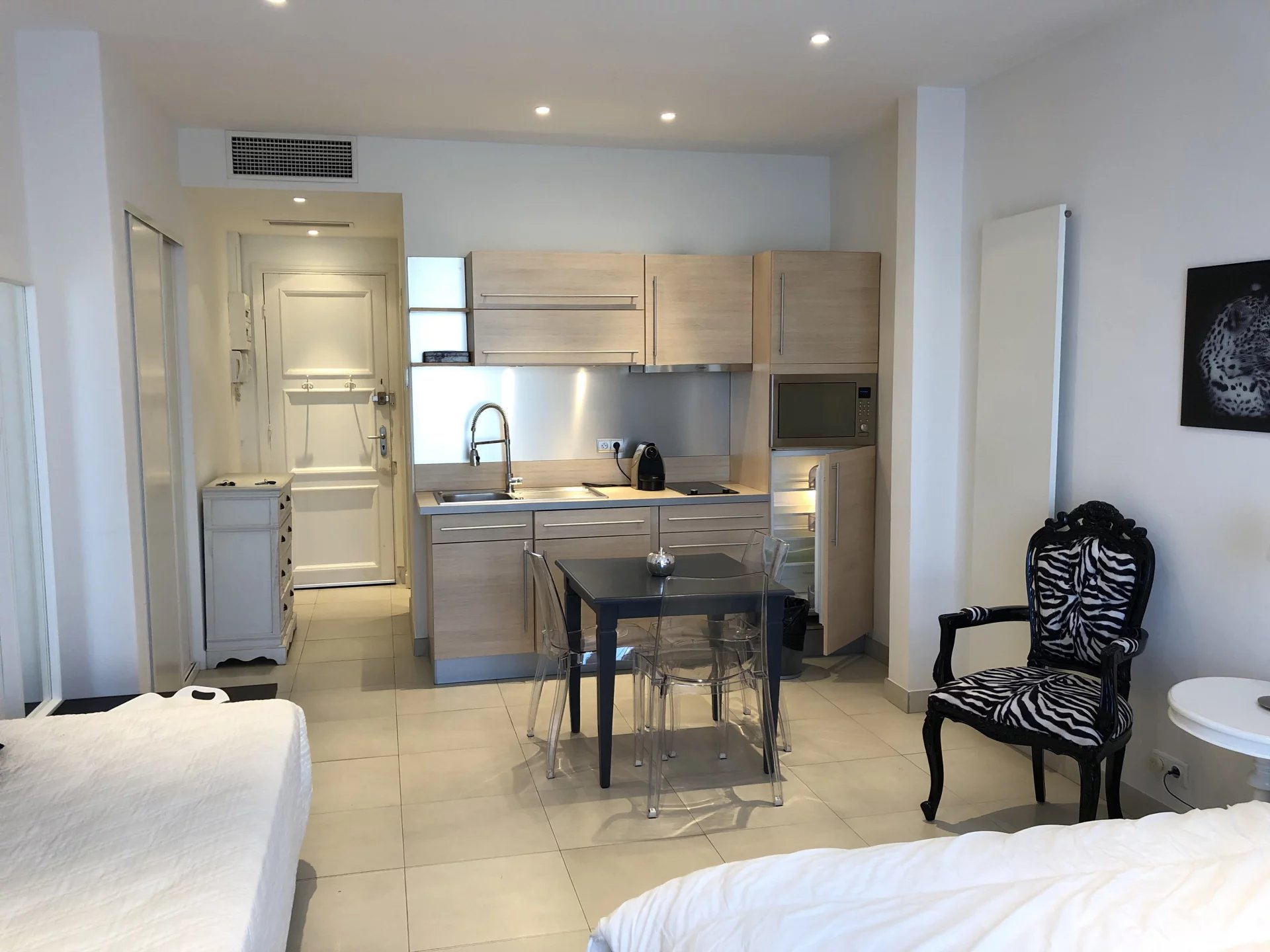 A Cannes, au 65 boulevard de La Croisette, dans le prestigieux Palais Miramar, entre les hôtels Carlton et Martinez, très joli studio de 31,64 m2 avec balcon donnant sur les jardins intérieurs, au calme. Entrée avec placards, salle de douches avec WC, pièce principale avec sa kitchenette. Appartement bien agencé, lumineux dans une résidence de grand standing avec concierge et service de sécurité 24/24h et 7/7j.