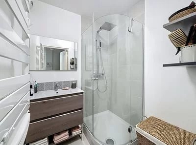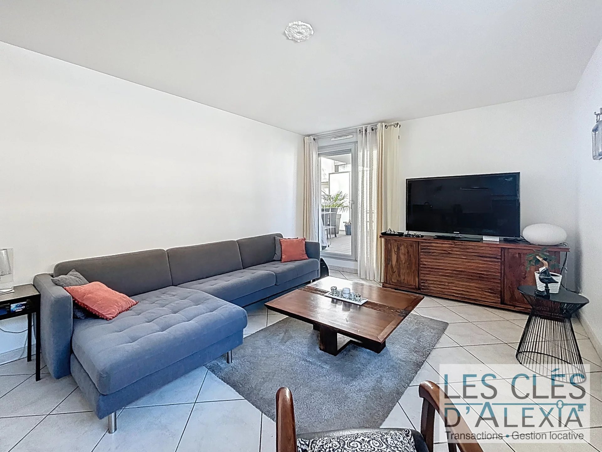 L’appartement se compose d'une jolie cuisine toute équipée ouverte sur le séjour avec une grande porte-fenêtre qui donne l'accès à la terrasse semi-couverte (exposition sud-ouest) pour profiter pleinement des beaux jours.