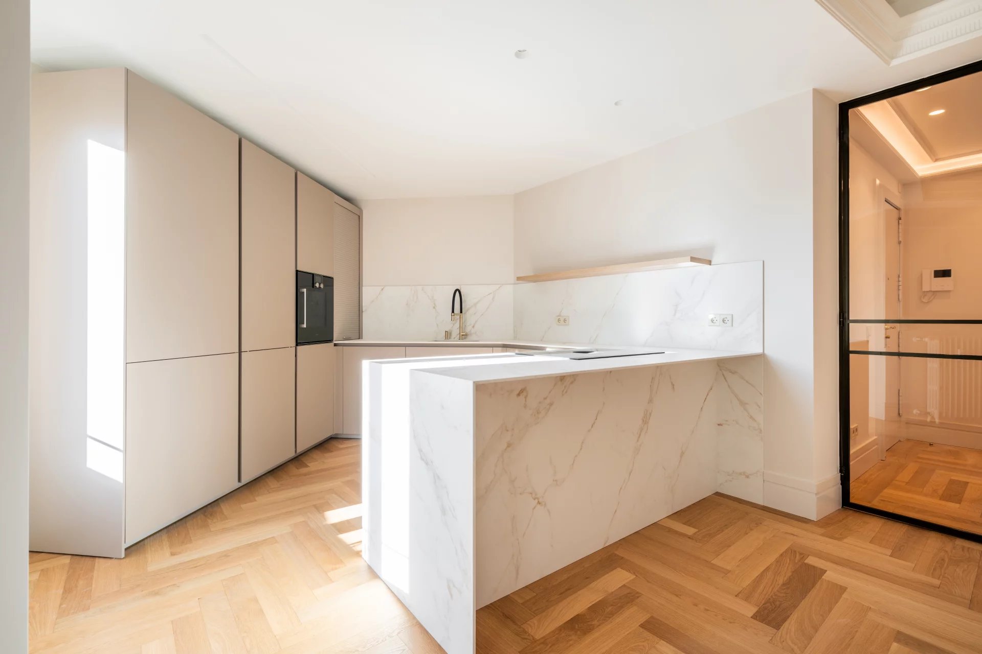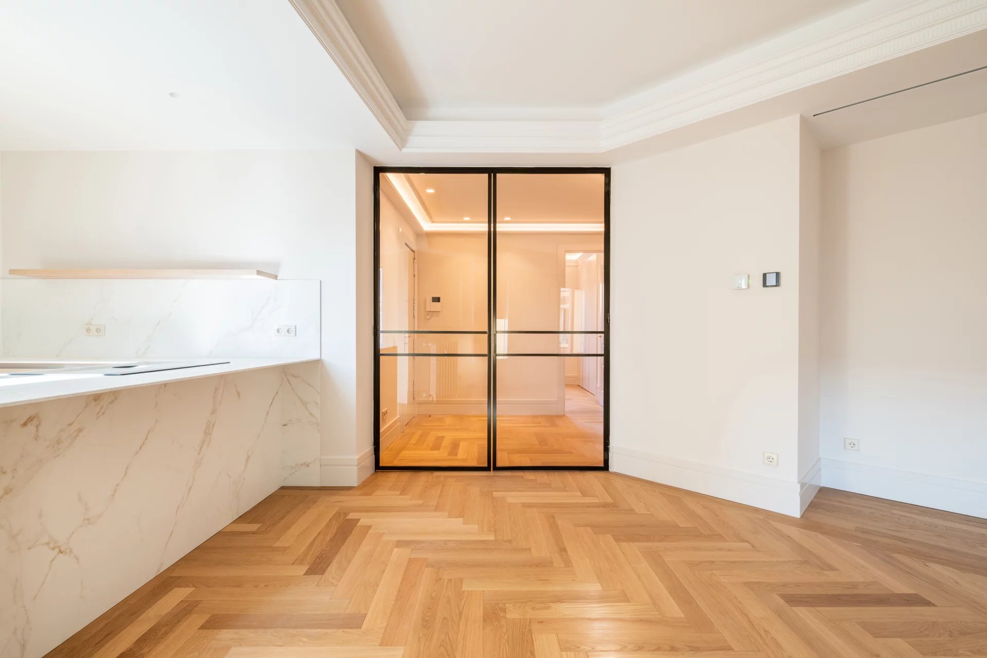Located in an elegant classic building with a doorman, the property has been renovated with high-quality materials, offering modernity and making the most of the space. It consists of a spacious and bright living room with a fitted kitchen, three bedrooms and two bathrooms. The master bedroom includes a large dressing room and access to the terrace.
