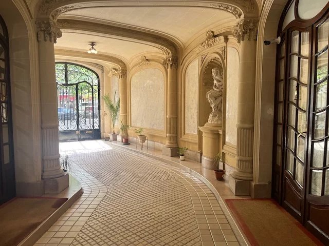 EXCLUSIVITE - PLACE SAINT FERDINAND - A 3 minutes du Métro Argentine, dans splendide immeuble haussmannien avec gardien, Très bel appartement de 186 m² situé au 4ème étage avec ascenseur composé de : entrée avec placard et dressing, double réception en rotonde avec vue dégagée, grande salle-à-manger, 3 belles chambres, 2 salles de bains avec wc et fenêtre, 1 salle d'eau, wc séparés, grande cuisine aménagée avec plans de travail en granit, une buanderie, une cave en sous-sol et un parking dans l'immeuble mitoyen. Chauffage collectif. Parquet, moulures, cheminées. Disponible le 15 juin