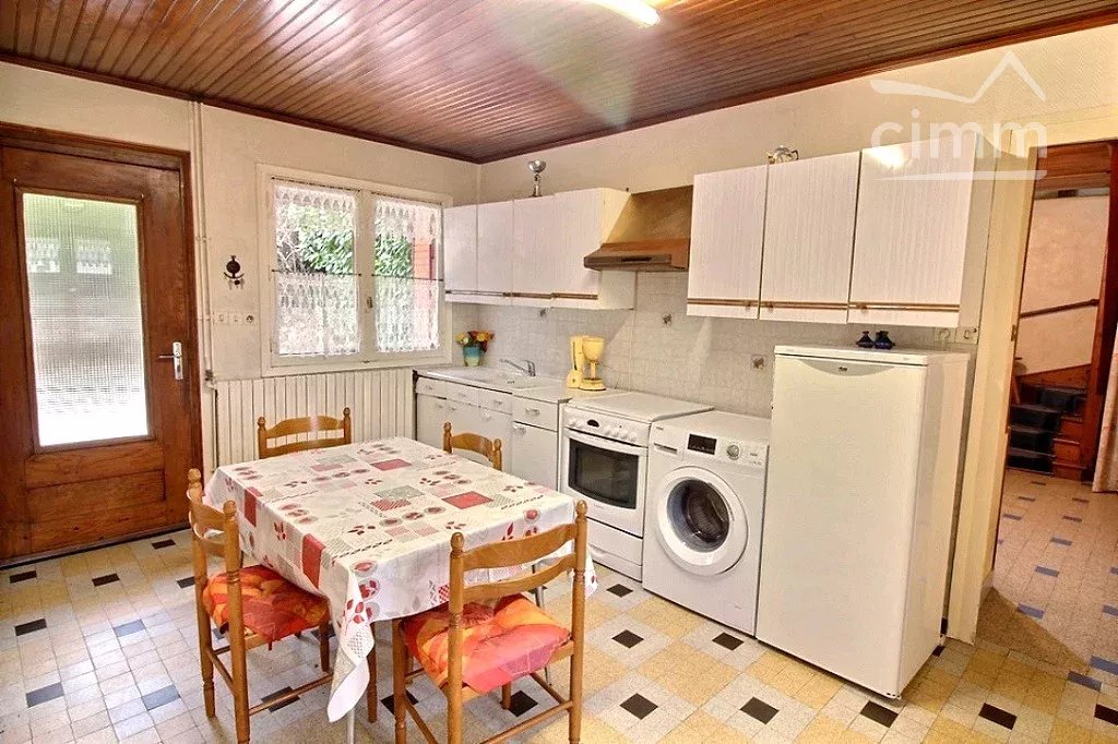 RDC : une cuisine, un salon / salle à manger, une buanderie avec salle d’eau, WC.
