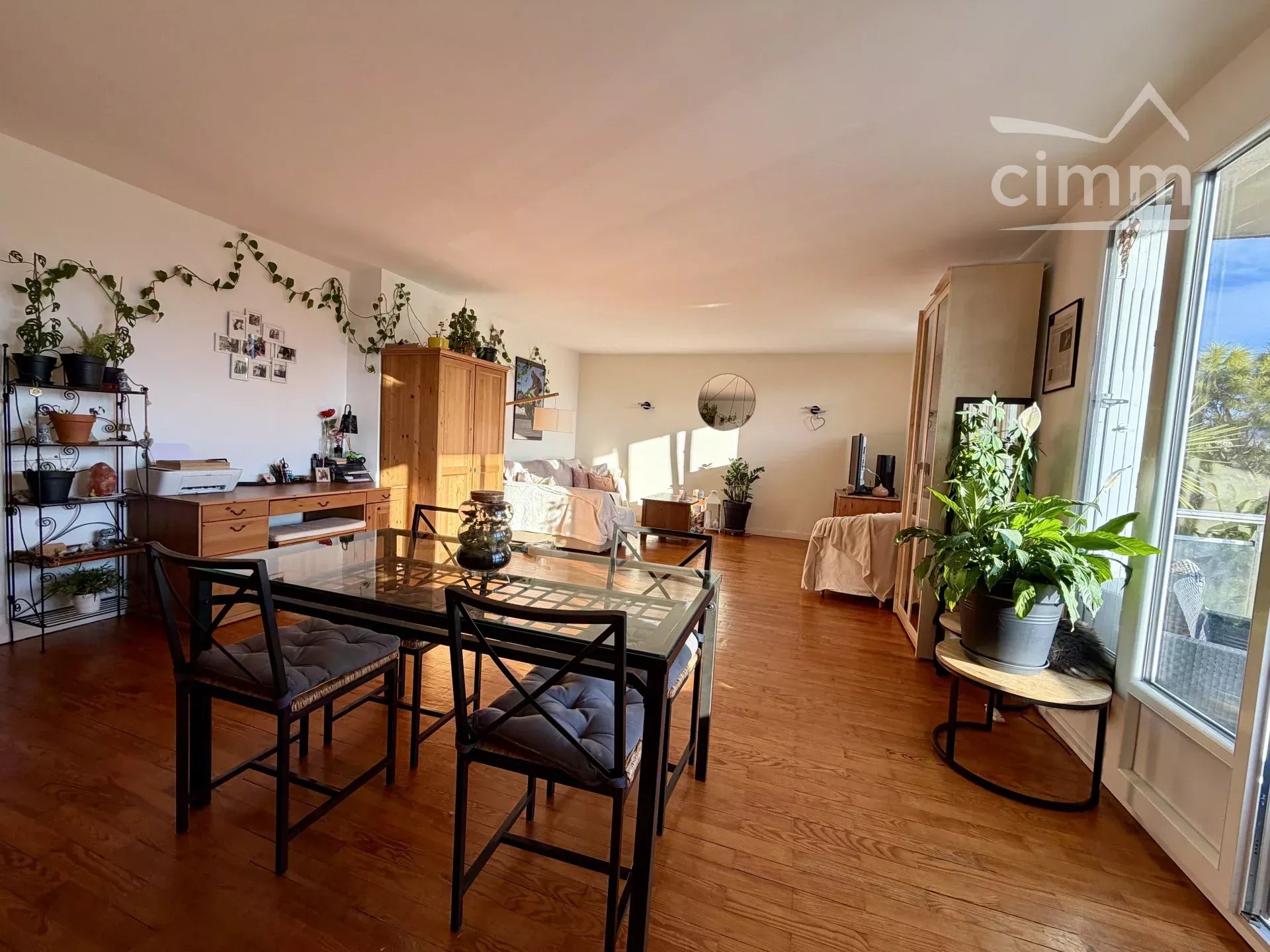 Le salon séjour baigné de lumière donne sur une terrasse, la grande cuisine équipée sur un balcon et le coté nuit se compose de 3 chambres et une salle d'eau avec une douche à l'italienne neuve.