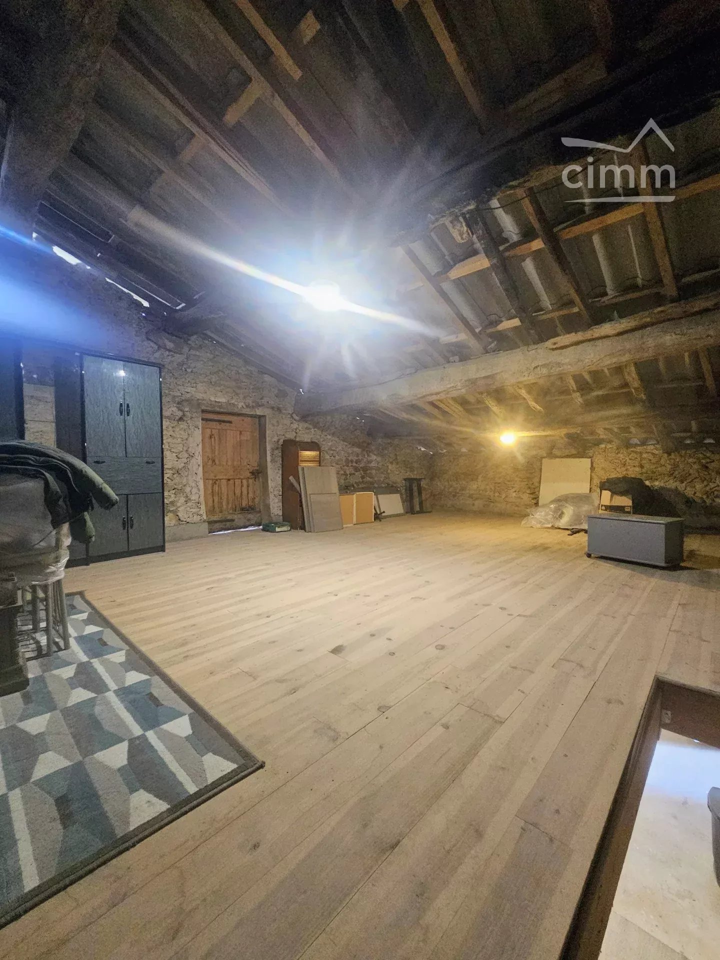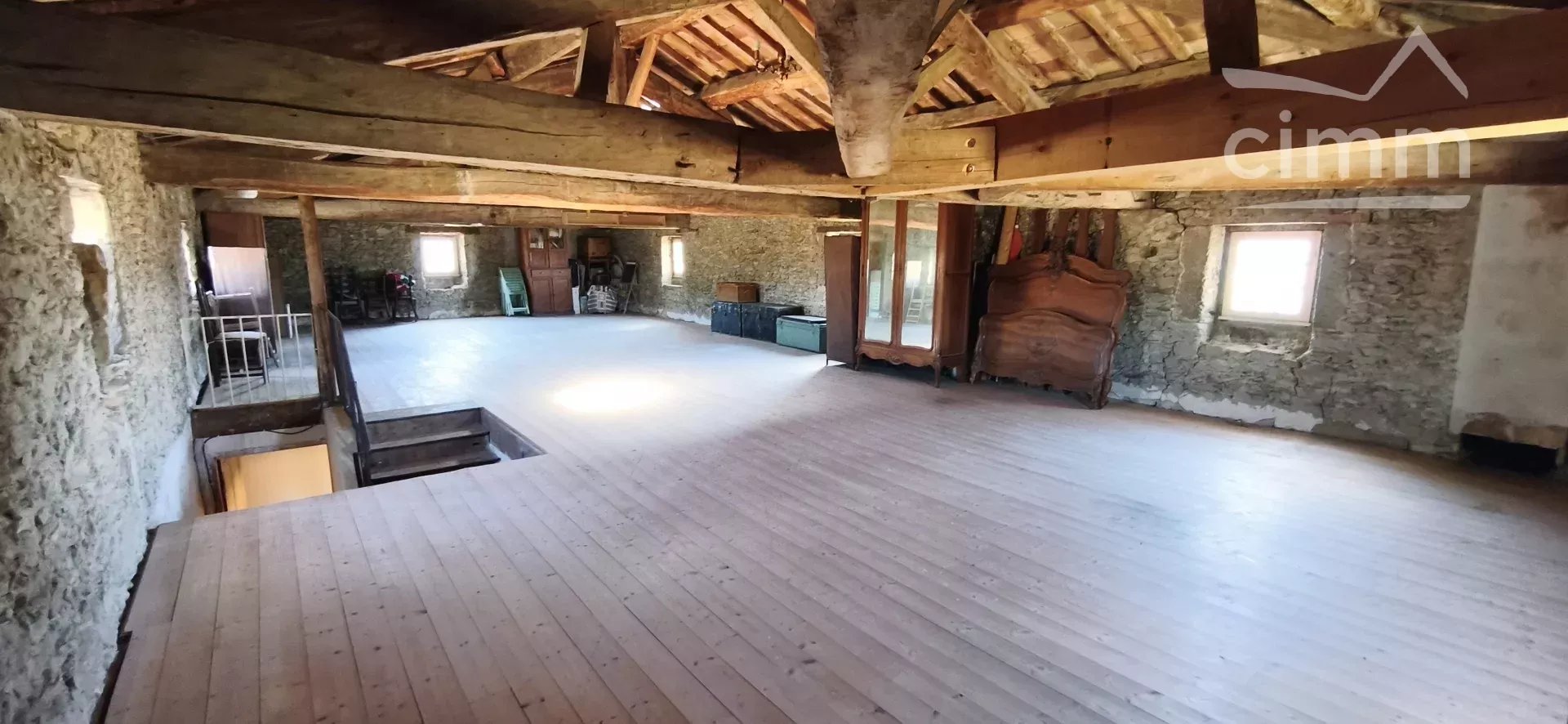 Le deuxième niveau révèle un grenier de 113 m² aux volumes remarquables — une page blanche pour un projet d'aménagement ambitieux : suite parentale, salle de jeux, bureau ou espace d'hôtes