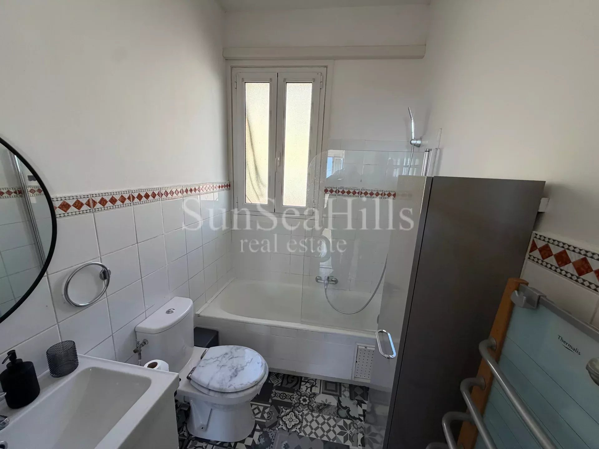 Dans un petit immeuble du centre village, en 1er et dernier étage, joli appartement 2-3 pièces de 43m². Balcon Sud avec vue mer. Récemment rénové. Entrée, séjour avec cuisine équipée, 1 chambre et un bureau ou chambre d'enfant. Salle de bains avec fenêtre. Cave. Faibles charges. L'appartement peut être vendu meublé