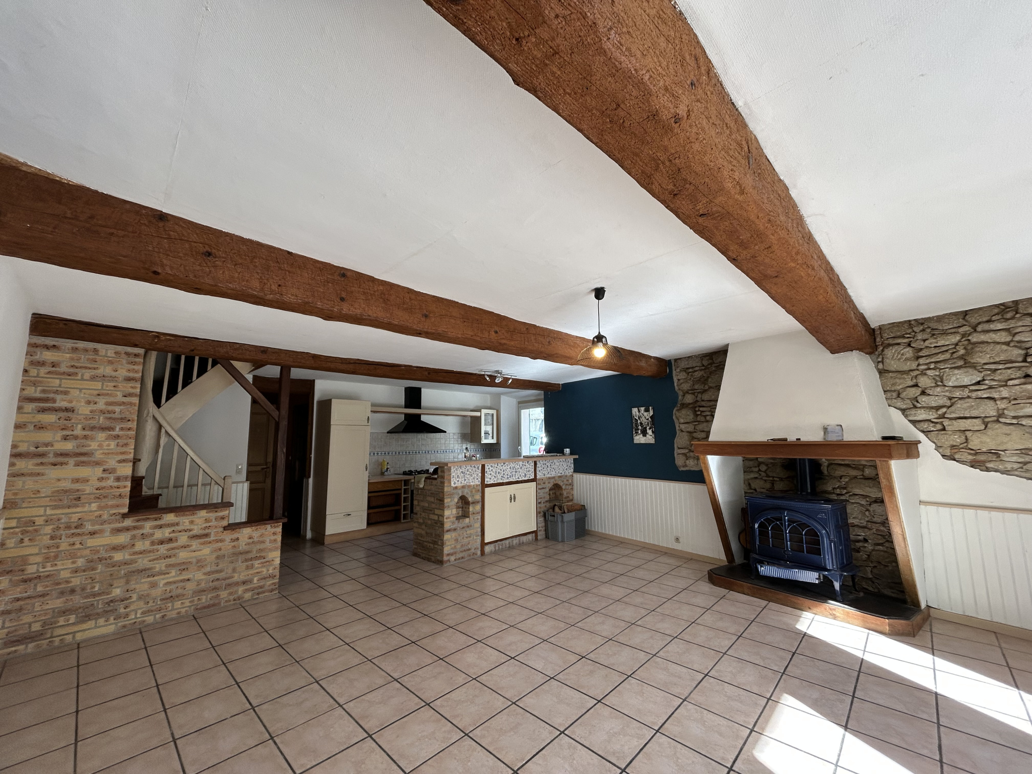 Jolie rénovation en pierres apparentes pour cette spacieuse maison (plus de 130m2) en plein coeur du village. Conviviale et authentique, comprenant pièce à vivre ouverte sur cuisine americaine, 3 grandes chambres avec possibilité d'agencer une 4ème dans les combles, salle de bains et 2 WC. Garage pour motos et vélos avec un atelier récent. Cour ensoleilé.