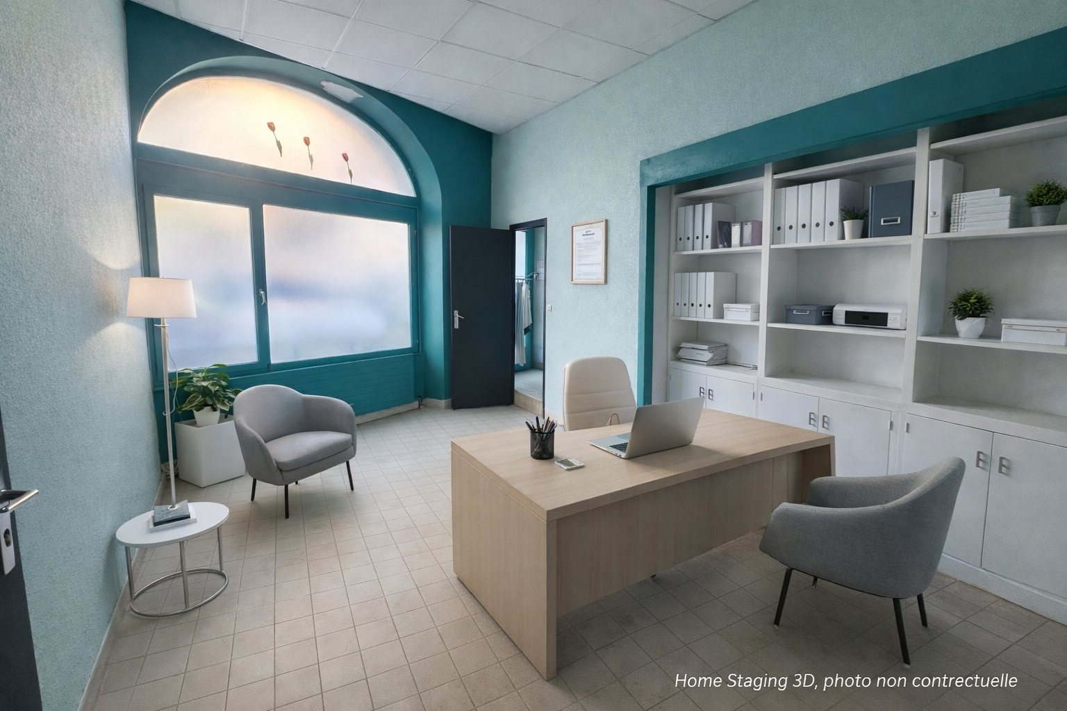 Accès de plain-pied facilitant l'accueil de la clientèle. Cave en sous-sol offrant un espace de stockage complémentaire.
