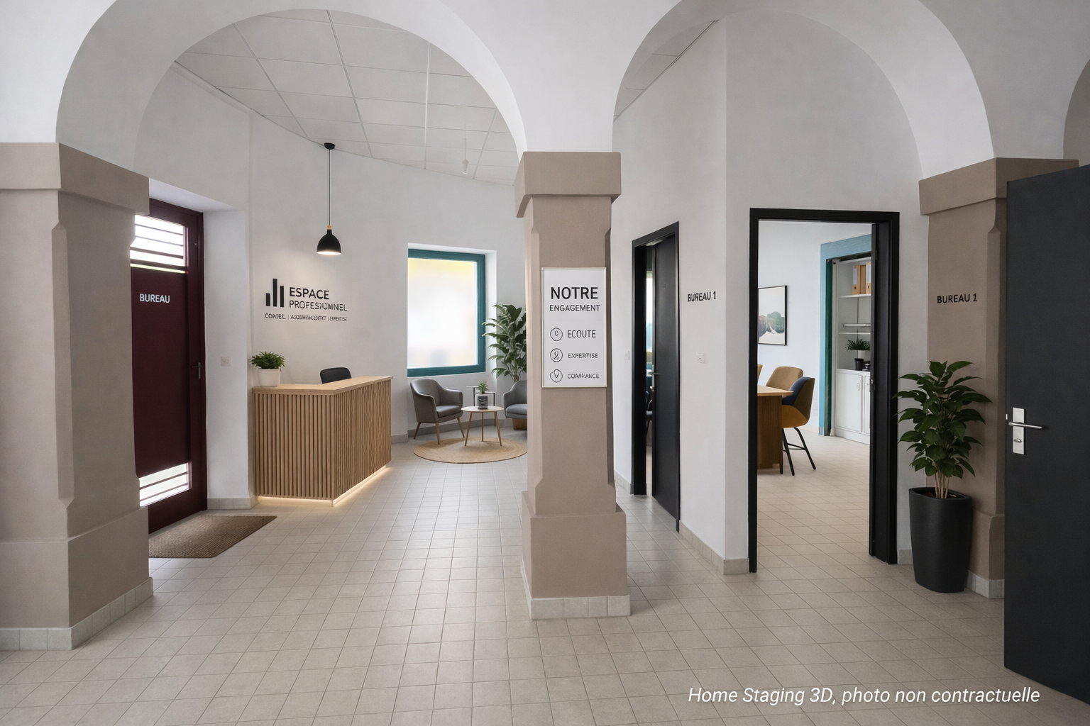 Emplacement central avec accès rapide aux commerces, mairie, services publics et stationnements à proximité immédiate. Environnement adapté à une activité recevant du public.