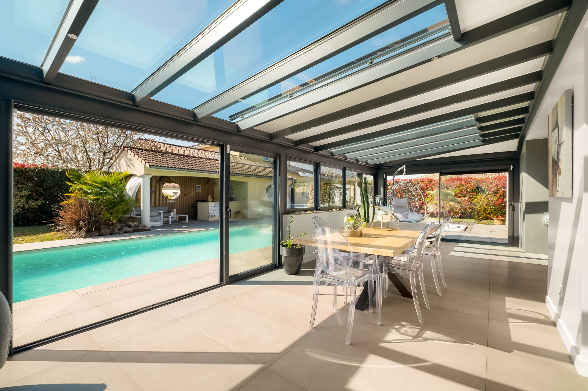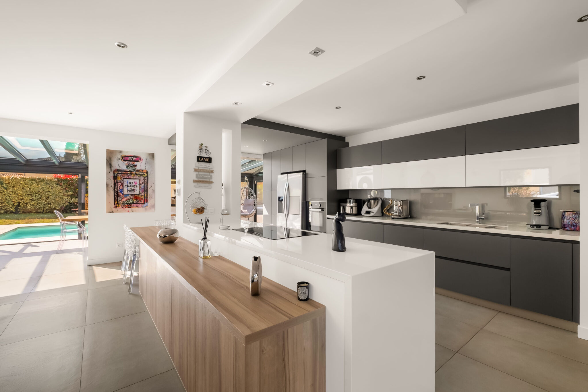 JUNE IMMOBILIER vous propose en exclusivité cette superbe maison de 188 m² habitables, implantée sur un terrain de 1 005 m², située sur les hauteurs de Chasse-sur-Rhône, au sein d'un lotissement calme et recherché. Dès l'entrée, vous serez séduit par une pièce de vie exceptionnelle d'environ 100 m², lumineuse et conviviale, comprenant une cuisine ouverte entièrement équipée. Une véranda prolonge harmonieusement cet espace et crée une véritable continuité entre intérieur et extérieur, apportant une luminosité naturelle remarquable. Le rez-de-chaussée accueille également : Deux chambres, dont une suite parentale, une seconde salle de bains, un WC indépendant, un bureau, une buanderie, un garage attenant ! À l'étage, vous découvrirez : Deux chambres supplémentaires, une salle de bains, un WC indépendant. L'extérieur, soigneusement aménagé, est un véritable espace de détente : Piscine, Jacuzzi intégré à la terrasse, un Pool house avec cuisine d'été et espace salon idéal pour recevoir amis et famille ! Le jardin, paysagé avec goût, offre un cadre de vie agréable, idéal pour profiter des beaux jours en toute tranquillité. Cette maison allie parfaitement volumes, luminosité et confort, avec des prestations de qualité pensées pour le quotidien. ? Pour plus d'informations, contactez l'agence JUNE au 04 37 65 15 80 ou Julien SAROLI 06 16 47 82 98 Honoraires à la charge du vendeur DPE : C.Informations LOI ALUR :