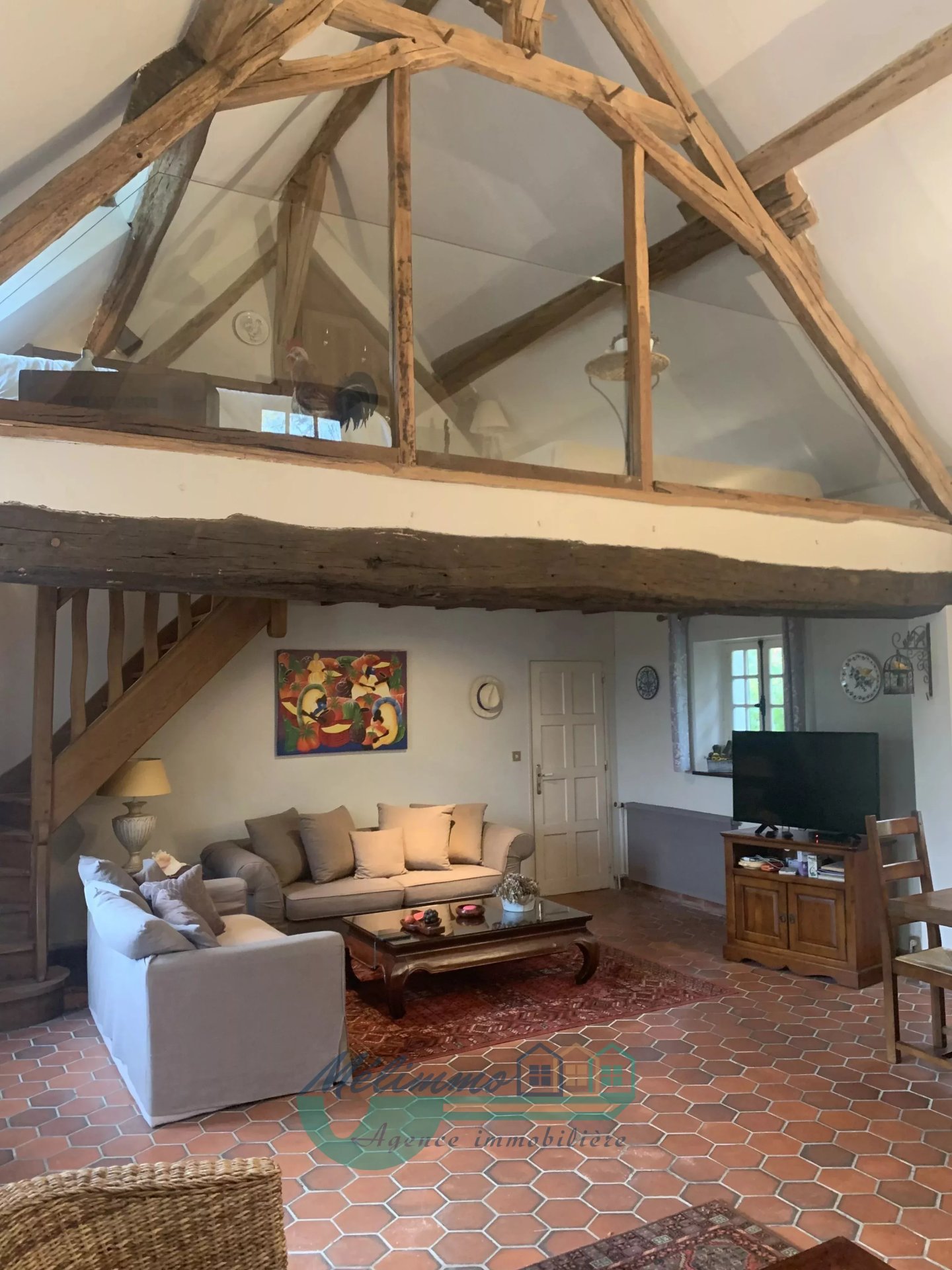 A l'étage, on découvre une mezzanine, qui peut servir de chambre supplémentaire, de bureau ou d'espace détente. Dans le prolongement, un grenier aménageable offre un potentiel supplémentaire pour créer une pièce selon vos envies.