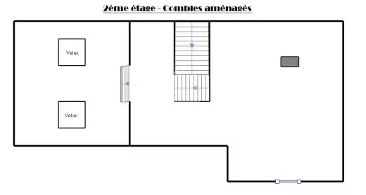 Au 1 étage: 3 chambres, un coin nuit ou bureau avec une salle de douche, un WC.