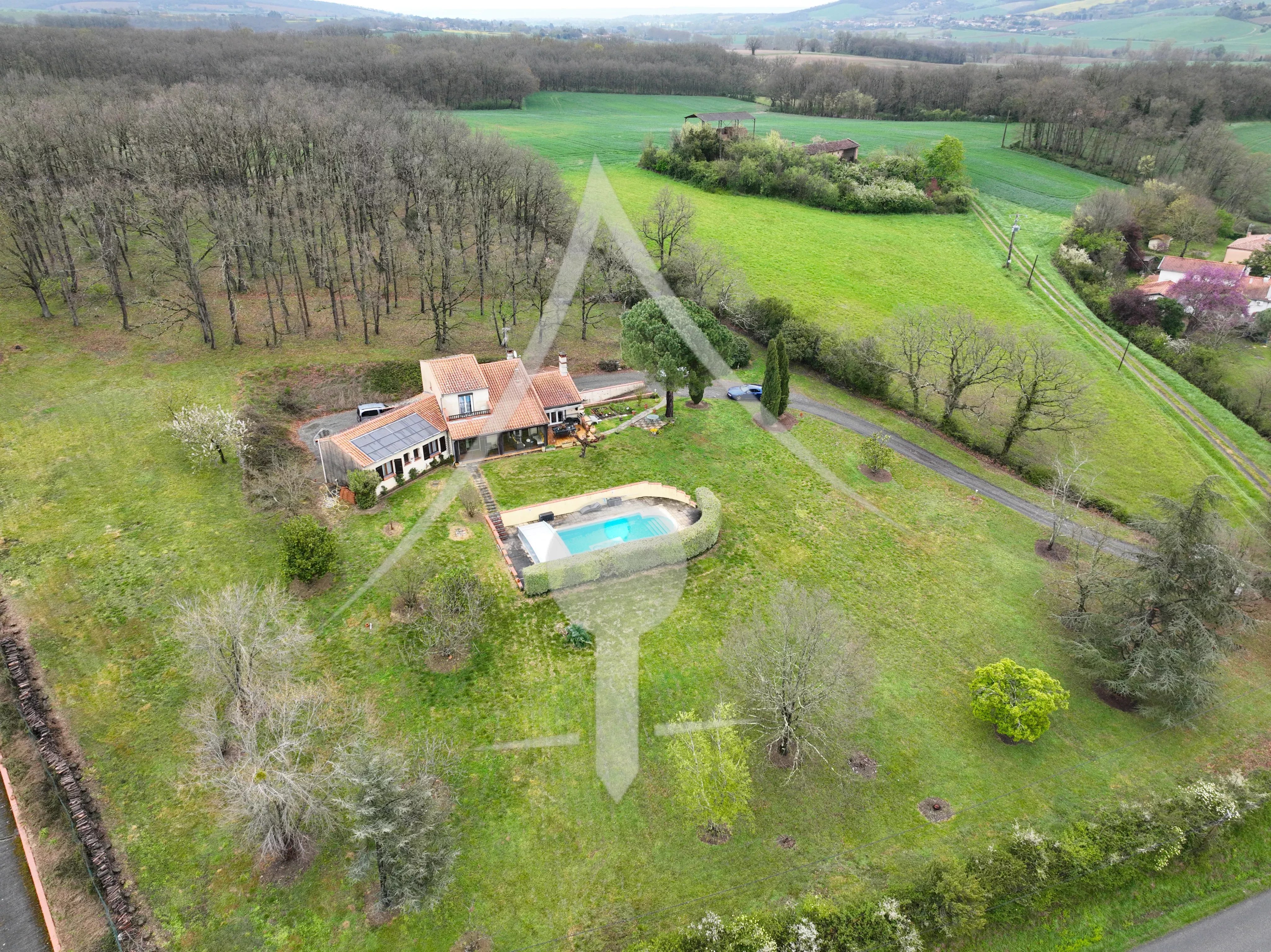 Découvrez cette belle maison de 176 m² construite en 1992, idéalement exposée plein Sud et offrant une vue dégagée et imprenable sur les montagnes et la campagne. Implantée sur un terrain généreux de 1,29 hectare agrémenté d'un bois privé, elle conjugue espace, nature et qualité de vie pour toute la famille. Une distribution optimale sur deux niveaux : Au rez-de-chaussée, la maison s'articule autour d'un vaste séjour de 47,3 m² baigné de lumière, d'une cuisine aménagée de 14,39 m² et d'une véranda de 12,57 m² idéale pour profiter de la vue en toute saison. Ce niveau accueille également 3 chambres (16,32 m², 10,93 m² et 16,48 m²), une salle de douche avec WC, un cellier, un dégagement et des WC indépendants. À l'étage, 3 chambres supplémentaires (11,35 m², 11,01 m² et 9,77 m²) ainsi qu'une salle de douche avec WC et un dégagement complètent parfaitement la distribution — soit au total 6 chambres pour accueillir famille et invités dans les meilleures conditions. Un sous-sol de 113 m² offre un espace de stockage ou d'aménagement considérable. Des extérieurs d'exception : Profitez d'une piscine, d'un espace barbecue, d'un éclairage extérieur soigné, le tout sur un terrain de plus d'1,2 hectare avec un bois privé — un véritable écrin de verdure offrant calme, intimité et une vue panoramique sur les montagnes et la campagne environnante. Un cadre de vie rare et privilégié, idéal pour les amoureux de la nature. Bien en bon état, libre immédiatement. Une opportunité exceptionnelle alliant surface, prestations et environnement naturel préservé ! Contactez Concept Immo Plus pour organiser votre visite. 📞