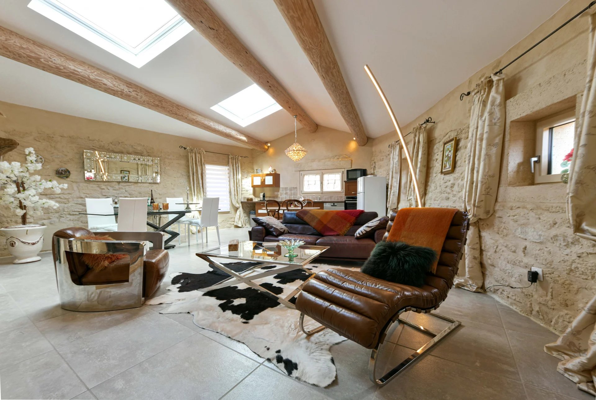 Superbe pièce de réception avec insert Restauration complète de grande qualité 3 chambres, 2 salles de bains, Grand garage de 47 m²et cave de 40 m²