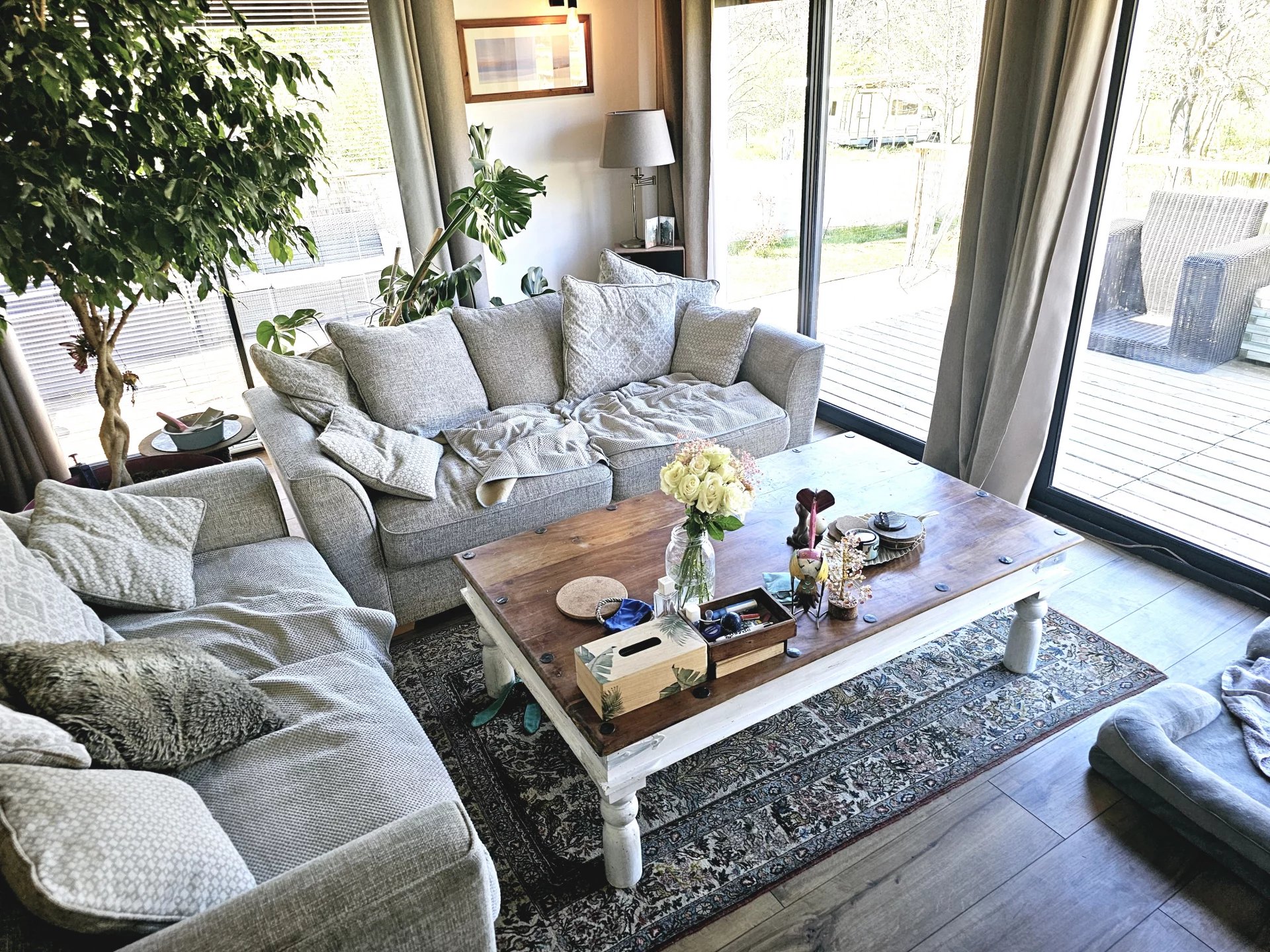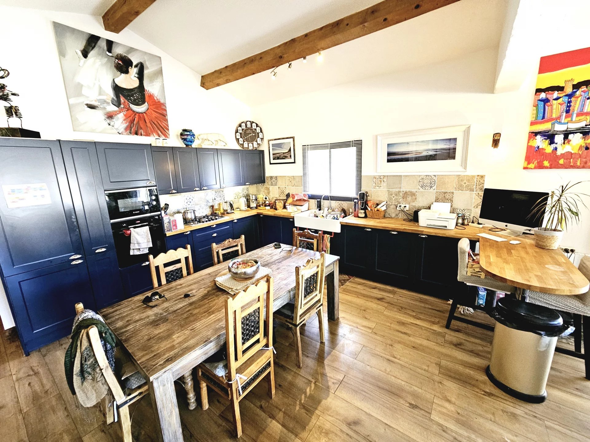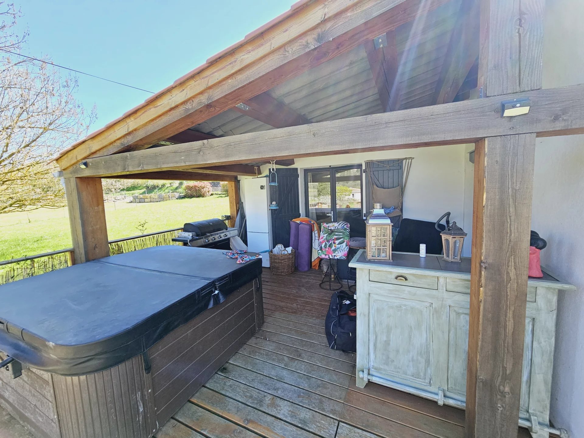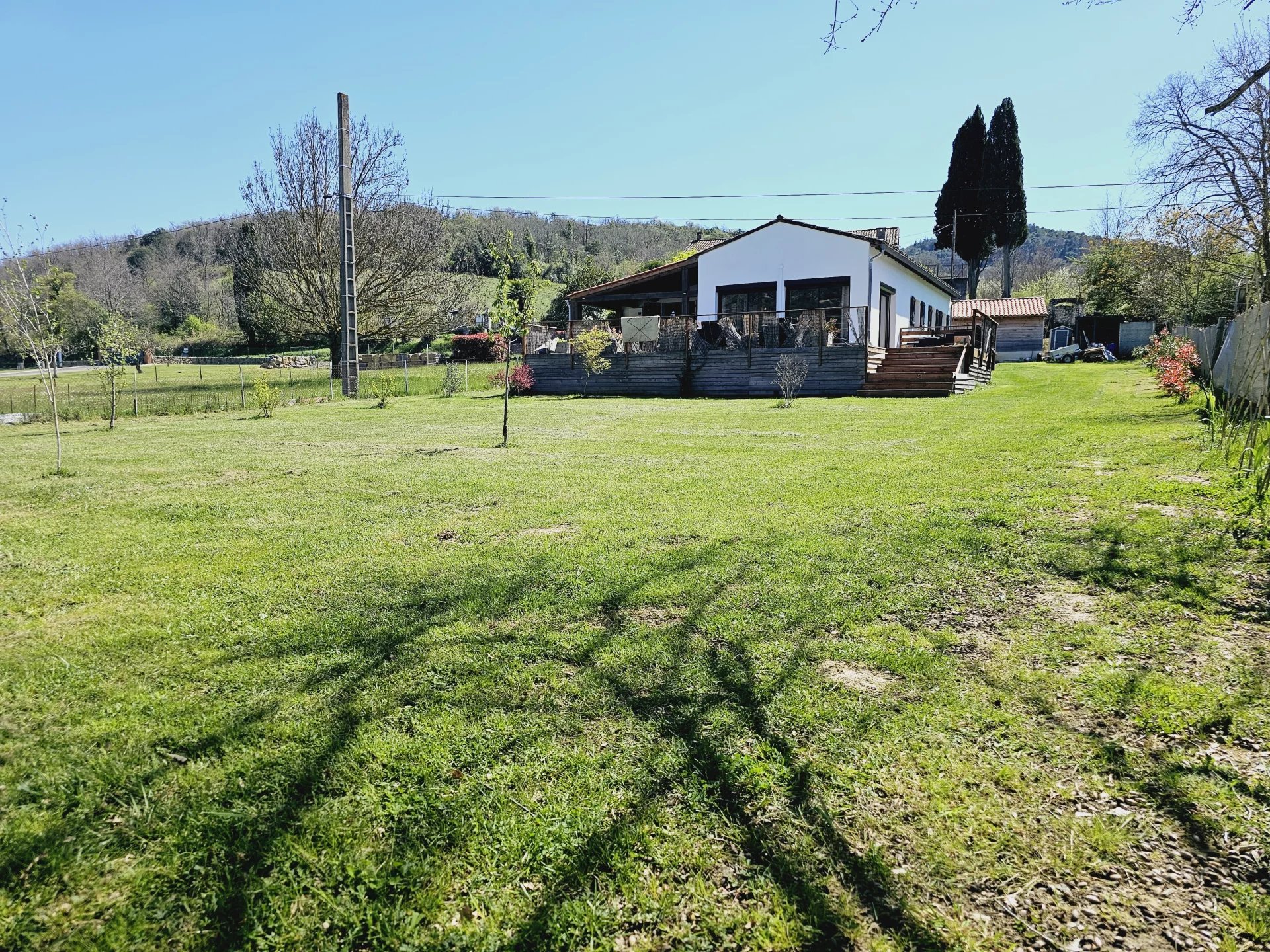 Située en bordure de Quillan, cette charmante villa offre 105,5 m² d'espace de vie spacieux, comprenant trois chambres confortables et un design contemporain élégant avec des accents rustiques. Le salon lumineux est agrémenté de poutres en bois apparentes, de grandes fenêtres coulissantes et d'une cheminée chaleureuse, créant le cadre idéal pour les réunions de famille. Les conforts modernes tels que la climatisation, le double vitrage et une connexion Internet fiable garantissent un niveau de vie élevé toute l'année. La cuisine ouverte et la salle à manger sont parfaites pour recevoir, avec un espace de comptoir suffisant et des finitions de qualité. Chaque chambre est soigneusement décorée pour maximiser la chaleur et la détente, avec beaucoup de lumière naturelle. La maison s'ouvre sans effort sur une grande terrasse extérieure, idéale pour les repas en plein air ou pour profiter de la vue sereine sur la campagne. Passez des week-ends tranquilles dans le jardin spacieux ou détendez-vous dans le jacuzzy privé après une longue journée. Le jardin clôturé, le garage et l'emplacement calme et paisible—avec de l'espace pour une maison mobile de 2/3 chambres—font de cette villa un mélange parfait de confort, de fonctionnalité et de charme. VIDÉOS DISPONIBLES SUR DEMANDE.