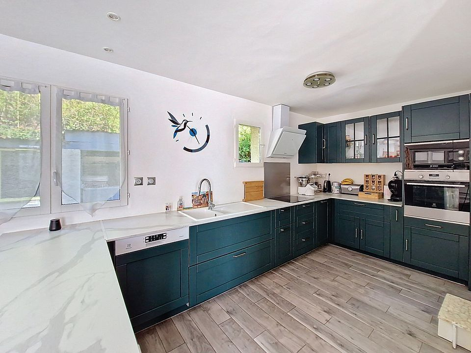 Elle se compose au rez-de-chaussée d'une entrée, d'une spacieuse pièce de vie de 46 m² avec séjour double et cuisine ouverte neuve, entièrement aménagée et équipée, de 3 chambres, d'une salle de bains complète avec douche, baignoire et double vasque, ainsi que de WC indépendants.