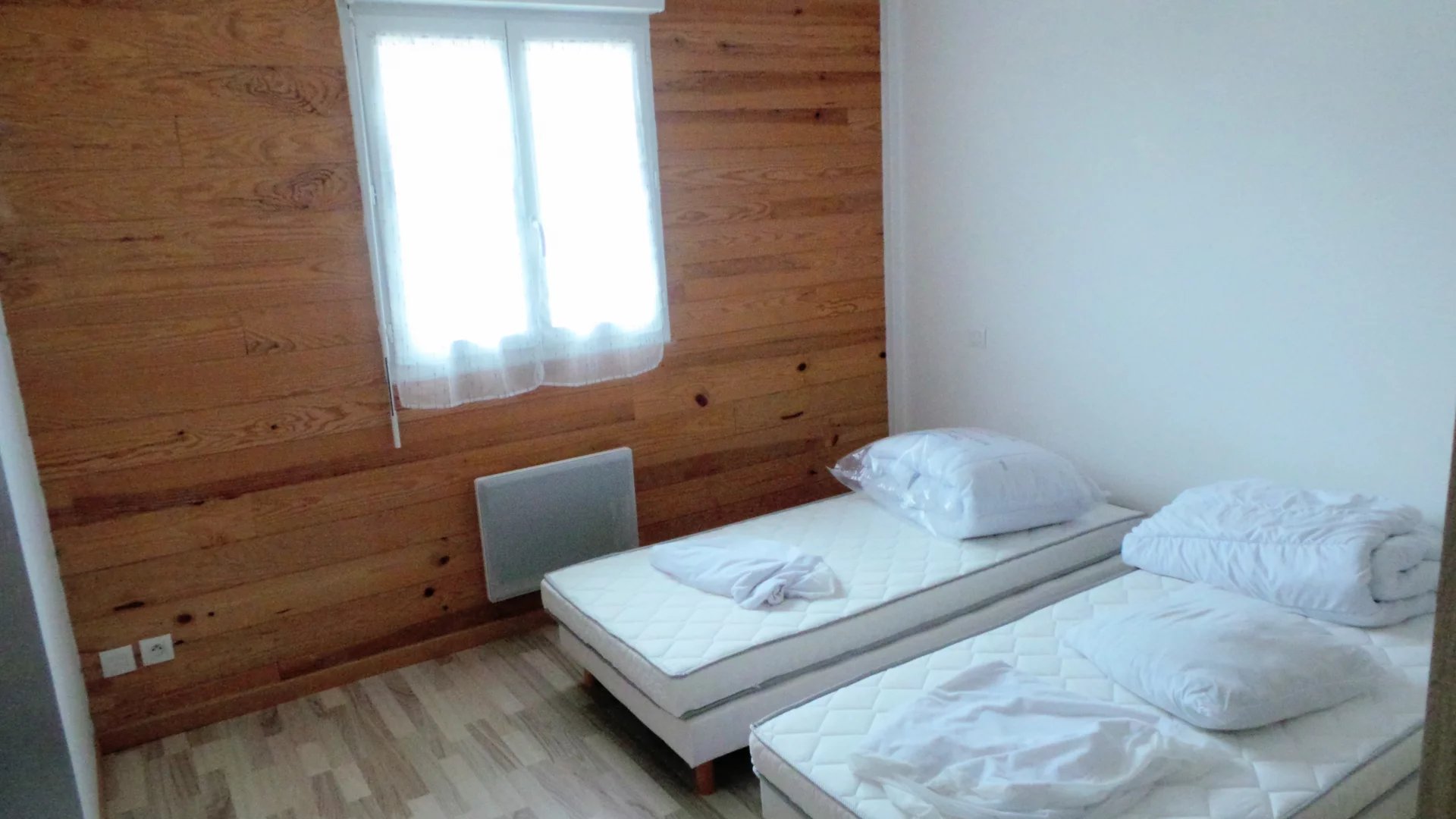 Pavillon mitoyen (70m2) meublé et équipé comprenant séjour avec cuisine à l'américaine aménagée et équipée, 2 chambres, cellier, salle d'eau, wc, terrasse, cave, petit jardin clos. (provision pour l'eau comprise dans les charges) Place parking.