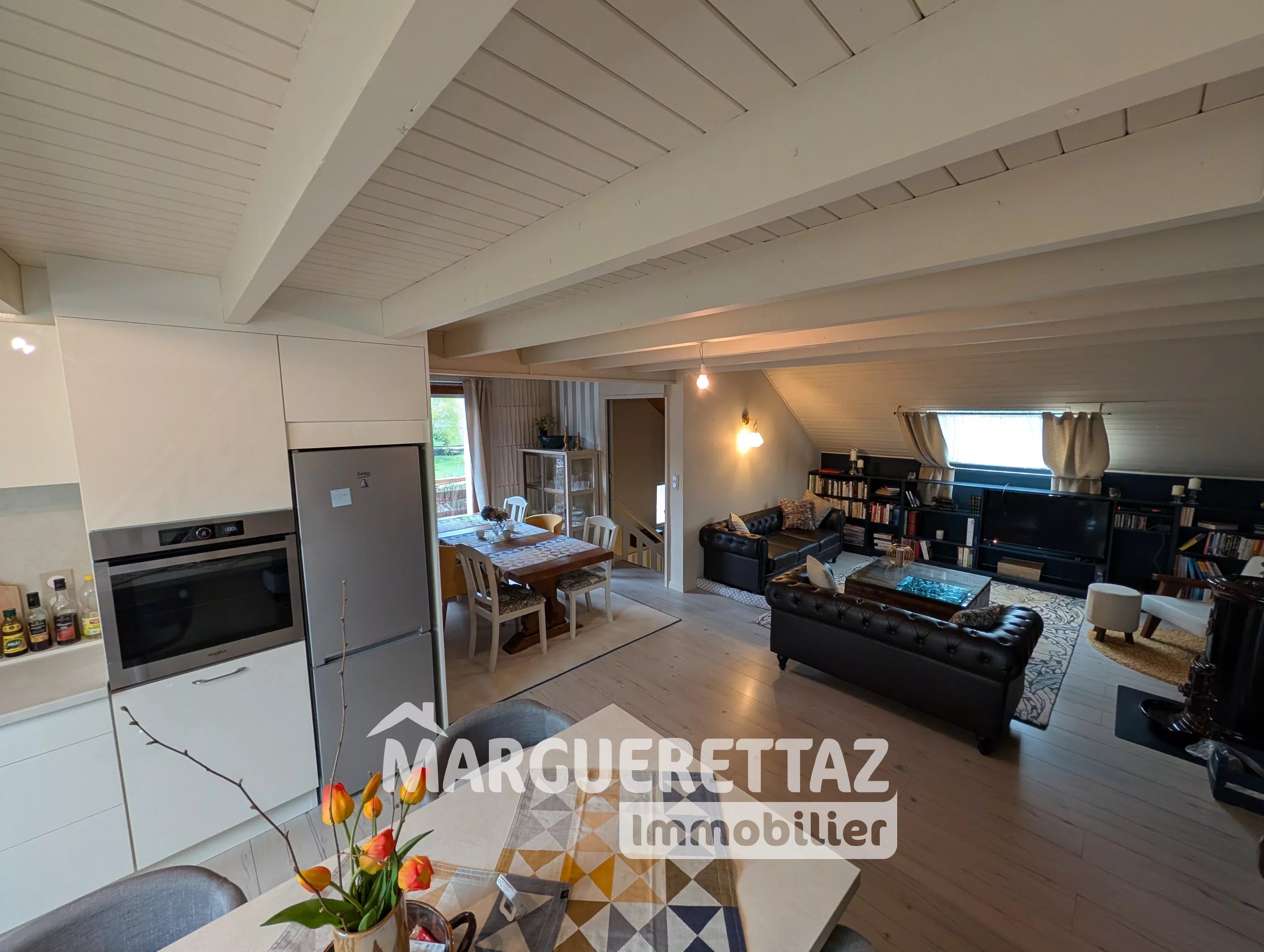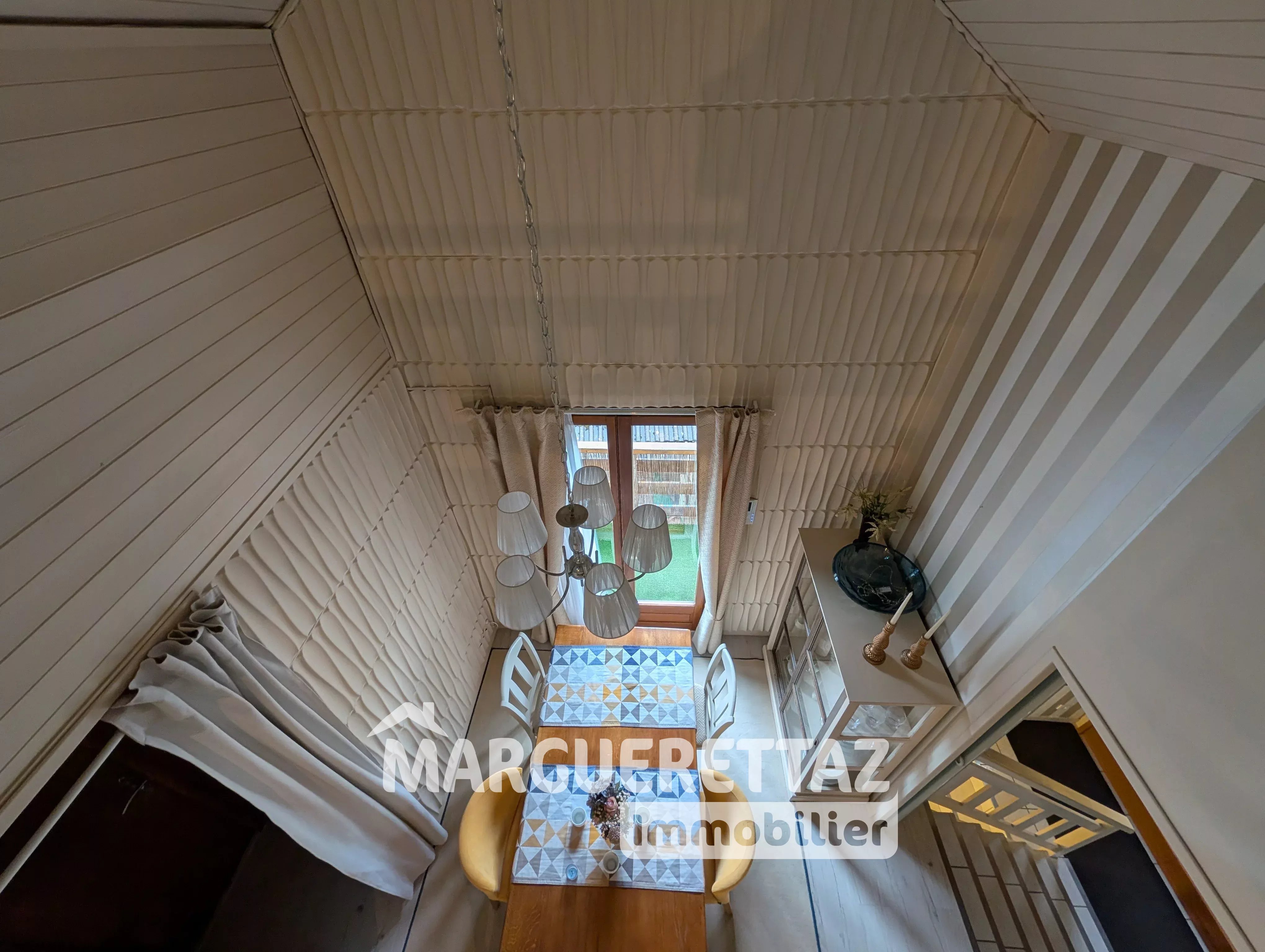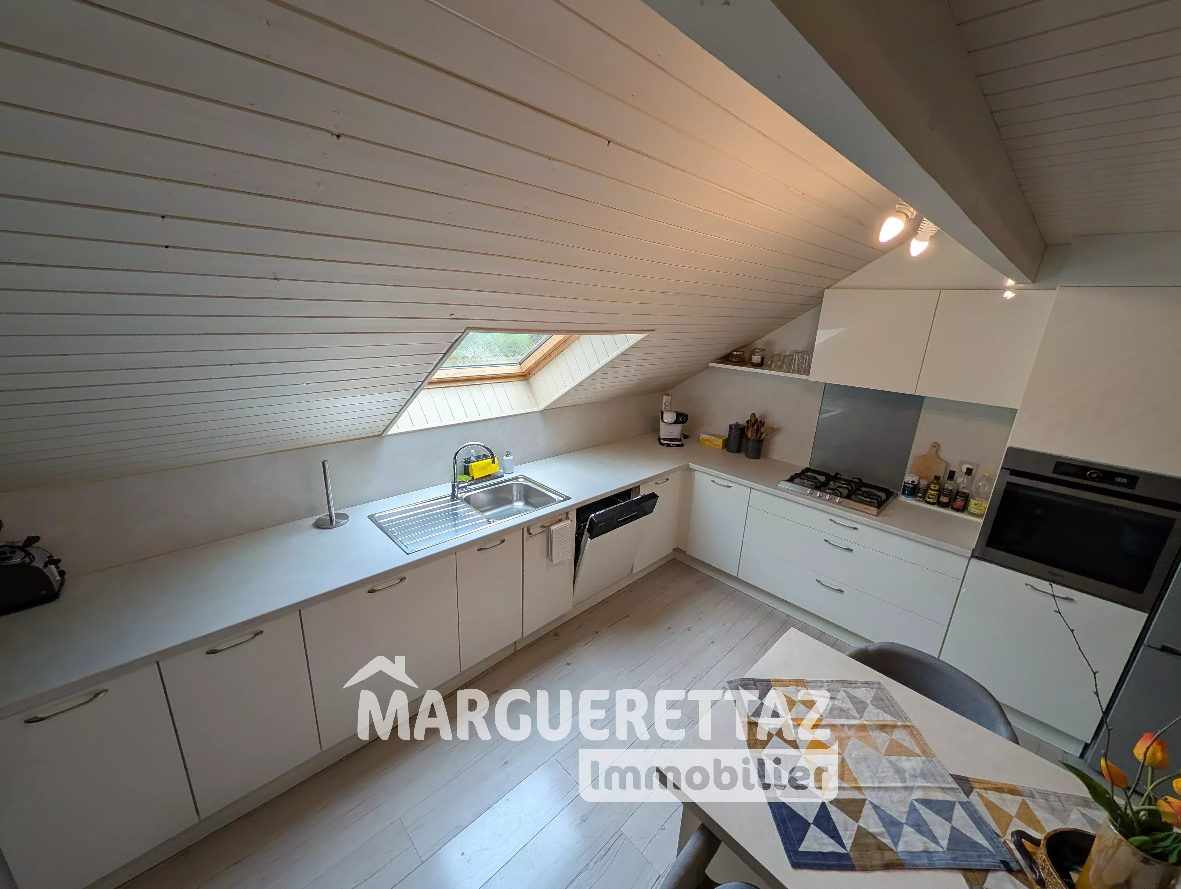 NOUVELLE EXCLUSITE A L'AGENCE Coup de cœur à ST JEOIRE pour ce joli T4 de 82 m² rénové en 2021, traversant, il est situé au dernier étage d'une petite résidence bien entretenue et entièrement rénovée en 2014 (faible charge 40 € / mois syndic bénévole). CE BIEN EST VENDU ENTIEREMENT MEUBLE (aucun travaux à prévoir). L'appartement se compose : D'une belle pièce de vie avec cuisine ouverte et équipée, placard de rangement, 3 chambres, une salle douche, un WC qui se compose: D'une grande entrée avec placard, une vaste pièce de vie mansardée ayant accès sur le balcon avec cuisine ouverte et équipée, 1 WC séparé, 1 salle de bain, 3 chambres avec placard, à l'étage une mezzanine servant de bureau, salon ou 4 éme chambre avec 1 grand dressing aménagé. 1 place de parking privative en extérieur et 1 cave complètent ce bien. (Pas d'ascenseur) A VISITER SANS TARDER ET POSER VOS VALISES !! Niveau de consommation énergétique : 226 kWh D Niveau émission des gaz à effet de serre : 8 kg B Montant estimé des dépenses annuelles d'énergie pour un usage standard : (entre 1 648 € et 2 230 € par an) Prix moyens des énergies indexés au 1er janvier 2021 Logement situé dans une copropriété loi n°65-557 du 10 juillet 1965. Nombre de lots principaux : (à confirmer). Montant moyen annuel de la quote-part de charges courantes : 500 euros / an. Aucune procédure en cours menée sur le fondement des articles 29-1A et 29-1 de la loi n°65-557 du 10 juillet 1965 et de l’article L.615-6 du CCH. BENTZ Sonia - Agent Commercial immatriculé au Registre Spécial des Agents Commerciaux (RSAC) du Tribunal de Commerce de Bonneville sous le numéro 399 391 853. Les informations sur les risques auquel ce bien est exposé sont disponibles sur le site Géorisques : www.georisque.gouv.fr