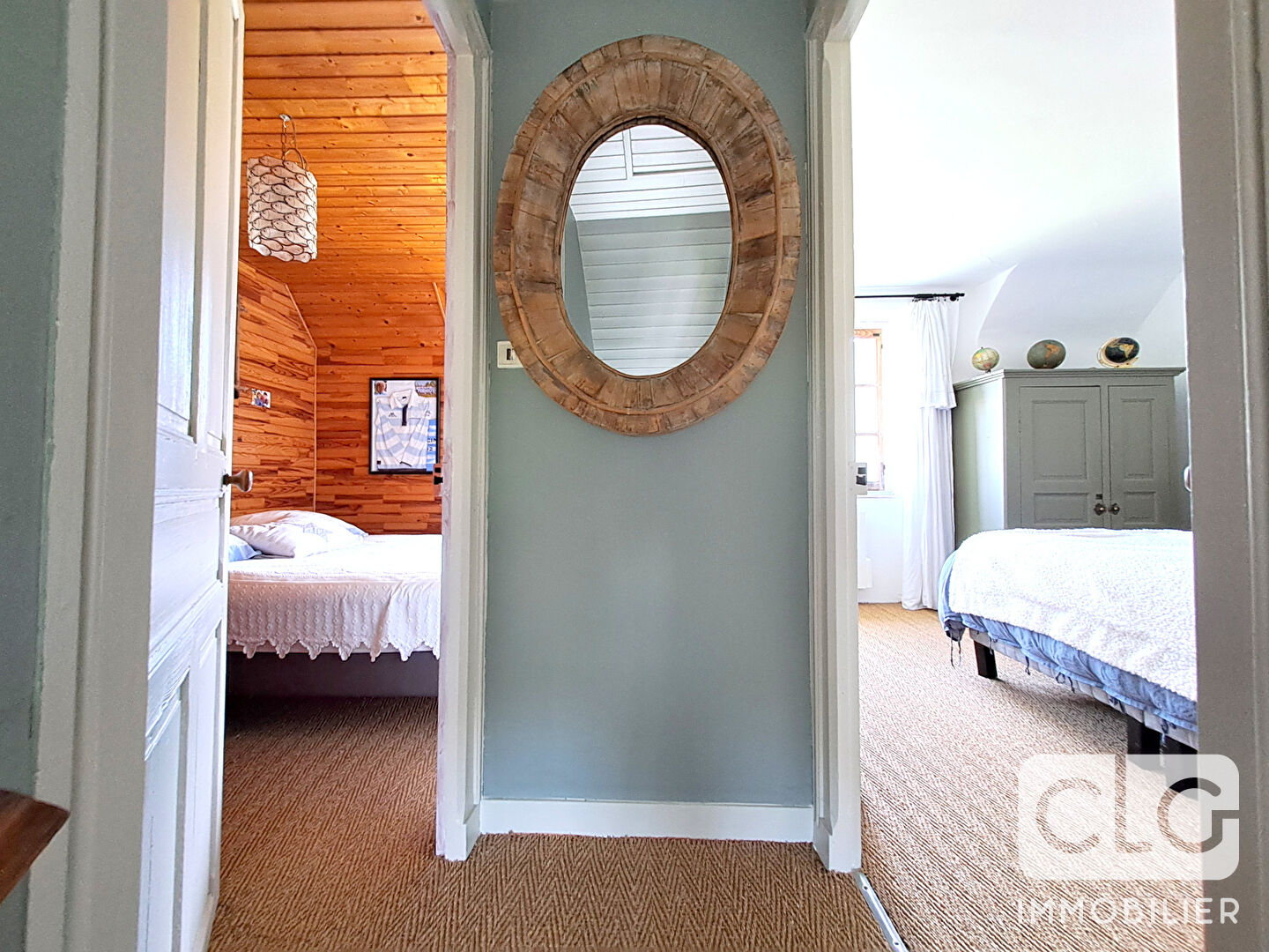 SAINTE-MARINE ,Élégance et douceur de vivre face à l'estuaire A quelques pas seulement de la mer, au coeur de l'un des emplacements les plus recherchés de la station, cette maison de caractère séduit immédiatement par son authenticité et son atmosphère chaleureuse, où le mariage du bois et de la pierre crée une harmonie rare. La pièce de vie, baignée de lumière, s'organise autour d'une cheminée double face séparant subtilement le séjour de la cuisine dînatoire, véritable espace de convivialité pensé pour recevoir. Une mezzanine ouverte apporte volume et cachet, tandis qu'une chambre et une salle d'eau permettent une vie de plain-pied. L'étage accueille deux belles chambres offrant confort et intimité. A l'extérieur, le jardin paysager d'environ 750 m², idéalement exposé plein sud, invite à la détente dans un environnement préservé. Garage et possibilités d'extension viennent compléter les prestations de ce bien évolutif. Depuis la propriété, une jolie vue dégagée s'ouvre sur l'estuaire et Bénodet, rappelant à chaque instant la proximité immédiate de l'océan. Un lieu de vie rare, confidentiel et recherché, pour profiter pleinement de l'art de vivre à Sainte-Marine. Yann Le Pemp (EI) Agent Commercial - Numéro RSAC : 431660174 - QUIMPER.
