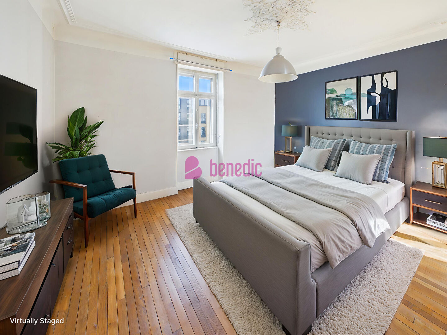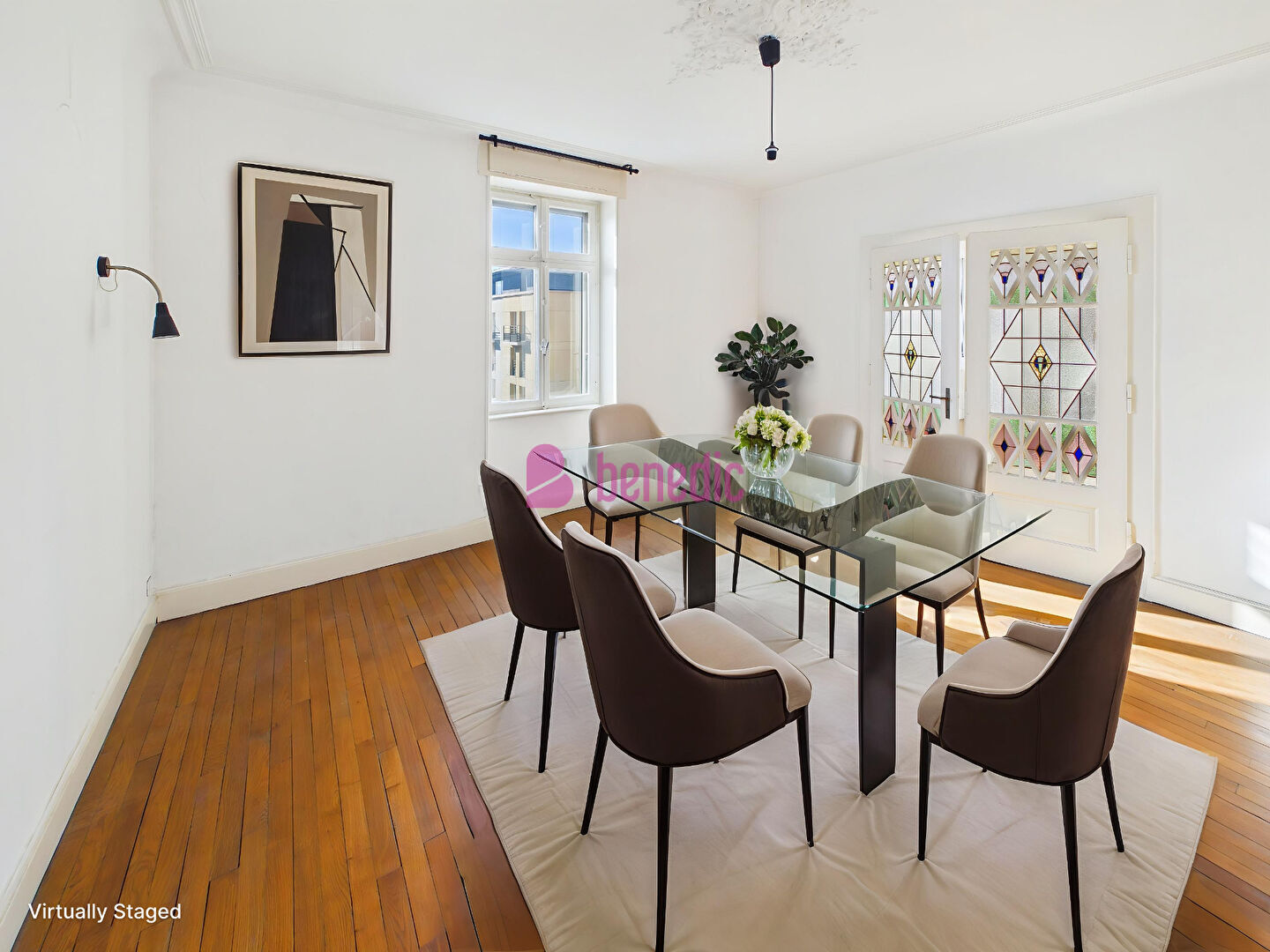 Le cabinet Benedic est fier de vous présenter ce bel appartement familial et bourgeois, situé au 3ème étage d'un immeuble de caractère, au coeur du très recherché quartier Nouvelle Ville, à seulement 2 minutes de la gare de Metz. Traversant et baigné de lumière, ce bien séduit par ses volumes généreux et le charme de l'ancien : belle hauteur sous plafond, moulures élégantes et parquet d'époque confèrent à l'ensemble une atmosphère authentique et raffinée. L'appartement s'ouvre sur une superbe pièce de vie lumineuse composée d'un double séjour, avec accès direct à un balcon, idéal pour profiter d'un extérieur en ville. Il dispose également de trois grandes chambres, dont une avec dressing, d'une cuisine équipée ainsi que d'une salle de bains avec toilettes. En annexes, une cave et un garage complètent ce bien, offrant un confort supplémentaire en centre-ville. Des travaux sont à prévoir, laissant entrevoir un fort potentiel de valorisation pour ce bien idéalement situé dans un environnement prisé. Je me réjouis de vous faire découvrir ce bien, Jean-Pierre (5.24 % honoraires TTC à la charge de l'acquéreur.) Copropriété de 6 lots - dont 5 lots habitation. Charges annuelles : 1998 euros. Jean-Pierre FISCHER (EI) Agent Commercial - Numéro RSAC : - .