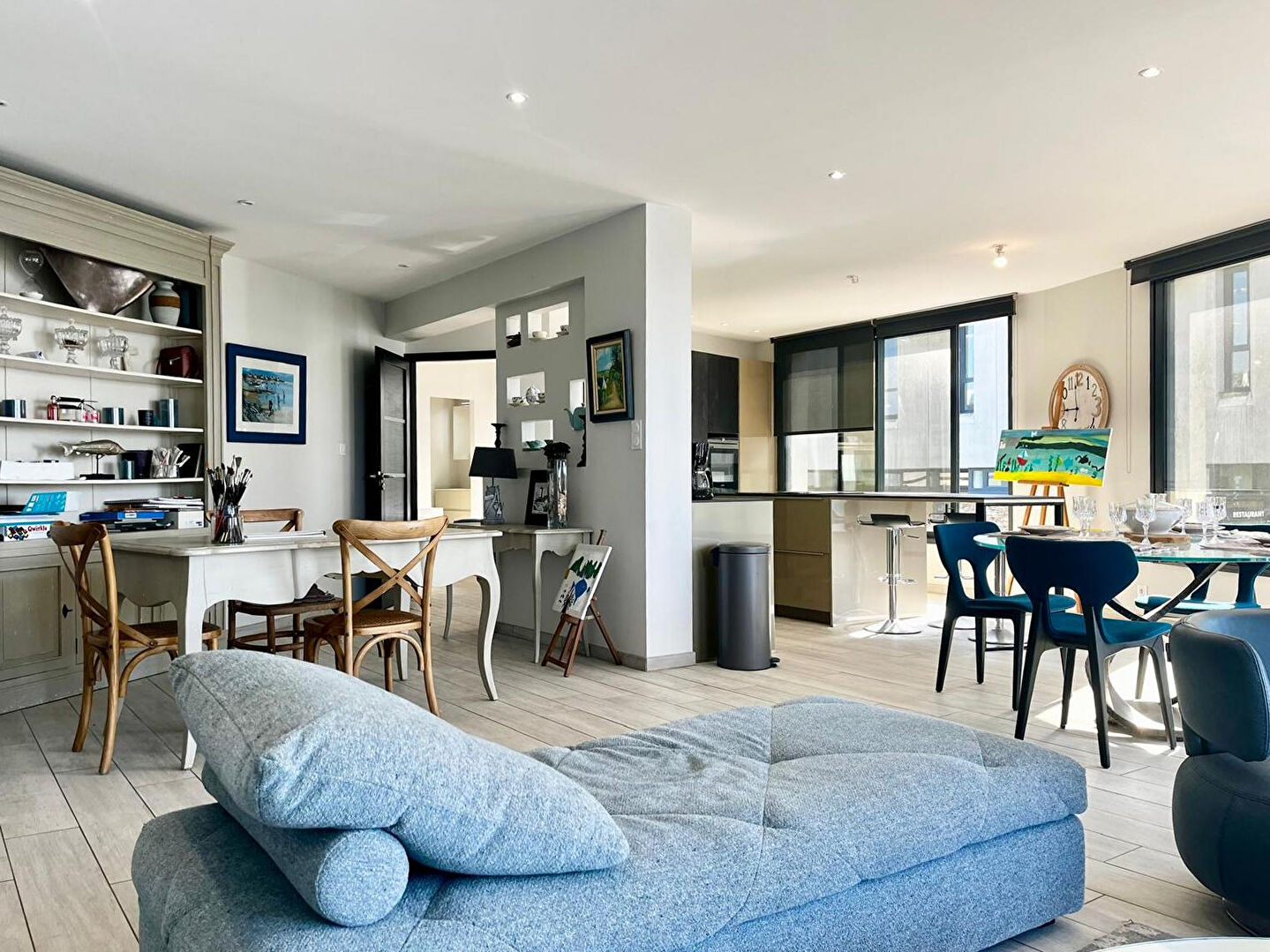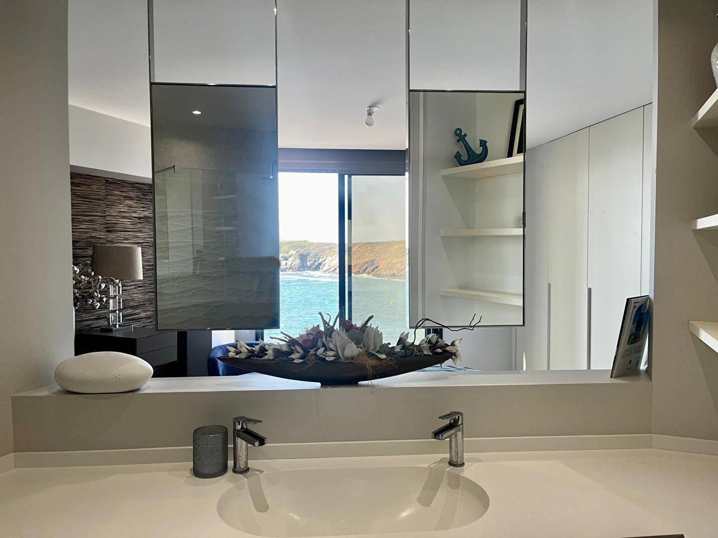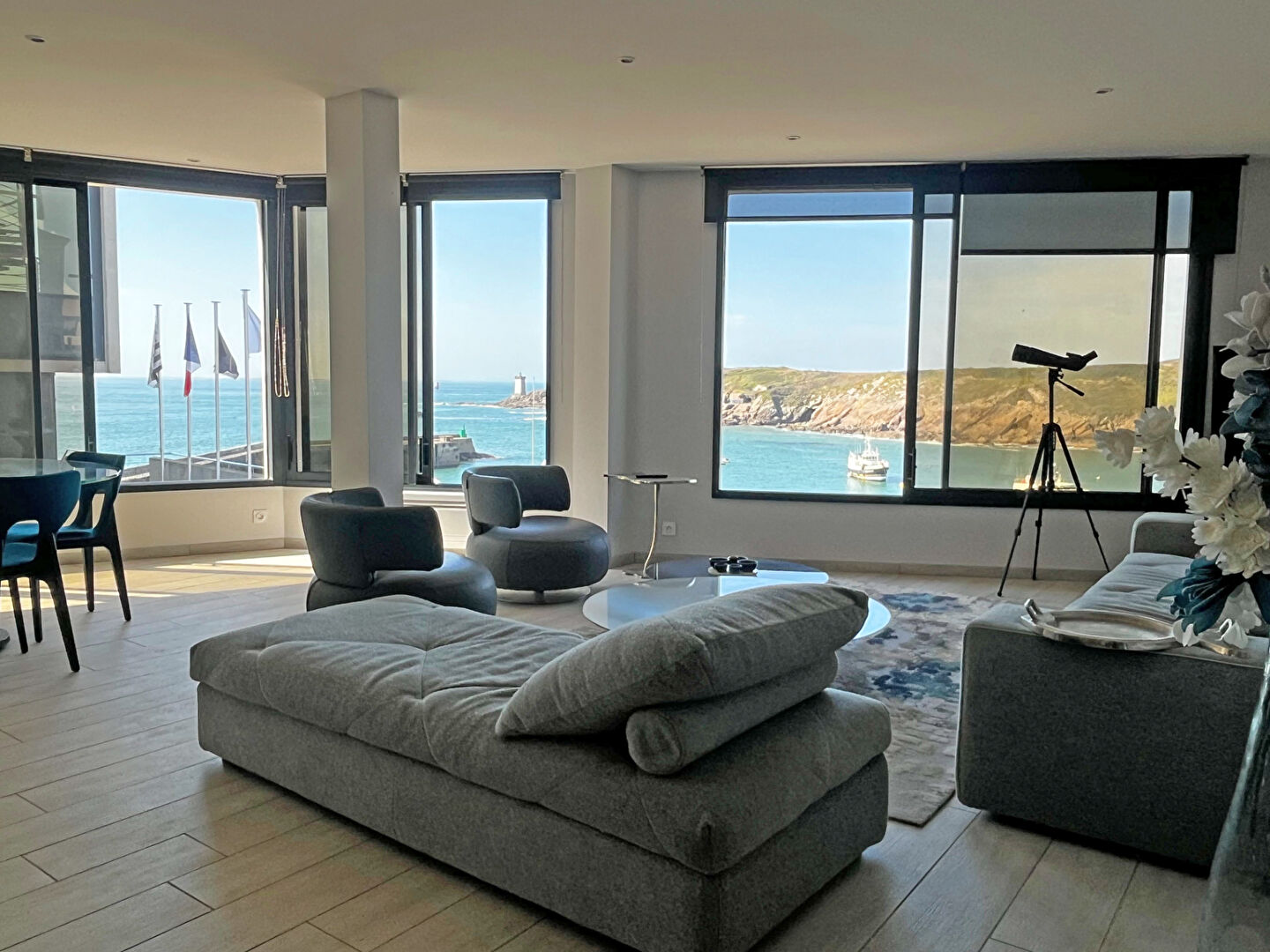 Surplombant majestueusement l'entrée du port du Conquet, dans une petite copropriété, Villad'Ici vous présente en exclusivité cet appartement de type loft, offrant un emplacement rare et une vue absolument spectaculaire sur l'océan, le port et au loin les iles... Dès l'entrée, le ton est donné : les volumes sont ouverts, la lumière circule généreusement et chaque pièce semble tournée vers l'extérieur. Après une grande entrée en rez-de-chaussée, quelques marches mènent à un vaste plateau de vie offrant une atmosphère contemporaine et chaleureuse. L'espace principal s'organise autour d'un grand salon baigné de lumière, largement ouvert sur le port, et d'une cuisine ouverte aménagée et équipée, pensée pour profiter pleinement du panorama au quotidien. L'appartement dispose de deux chambres avec pleine vue mer, dont une suite avec salle de bains intégrée, ainsi que d'une salle d'eau indépendante et de WC séparés. Les lignes sont sobres, les volumes confortables et la vue, omniprésente, donne à l'ensemble un caractère tout à fait singulier. Un grand garage pouvant accueillir deux voitures complète ce bien, un véritable atout dans ce secteur recherché. Le paysage devient le prolongement naturel de l'appartement, comme un jardin vivant ouvert sur l'horizon. Et pour prolonger cette sensation de liberté, la plage se rejoint en seulement 2 minutes. A seulement environ 30 minutes de l'aéroport Brest Bretagne, environ 30 minutes du centre de Brest, et à proximité immédiate des commerces du Conquet, cet appartement offre un cadre de vie rare, entre animation du port et horizon marin. Contacter Janick Merle au 06.20.81.66.76 Les informations sur les risques auxquels ce bien est exposé sont disponibles sur le site Géorisques : https://www.georisques.gouv.fr (4.19 % honoraires TTC à la charge de l'acquéreur.) Copropriété de 8 lots. Charges annuelles : 1624 euros. Janick Merle (EI) Agent Commercial - Numéro RSAC : 525403374 - .