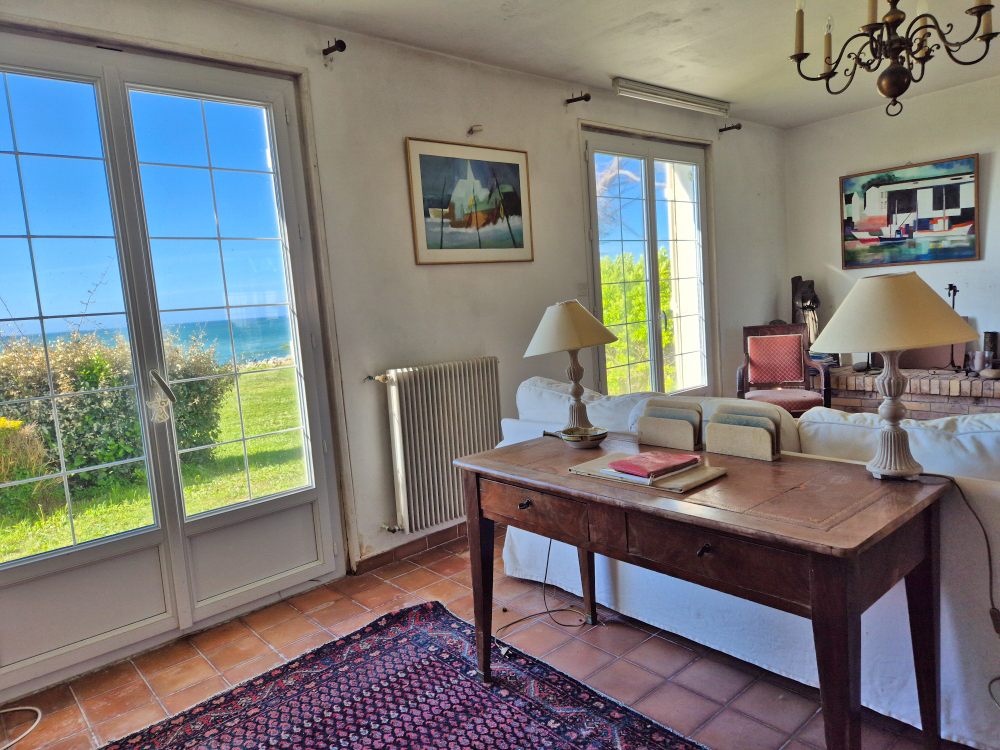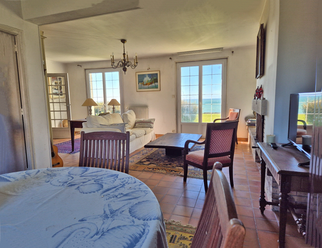 A Plouhinec, à proximité d'Audierne, VILLADICI vous propose en exclusivité cette maison des années 1970 bénéficiant d'un emplacement exceptionnel, avec une vue panoramique sur l'océan. Orientée plein sud, cette propriété, en quête d'un nouveau souffle, offre un cadre de vie rare, baigné de lumière et largement ouvert sur la mer. Elle présente un fort potentiel pour un projet de réhabilitation. La maison développe environ 230 m² habitables, dont près de 100 m² à l'étage restant à aménager, ainsi qu'un sous-sol total. Le rez-de-chaussée propose de beaux espaces de vie tournés vers l'extérieur : salon avec cheminée, salle à manger, cuisine, ainsi que quatre chambres, une salle de bains et des WC indépendants. Implantée sur un terrain d'environ 2 118 m², la propriété dispose d'un jardin dégagé sur la mer avec un accès direct à la grève. L'ensemble dégage une atmosphère authentique et constitue une base idéale pour un projet de rénovation ou de réaménagement. Une adresse rare pour les amoureux du bord de mer, en quête d'un bien à réinventer dans un site privilégié. La gare SNCF de Quimper se situe à 40 minutes, et les commerces sont accessibles en 5 minutes. Contacter Bertrand CLAQUIN au 06 80 87 72 34 Les informations sur les risques auxquels ce bien est exposé sont disponibles sur le site Géorisques : https://www.georisques.gouv.fr (4.18 % honoraires TTC à la charge de l'acquéreur.)