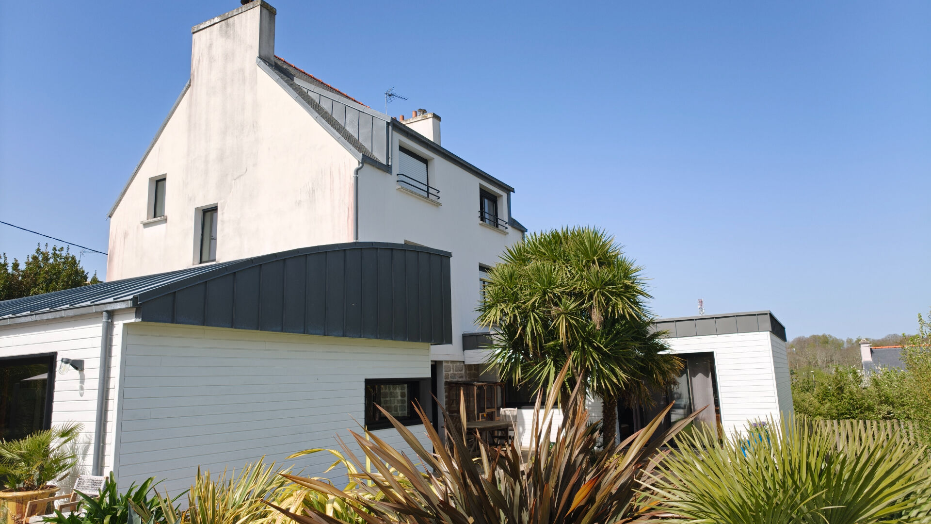 Située dans le secteur Ouest-Nord de Quimper, Villadici vous présente cette propriété offrant un cadre de vie privilégié, alliant proximité des commodités et confort au quotidien. Derrière son portail, se dévoile une maison des années 1950 avec extensions contemporaines, développant environ 225 m² habitables, au coeur d'un terrain clos et paysagé de 1 554 m². Les espaces de vie séduisent immédiatement par leurs volumes et leur luminosité : un salon chaleureux et accueillant, ainsi qu'une salle à manger agrémentée d'un poêle à bois, créent une atmosphère conviviale et raffinée. La cuisine neuve allie esthétisme, caractère et fonctionnalité. Le rez-de-chaussée accueille également une suite parentale avec double dressing, offrant un confort de vie rare, ainsi qu'un bureau et un espace buanderie/chaufferie. A l'étage, trois chambres et une salle d'eau composent un espace nuit harmonieux, prolongé par des combles aménagés accueillant un bureau et une cinquième chambre avec dressing et WC indépendant. Une maison attenante indépendante de 37 m² complète l'ensemble, idéale pour recevoir, exercer une activité ou générer un revenu locatif. A l'extérieur, le cadre invite à la détente avec son jardin paysagé, clos et préservé, sa piscine chauffée (10x4 m) avec couverture rétractable récente et son pool house de 20 m², véritable espace de vie estival. Un garage de 65 m² vient parfaire les prestations. Le bien bénéficie d'équipements confortables, avec une chaudière fioul bénéficiant d'un entretien régulier et complétée par les apports chaleureux du bois, et a déjà fait l'objet de travaux de rafraîchissement. Le centre ville de Quimper et accessible en 5 minutes et les jolies plages sont à 20-25 minutes. Une propriété rare, alliant charme, volumes et prestations, pensée pour une vie de famille. Pour tout complément d'information ou visite Typhaine DOYEN est à votre disposition au 06.29.86.39.19. --- Agent commercial indépendant N° 841 424005 RSAC Quimper --- Les informations sur les risques auxquels ce bien est exposé sont disponibles sur le site Géorisques : https://www.georisques.gouv.fr (3.85 % honoraires TTC à la charge de l'acquéreur.) TYPHAINE DOYEN (EI) Agent Commercial - Numéro RSAC : 84142400500012 - .