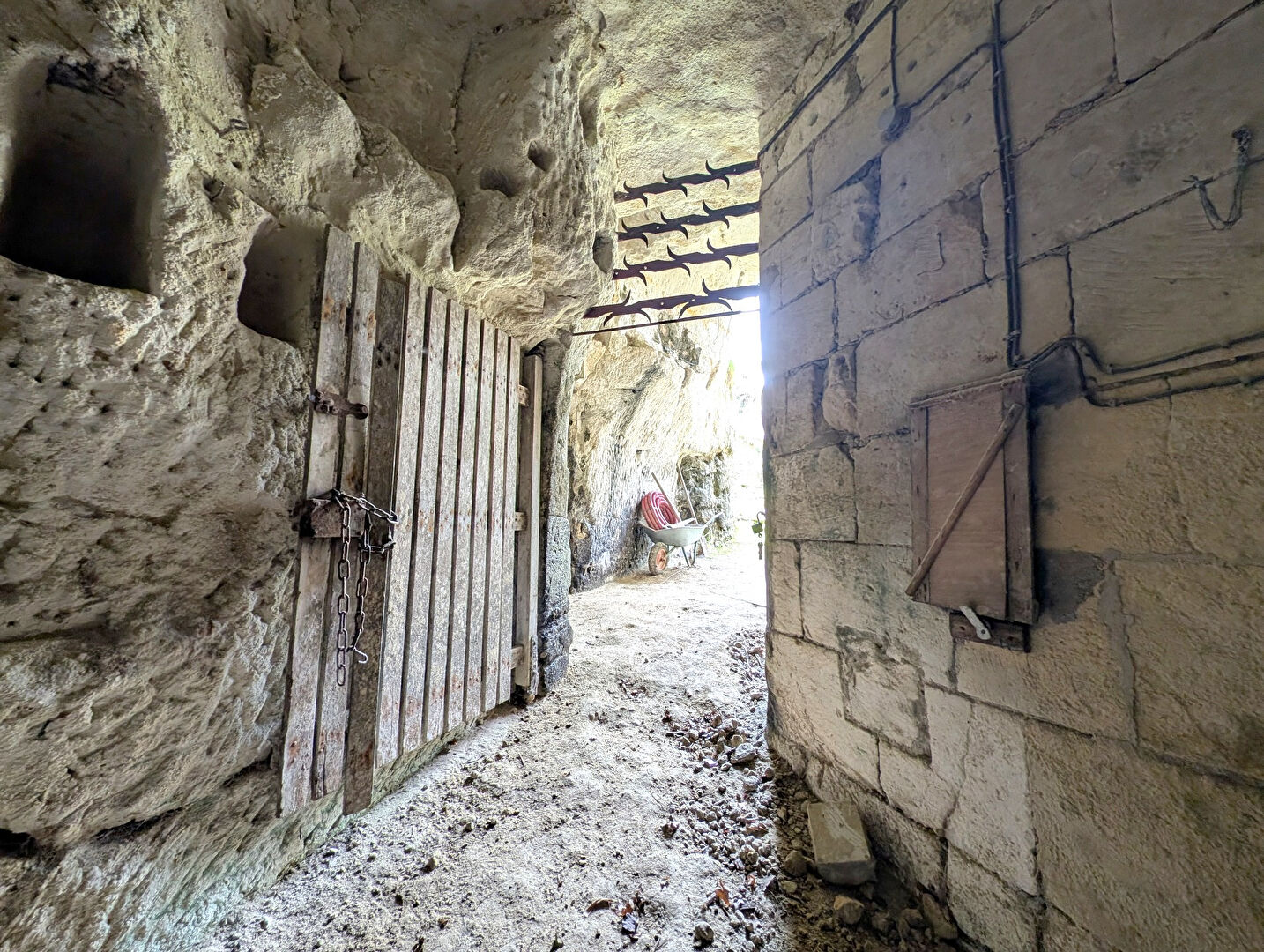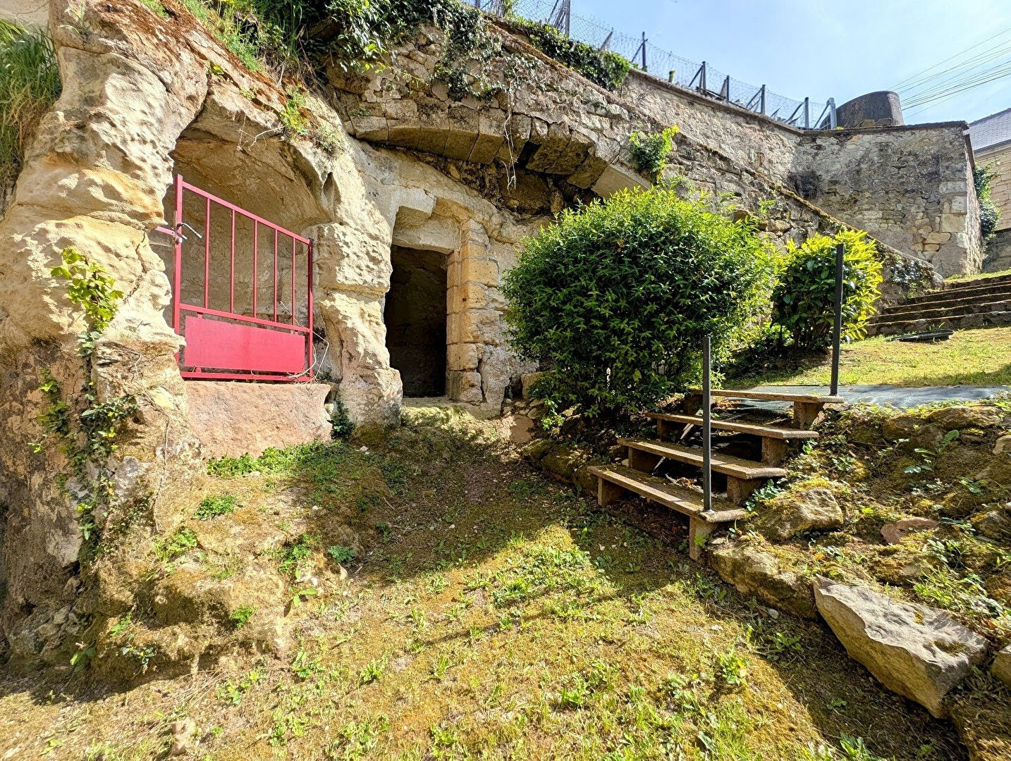 M2333. ENTRE DOUÉ ET SAUMUR : Coup de coeur pour cette habitation troglodytique à finir de restaurer offrant pièce de 35m² avec four à pain, autre pièce de 24m² avec cheminée, une partie sanitaires en travaux et de nombreuses cavités supplémentaires, sur terrain de 550m² sur deux niveaux.. Raccordée au tout-à-l'égout, à l'électricité et à l'eau de la ville. A visiter ! (6.36 % honoraires TTC à la charge de l'acquéreur.)