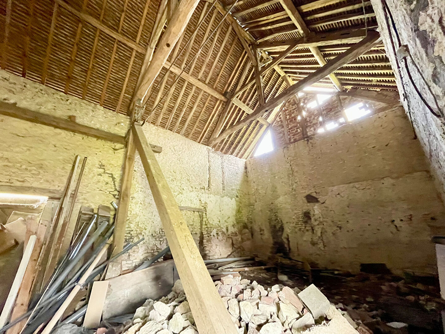 Située dans un charmant hameau de Montfey, cette propriété offre un beau potentiel avec de généreux volumes et de nombreuses dépendances, le tout sur un terrain de 1670 m². La maison principale se compose d'une cuisine , d'un séjour. Une vaste chambre avec cheminée et baie vitrée. Les espaces d'eau comprennent une salle de bains équipée d'une baignoire, d'une douche à l'italienne, d'une vasque et de WC. A l'étage, une grande pièce palière avec plancher offre de multiples possibilités d'aménagement : espace détente, bureau, salle de jeux ou chambres supplémentaires. Un grenier aménageable vient compléter l'ensemble et permet d'envisager encore davantage d'extensions selon vos besoins. Les extérieurs et dépendances constituent un véritable atout pour cette propriété : plusieurs écuries, une grange, un appentis et d'autres bâtiments complètent l'ensemble, idéals pour un projet agricole, artisanal ou de stockage. Cette maison pleine de potentiel séduira les amateurs de grands espaces et de projets à personnaliser, dans un environnement calme et authentique.