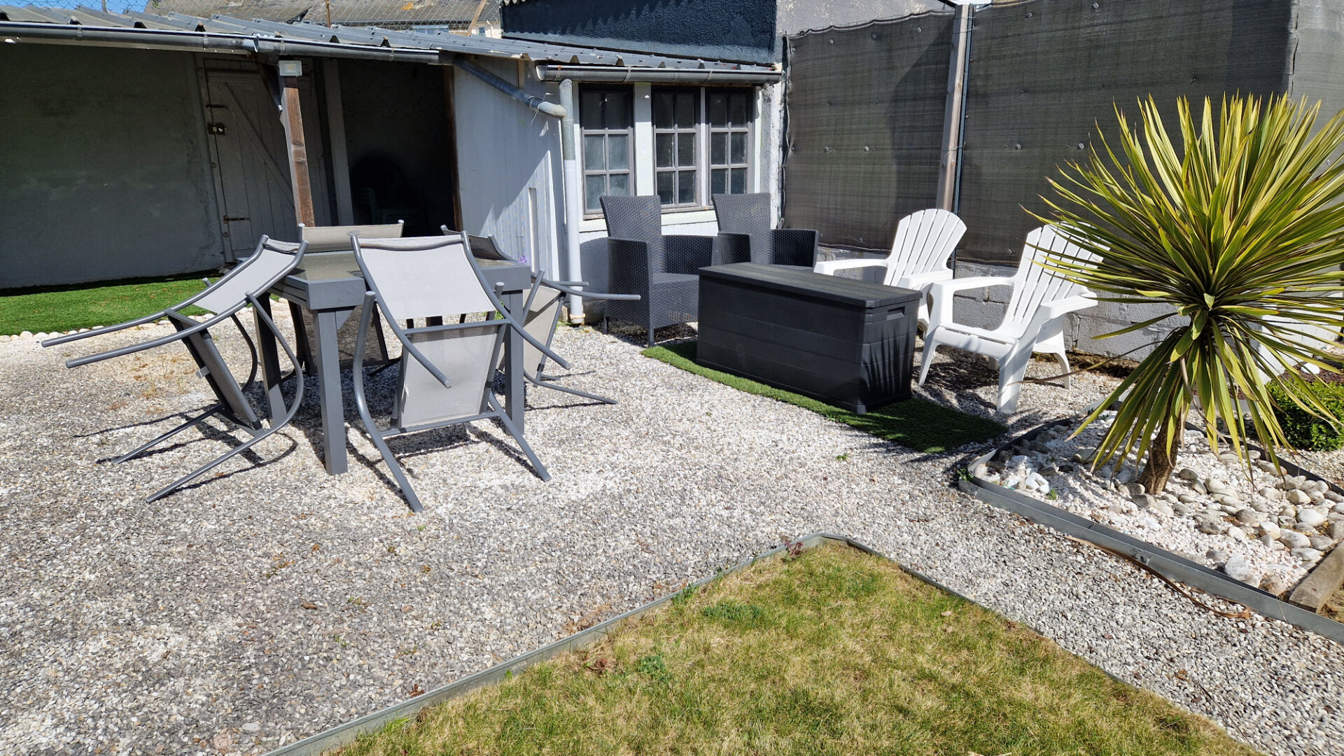 ST BRIEUC Charmante Maison T3 MEUBLEE de 63 m² Entrée dans salon séjour de plus de 30 m² avec cuisine ouverte aménagée équipée moderne accès jardin, salle d'eau avec wc. A l'étage, escalier bois, palier, 2 chambres sur parquet avec dressing, wc lave mains. Cave. Garage et jardin clos sur l'arrière arboré avec terrasse bois et Abris Chauffage électrique et Poêle à Granulés Libre le 15 avril 2026 Honoraires : 537 euros (Bail et état des lieux d'entrée) + 790 euros de dépôt de garantie