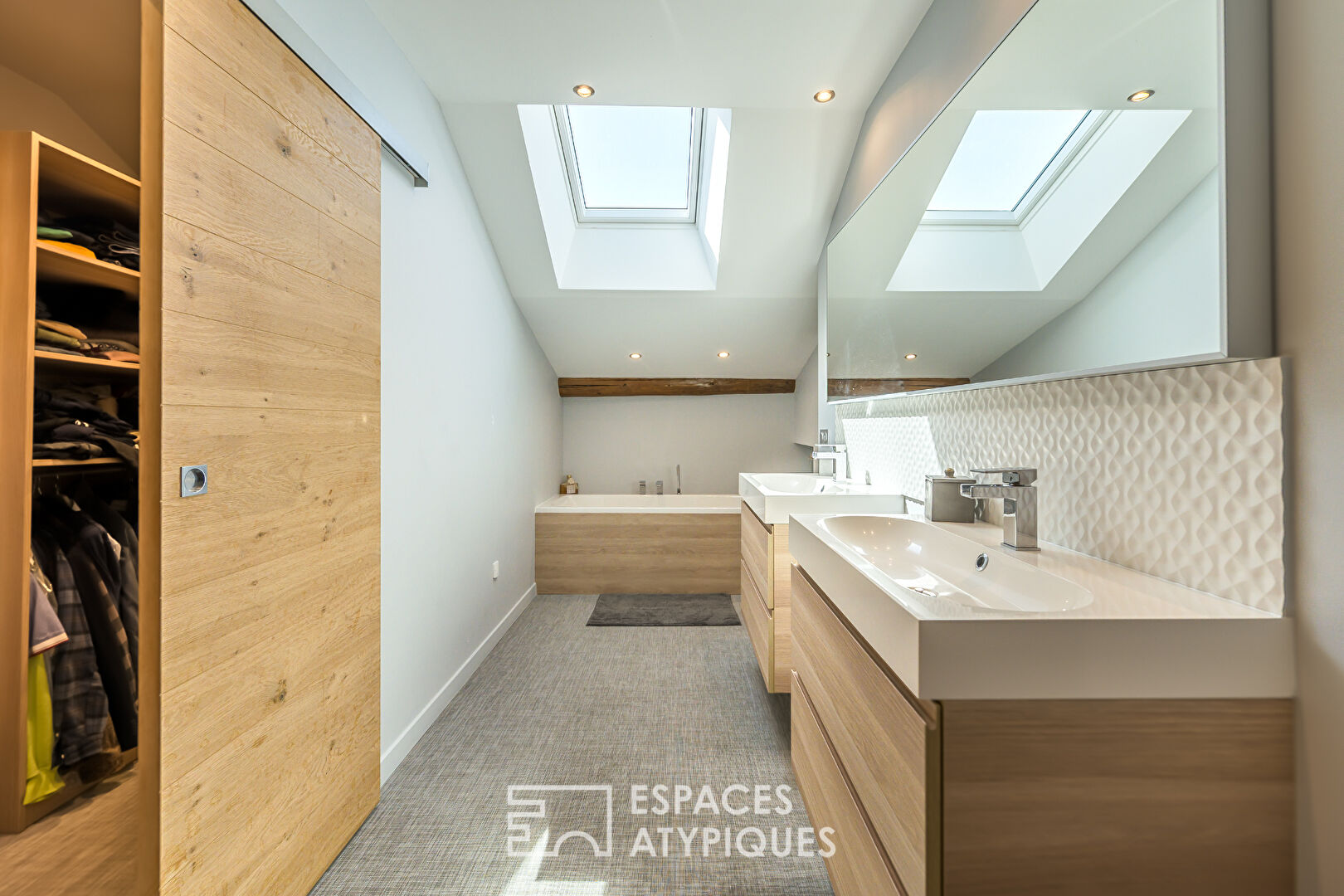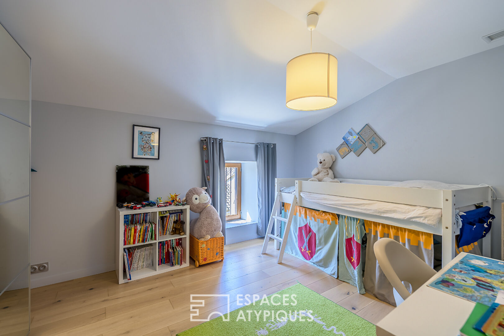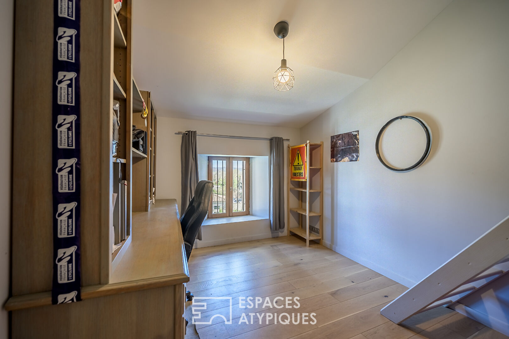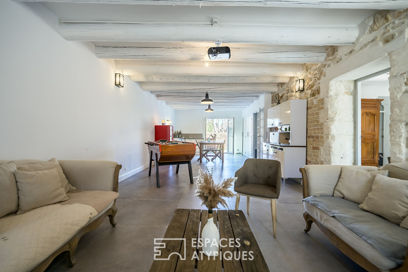 Au coeur du village de Rochefort-du-Gard, cette maison de maître de 263 m² s'affirme comme un bien rare. Entièrement rénovée, la demeure a su préserver son âme d'antan tout en intégrant des codes architecturaux contemporains et fluides. Le rez-de-jardin accueille un vaste hall, une chambre, une salle d'eau ainsi qu'un grand séjour de réception avec cuisine. Un escalier majestueux dessert les 2 autres niveaux. Le 1er étage, véritable coeur battant de la maison, offre un espace de vie baigné de lumière, chaleureux par son poêle à bois double face où salon et salle à manger communiquent avec une cuisine ouverte très contemporaine. Ce niveau se prolonge vers une exceptionnelle terrasse couverte de 78 m², véritable pièce de vie extérieure aux allures de loggia. Un bureau et une petite chambre avec salle d'eau le complète. Le dernier étage est dédié a l'espace nuit avec deux chambres, une salle d'eau et une vaste suite parentale dotée d'un dressing et d'une salle de bain. L'extérieur est une invitation à la sérénité. Rare en centre-village, il révèle un jardin clos de murs en pierres sèches abritant une piscine aux teintes naturelles et aux lignes épurées. Ce havre de paix, permet de profiter de la douceur du climat gardois à quelques pas des commerces et des écoles. Ce bien singulier, entièrement rénové avec soin, offre un cadre de vie privilégié à proximité d'Avignon. Les prestations sont complétées par un immense garage, atout précieux en centre-village. Ce bien au cachet incomparable, répond aux attentes des acquéreurs en quête d'un immobilier atypique et élégant. CLASSE ENERGIE : B / CLASSE CLIMAT : A Montant moyen estimé des dépenses annuelles d'énergie pour un usage standard établi à partir des prix de l'énergie de l'année 2021, 2022, 2023 entre 1760 euros et 2460 euros. Les informations sur les risques auxquels ce bien est exposé sont disponibles sur le site Géorisques : www.georisques.gouv.fr