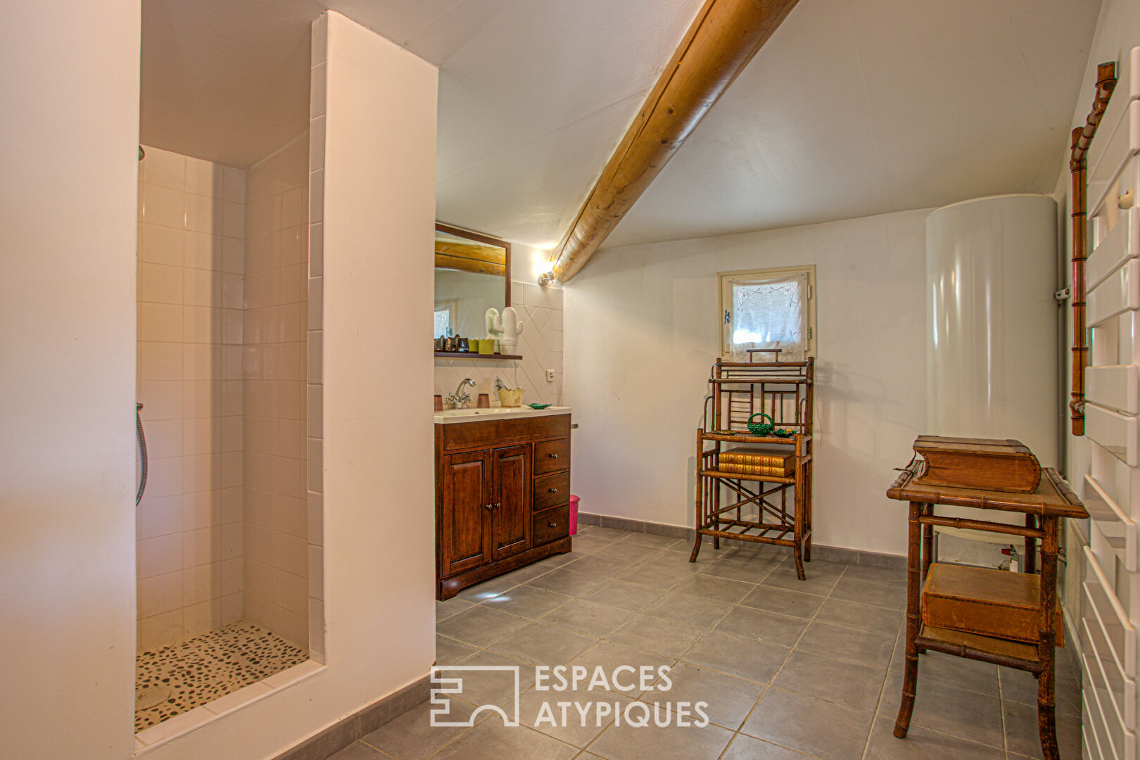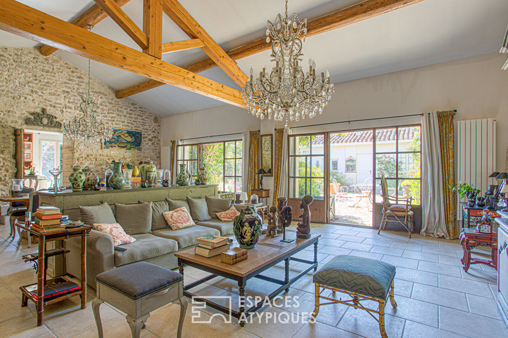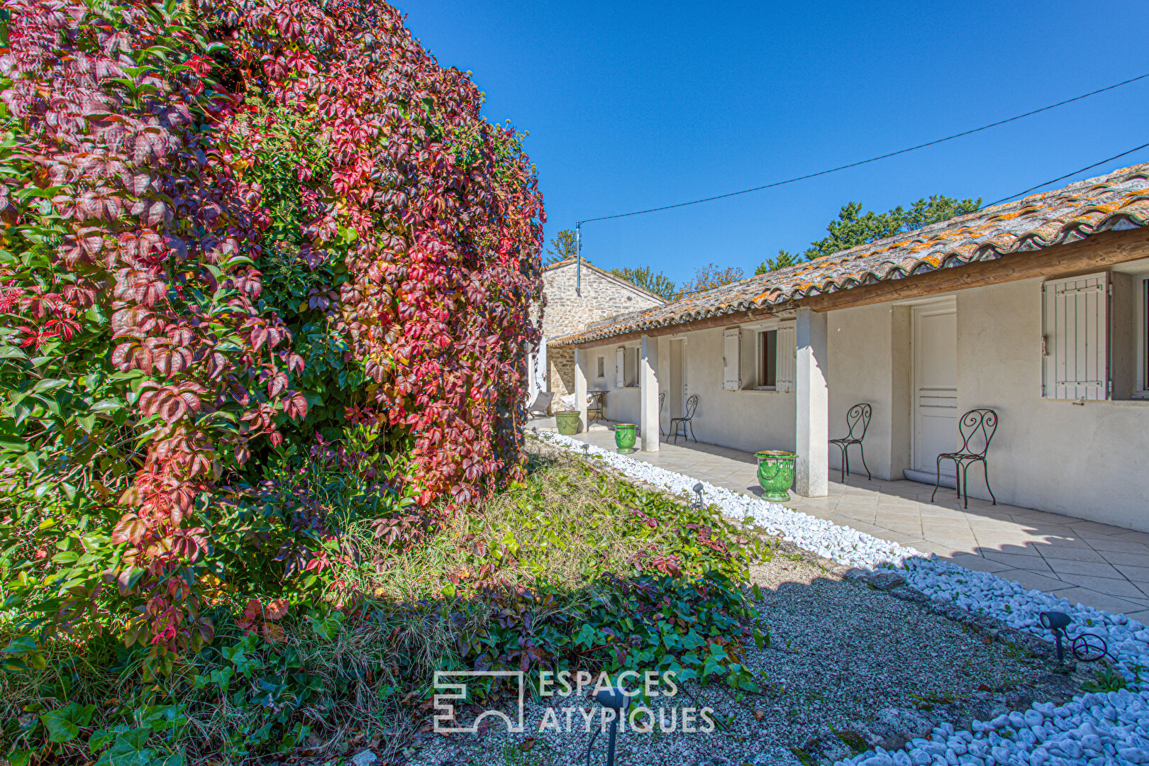 Nichée à moins de 15 minutes à pied du célèbre marché de Velleron, ce corps de ferme rénové avec soin allie authenticité et confort de vie. Dès l'entrée, la pièce de vie lumineuse séduit par ses beaux volumes, ses murs en pierre, son carrelage au sol et sa belle hauteur sous plafond. Le toit cathédrale, agrémenté de poutres apparentes et de lustres en cristal, confère à l'ensemble une atmosphère chaleureuse et aérée. Dans son prolongement, la cuisine équipée avec espace salle à manger s'ouvre sur le jardin, offrant une agréable continuité entre intérieur et extérieur. Une grande chambre avec sa salle d'eau attenante complète cette première partie de la maison. Le bien dispose également de deux chambres indépendantes, chacune avec sa propre salle d'eau et un accès direct au jardin. Cette configuration permet d'accueillir famille et amis en toute autonomie, ou d'envisager un projet de chambres d'hôtes. Le jardin, joliment aménagé, propose différents espaces pour profiter des beaux jours, entre soleil et zones ombragées. Une terrasse prolonge naturellement la pièce de vie, idéale pour les repas en extérieur. Une dépendance complète l'ensemble avec une grande pièce de rangement, une douche et un espace de stockage. Le stationnement est facilité par la possibilité d'accueillir plusieurs véhicules à l'intérieur de la propriété, accessible par un portail. Résidence principale, maison de vacances ou projet d'accueil, cette propriété offre de nombreuses possibilités grâce à ses espaces distincts et son organisation fonctionnelle. CLASSE ÉNERGIE : D / CLASSE CLIMAT : B Montant moyen estimé des dépenses annuelles d'énergie pour un usage standard (prix indexés au 01/01/2021) : entre 2 456 euros et 3 324 euros. Les informations sur les risques auxquels ce bien est exposé sont disponibles sur le site Géorisques : www.georisques.gouv.fr Mélanie DUC (EI) Agent Commercial - Numéro RSAC : 999 403 306 - Avignon.