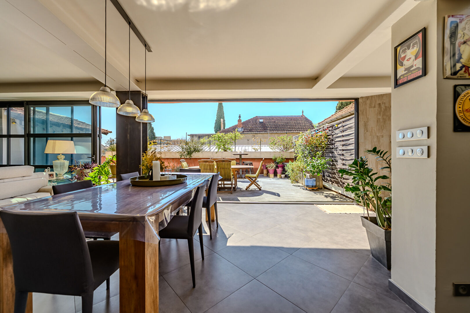 Situé dans un quartier paisible, à quelques pas seulement du centre historique, ce triplex entièrement repensé séduit avant tout par sa luminosité remarquable et la générosité de ses volumes. Nichée dans une ruelle calme, cette propriété au caractère affirmé marie avec élégance le bois, le fer et le verre, créant une atmosphère à la fois chaleureuse, contemporaine et résolument ouverte. Le vaste espace de vie, véritable coeur de l'appartement, est très lumineux grâce à de superbes baies vitrées à galandage, toute hauteur. Celles-ci prolongent harmonieusement l'intérieur vers une magnifique terrasse de 54 m², offrant un véritable espace de vie supplémentaire, idéal pour profiter pleinement d'un mode de vie dedans-dehors. Les étages accueillent quatre chambres confortables ainsi qu'une salle d'eau et une salle de bains, pensées pour allier intimité et fonctionnalité. Ce bien rare conjugue ainsi calme, lumière et beaux volumes, tout en bénéficiant d'une proximité immédiate avec les commerces. L'accès à l'autoroute se fait en 15 minutes et la gare TGV d'Avignon est à seulement 25 minutes. Bien soumis au régime de la copropriété : 9 lots dont 2 lots d'habitation. CLASSE ENERGIE : C / CLASSE CLIMAT : A Montant moyen estimé des dépenses annuelles d'énergie pour un usage standard, établi à partir des prix de l'énergie de l'année 2021 , 2022 et 2023 : entre 2 051 euros et 2 775 euros par an. Les informations sur les risques auxquels ce bien est exposé sont disponibles sur le site Géorisques : www.georisques.gouv.fr Copropriété de 9 lots - dont 2 lots habitation. Mélanie DUC (EI) Agent Commercial - Numéro RSAC : 999 403 306 - Avignon.