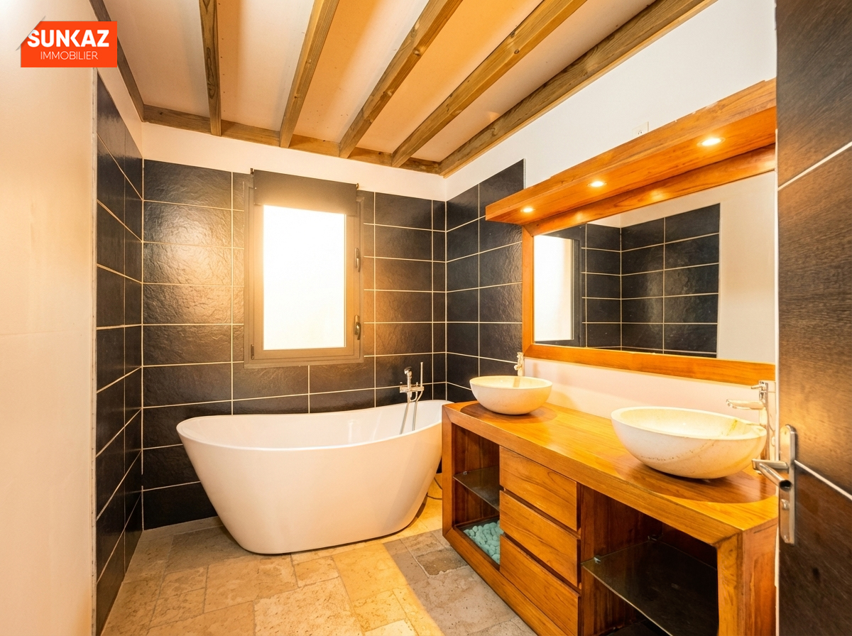 Varangue XXL et piscine à Saint-Pierre (Condé) Le vrai plus ici : la varangue XXL et la piscine à deux pas du salon. A l'intérieur, l'espace de vie se démarque par sa belle hauteur sous plafond et sa charpente en bois apparente, prolongée par la mezzanine. A Saint-Pierre, secteur Condé, cette maison de 2009 propose 121,55 m² habitables sur un terrain de 540 m². La pièce principale réunit séjour et cuisine (env. 45 m²), avec une circulation simple et des volumes agréables. Côté nuit : 3 chambres, une salle de bains, une salle d'eau et un WC séparé. Les combles / mezzanine (env. 24 m²) offrent un espace en plus, parfait pour un bureau, un coin lecture ou une salle de jeux. Dehors, on profite vraiment : varangue en bois (env. 48 m²), piscine, et cuisine extérieure (env. 11 m²) .Tout-à-l'égout. Honoraires uniquement à la charge du vendeur. Les informations sur les risques auxquels ce bien est exposé sont disponibles sur le site géorisques : www.georisques.gouv.fr . Pour visiter, contactez l'agence au +262 262 490 490.