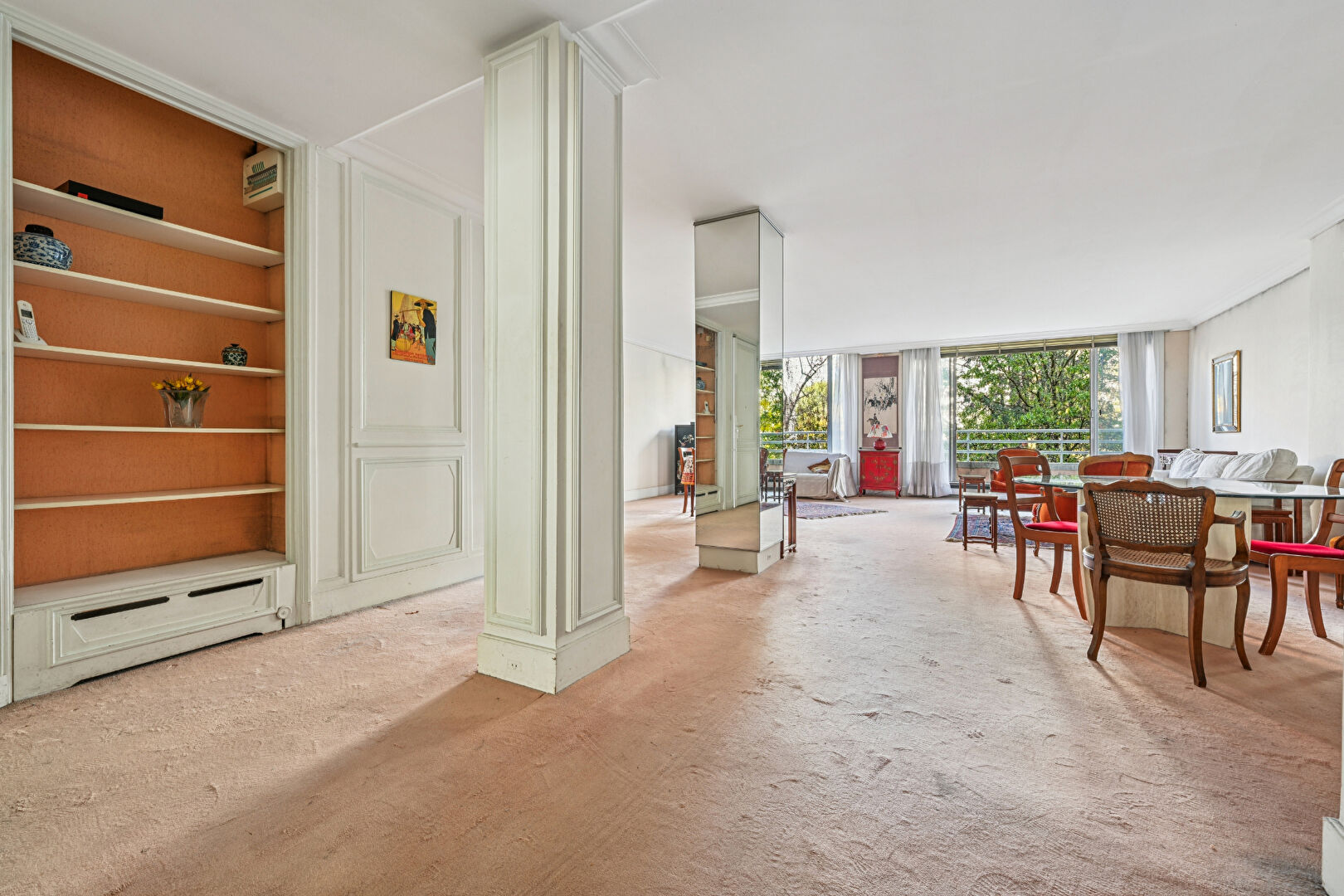 Dans un immeuble de grand standing conçu par l'architecte Kevork Arsenian, cet appartement traversant de 135 m², situé au 2 ème étage, séduit par ses volumes généreux, sa luminosité et son calme absolu. L'espace de réception, d'environ 70 m², s'ouvre de plain-pied sur un balcon filant exposé ouest, offrant une vue dégagée sur un vaste jardin intérieur sans vis-à-vis. L'appartement bénéficie d'un plan particulièrement fonctionnel avec deux espaces nuits bien distincts : Le premier espace nuit, attenant au séjour, comprend une chambre, une salle d'eau avec toilettes et de nombreux rangements. Le second espace nuit, situé à l'opposé du séjour, dispose d'une grande chambre avec placards, dressings, salle d'eau et toilettes séparées, bénéficiant également d'un accès direct au balcon. Une troisième chambre, attenante à la cuisine séparée, profite d'un accès indépendant depuis le palier, idéale pour un adolescent, un invité ou un personnel de maison. La résidence, particulièrement bien sécurisée grâce à un gardiennage jour et nuit, offre de nombreux services contribuant à un véritable art de vivre. A rafraîchir, ce bien rare allie potentiel, élégance et qualité d'adresse, au coeur du secteur Muette, recherché pour son cadre résidentiel, sa sécurité et la proximité immédiate des commerces, écoles réputées et transports. (3.97 % honoraires TTC à la charge de l'acquéreur.) Copropriété de 741 lots - dont 209 lots habitation. (sous procédures de difficultés). Charges annuelles : 8040 euros.