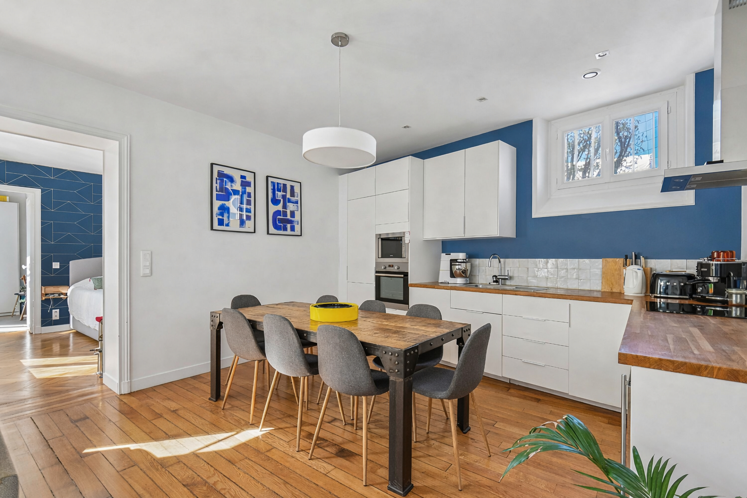 A proximité immédiate de la place Victor Hugo, ce bel appartement de 69,28 m² (loi Carrez), entièrement rénové par architecte, se situe au deuxième étage par ascenseur, d'une petite copropriété, à l'allure de maison. Baigné de lumière grâce à son exposition sud-ouest, il bénéficie d'une vue dégagée, sur une cour arborée. L'entrée ouvre sur un grand double séjour d'environ 35 m² (loi Carrez) avec cuisine ouverte, offrant un espace de vie convivial et harmonieux. L'espace nuit se compose de deux chambres, ainsi que d'une salle de bains avec une baignoire et une douche. Des toilettes indépendantes complètent l'ensemble. Au calme absolu, cet appartement a su préserver tout le cachet de l'ancien avec son parquet et sa cheminée, tout en offrant le confort d'une rénovation contemporaine. Une cave vient parfaire ce bien rare. Sectorisation Janson de Sailly. Copropriété de 33 lots - dont 12 lots habitation. Charges annuelles : 2880 euros.