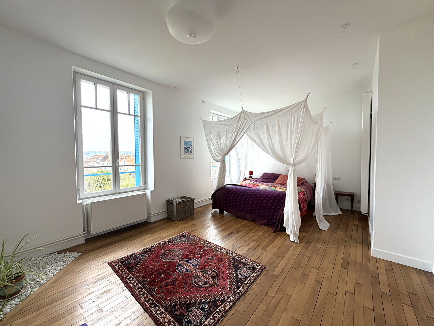 Stéphane Plaza Immobilier Montluçon vous propose cette charmante maison située dans un quartier calme, à proximité de tous les commerces et services, sur un terrain clos et arboré de 714 m² avec dépendances. Elle se compose d'une entrée avec son magnifique escalier desservant un 1er étage avec sa cuisine aménagée et équipée ouverte sur sa salle à manger de 25m², un salon très lumineux de 23m², deux chambres, une salle d'eau à rénover et un WC. Au deuxième étage vous apprécierez sa chambre de 22m², son dressing attenant, une salle d'eau avec WC, un espace buanderie pouvant évoluer et trois chambres supplémentaires de 10, 12 et 13m². Présence de très nombreux espaces de rangements dans toute la maison. En rez de jardin, vous apprécierez 2 garages de 16 et 18m², une chaufferie et 3 caves très saines. Toujours entretenue par ses propriétaires, vous profiterez d'une rénovation d'EXCEPTION. Plafonds refaits en plâtre à l'ancienne, peintures et vernis écologiques, isolation totale en laine de bois et chanvre, électricité de la partie habitable en bioélectrique (résorption des champs électromagnétiques), plomberie refaite à neuf ainsi que la chaudière Frisquet fonctionnant au gaz de ville. Sa grande superficie, son emplacement, ses nombreuses possibilités, son terrain, etc ... plusieurs critères qui ne peuvent que vous encourager à venir visiter. Delphine METENIER (EI) Agent Commercial - Numéro RSAC : 843410606 - MONTLUCON.