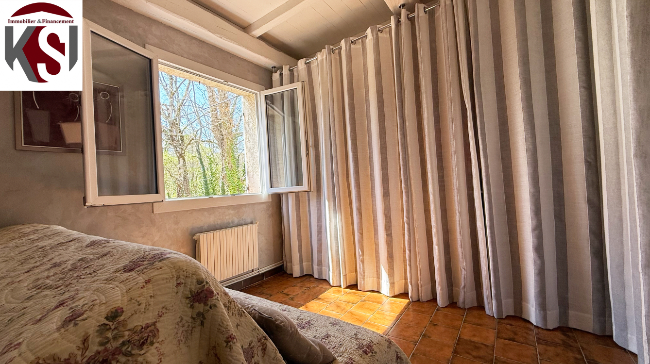 Saint Maximin. Dans un écrin de verdure, au calme absolu, sur 5700 m2 de terrain avec piscine et dépendances. Villa, composée de 4 logements, totalisant 215 m2 habitables. Un spacieux et lumineux T3 à l'étage (86 m2) avec deux terrasses dont une de 60 m2, deux spacieux T2 et un studio au rez-de-chaussée . Parfait état général. Garage indépendant de 32 m2. Le bien dispose d'un forage. Toiture neuve, double vitrage. Volets bois. Mandat 620-145 Les informations sur les risques auxquels ce bien est exposé sont disponibles sur le site georisques.gouv.fr.