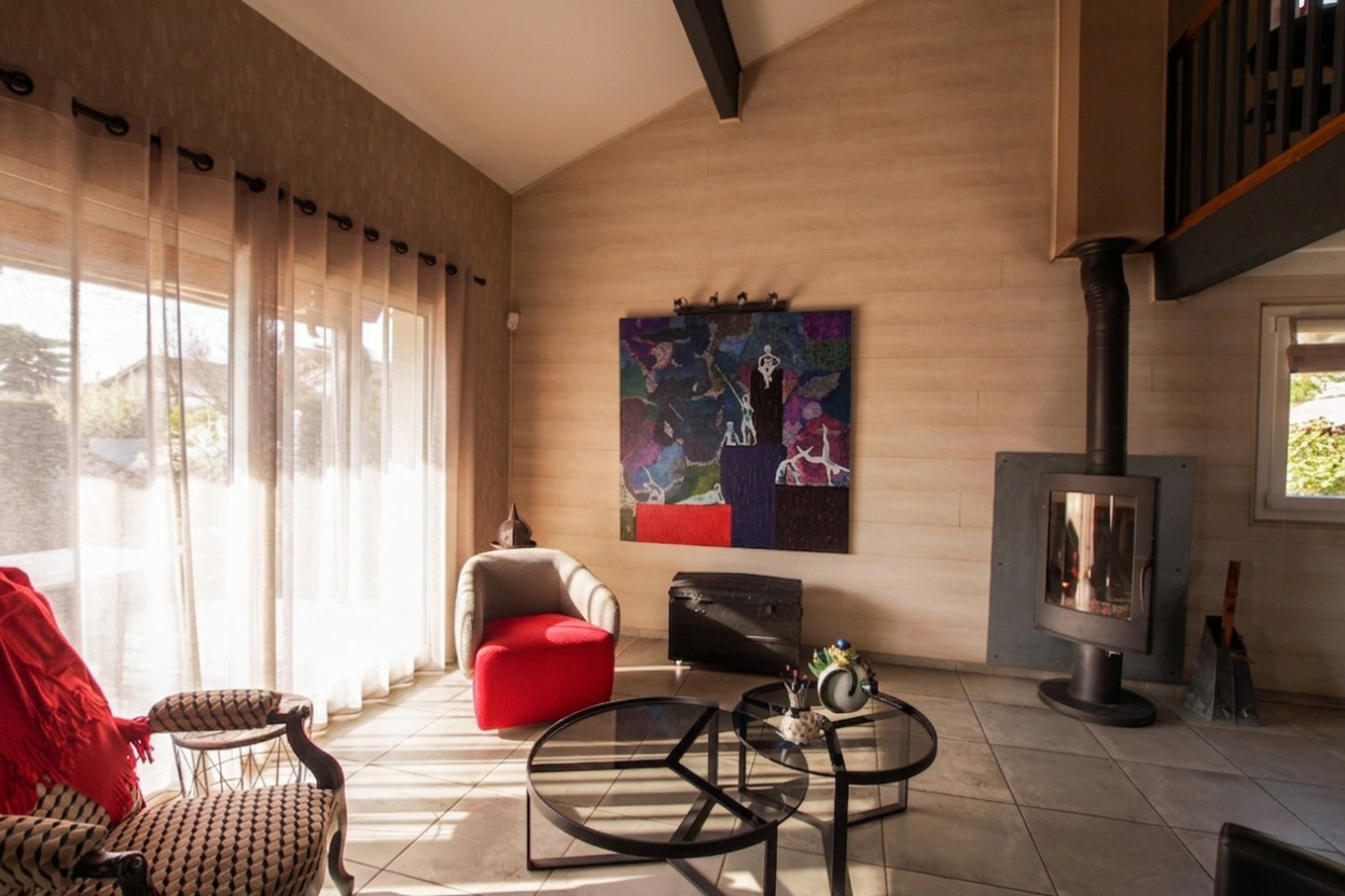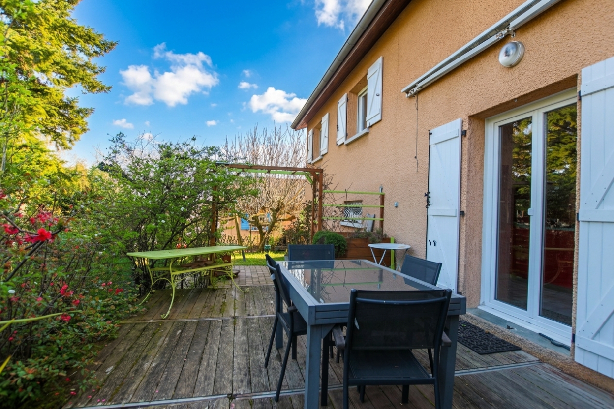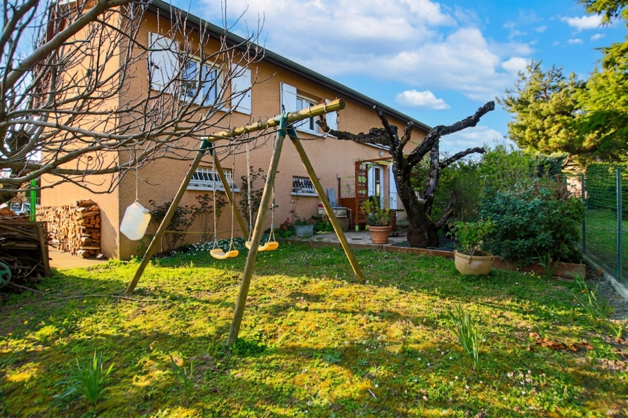 Volumes, Lumière et Sérénité au coeur d'un quartier résidentiel. Découvrez cette charmante maison en demi-niveaux, construite en 1990, nichée sur une parcelle arborée et clôturée de 580 m². Alliant une structure saine à un agencement original, cette propriété est idéale pour une famille en quête d'espace et de convivialité. * Une Pièce de Vie Spectaculaire Dès l'entrée, vous serez séduit par le volume du séjour : _ Salon traversant baigné de lumière naturelle. _ Plafond cathédrale offrant une sensation d'espace incomparable. _ Mezzanine de 25 m², surplombant la pièce, idéale pour un bureau, un salon TV ou une bibliothèque. _ Cuisine ouverte aménagée (signée Fab Concept), moderne et fonctionnelle. *L'Espace Nuit (Demi-niveau supérieur) Un dégagement mène à l'espace privé, parfaitement optimisé pour la vie de famille : _ 4 chambres lumineuses, disposant chacune d'un emplacement prévu pour l'installation de placards muraux. _ Une salle de bains, une salle d'eau supplémentaire et des WC indépendants pour plus de confort au quotidien. * Espaces Techniques et Praticité (Demi-niveau inférieur) Le sous-sol offre des prestations fonctionnelles indispensables : _ Un garage avec porte motorisée et un atelier pour les bricoleurs. _ Une buanderie spacieuse, un second WC indépendant et un dégagement. * Extérieurs et Prestations _ Double exposition : Profitez du soleil à chaque instant avec deux terrasses carrelées (Est et Ouest). _ Confort thermique : Chauffage par plafond rayonnant, radiateurs à l'étage et un poêle à bois chaleureux dans le séjour. Huisseries PVC double-vitrage. _ État : Maison parfaitement entretenue, habitable immédiatement. Prévoir un simple rafraîchissement pour la mettre à votre goût et révéler tout son potentiel. Contactez-nous pour découvrir ce bien rare lors d'une visite privée ! Laura MAYOUD (EI) Agent Commercial - Numéro RSAC : 831 999 966 - LYON.