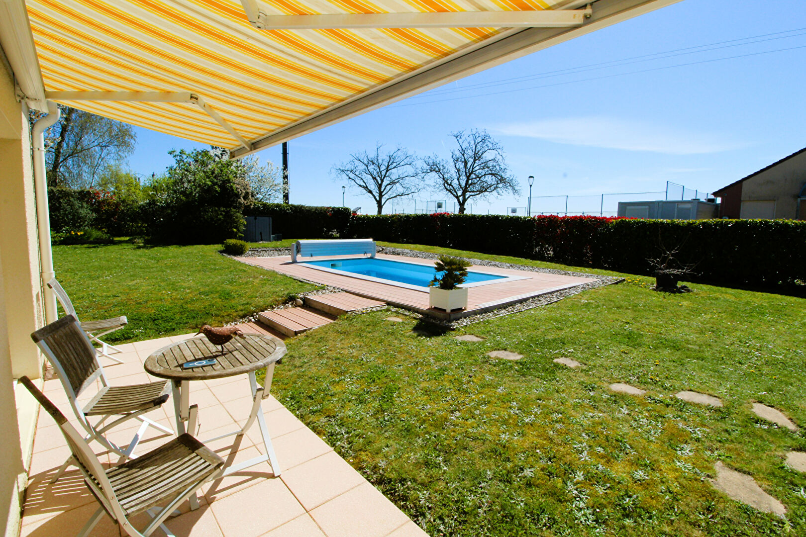 A découvrir sans tarder : élégante maison familiale de +170 m² édifiée sur un terrain arboré et paysagé de 1 200 m², offrant calme et intimité. Dès l'entrée, laissez-vous séduire par un espace de vie traversant agrémenté d'un poêle à bois, une cuisine ouverte conviviale et un accès à une spacieuse terrasse idéale pour vos instants de détente. Vous découvrirez également un salon lumineux offrant une vue sur la piscine et le jardin. L'espace nuit se compose de 4 chambres, dont un espace parental avec salle de bains privative, ainsi qu'un bureau (poss. chambre) idéal pour le télétravail. A l'extérieur, terrasses et piscine invitent à la détente et aux réceptions, complétées par un garage, un carport ainsi qu'un cabanon. Prestations de qualité : menuiseries et radiateurs récents, portail alu... DPE/C Maison soigneusement entretenue alliant confort, volumes et cadre de vie privilégié. Sandrino TOFFOLI (EI) Agent Commercial - Numéro RSAC : - .