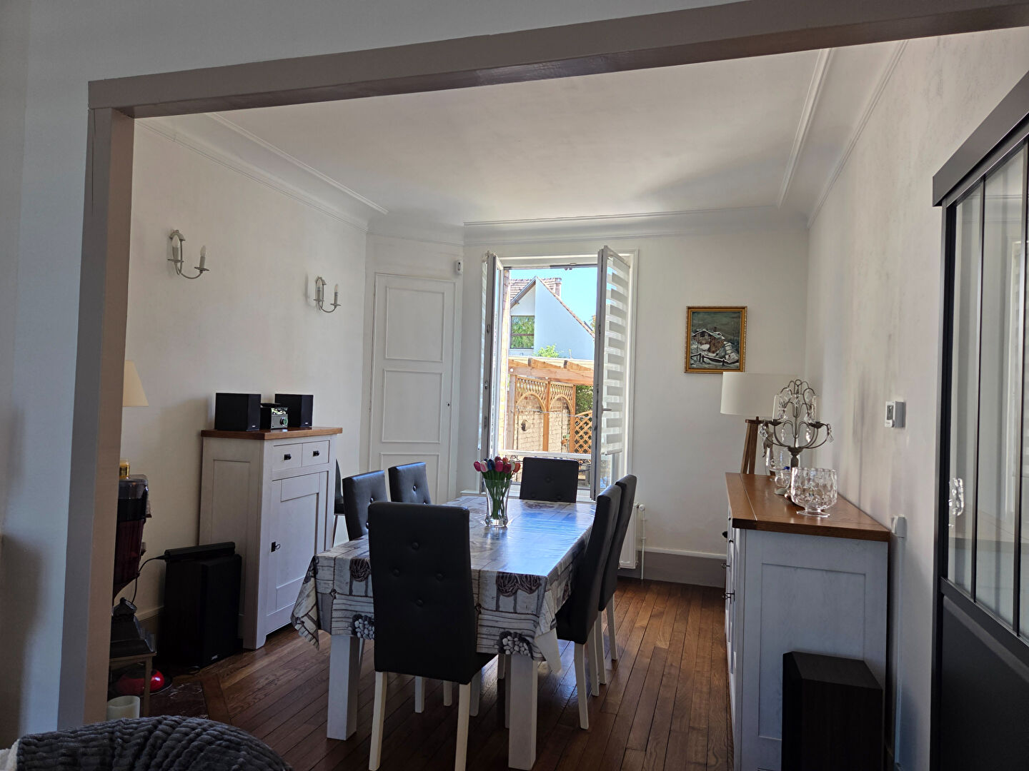Proximité gare, coup de coeur pour cette jolie maison de ville en briques située en retrait de rue . Elle offre entrée par petite véranda, bureau, salon et salle à manger, cuisine équipée avec accès direct sur l'extérieur, wc avec lave-mains, Au 1er étage palier desservant 3 chambres, une salle de bains et douches, un wc, cave totale divisée en atelier, lingerie chaufferie rangements. Extérieurement une terrasse donnant sur le jardin clos dépendance pergola DPE D (3.91 % honoraires TTC à la charge de l'acquéreur.)