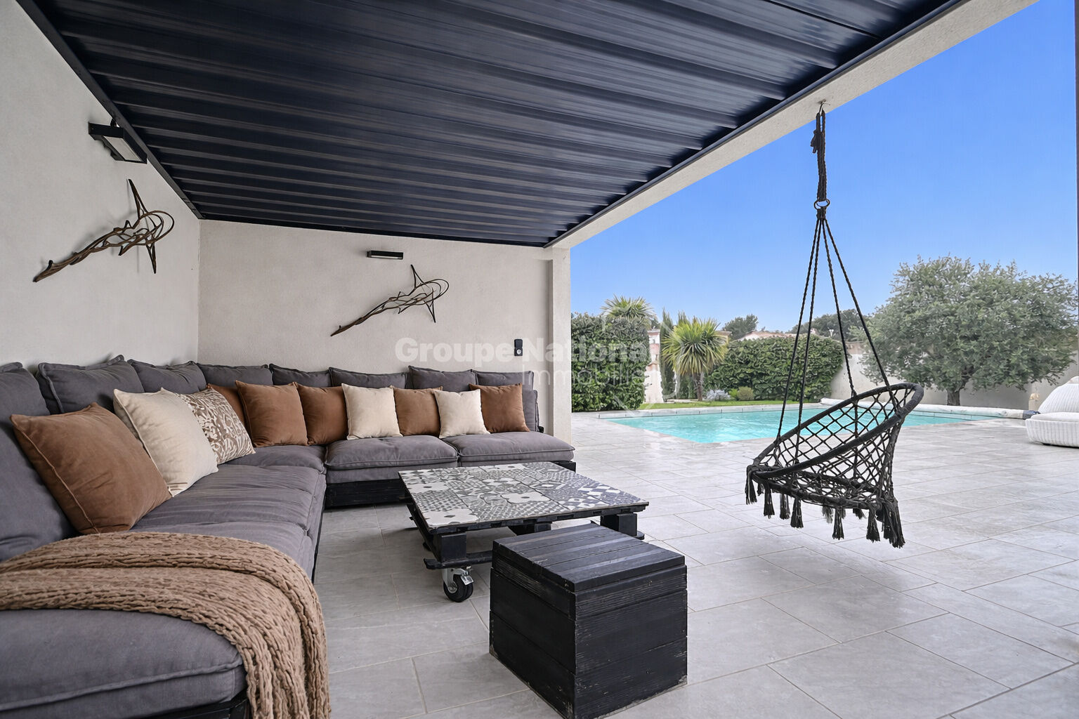 Châteauneuf-du-Pape Maison contemporaine d'architecte avec piscine Au coeur de l'un des villages les plus prisés de la Vallée du Rhône, cette élégante maison contemporaine construite en 2018 séduit par la qualité de ses prestations, sa luminosité et son atmosphère résolument tournée vers l'art de vivre provençal. Non mitoyenne, elle développe environ 115 m² parfaitement agencés. La pièce de vie de plus de 50 m², baignée de lumière, accueille un salon convivial et une cuisine ouverte sur mesure. De larges baies vitrées, dont une baie à galandage de 3,50 m, prolongent naturellement les espaces vers l'extérieur. Le rez-de-chaussée comprend également une buanderie, une arrière-cuisine et un WC indépendant. A l'étage, la maison propose 3 chambres lumineuses, dont une suite parentale, une salle de bain contemporaine ainsi qu'un bureau ouvert de 12 m², idéal pour le télétravail ou un espace détente. Édifiée sur une parcelle de 530 m², la propriété offre de superbes extérieurs avec une terrasse de plus de 75 m², une piscine au sel de 7 x 3,5 m, un pool house, un jardin paysagé, un terrain de boules et un stationnement privatif pour deux véhicules. Restanques, murs en pierre de Gordes, arrosage automatique, éclairage extérieur, forage et portail électrique complètent l'ensemble. Climatisation, domotique, volets roulants électriques, aucun travaux à prévoir : un bien rare, clé en main, à proximité du village, des commerces et de toutes les commodités, tout en bénéficiant d'un environnement calme et privilégié et sous garantie décennale. Une adresse recherchée, une maison aboutie, un bien rare sur le secteur. Contactez nous pour une visite exclusive de ce bien sans plus tarder au 06.28.83.57.23 « Les informations sur les risques auxquels ce bien est exposé sont disponibles sur le site Géorisques : www.georisques.gouv.fr »