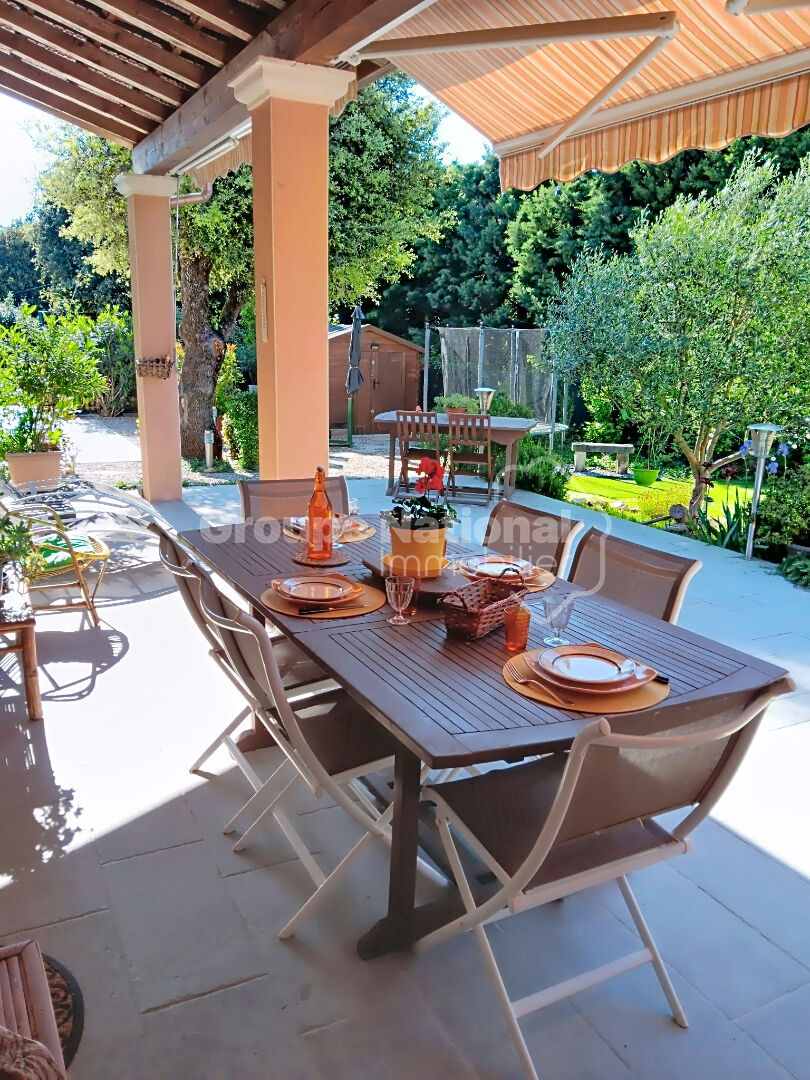 A moins de 10 minutes de Saint Paul Trois Château et de Grignan, Artémis immobilier vous propose à la vente cette belle maison de plain-pied de 121,43 m², nichée sur un terrain arboré et paysagé , idéal pour profiter pleinement des beaux jours. Propice à la détente, véritable cocon de verdure et facile d'entretien le jardin de 428m² est agrémenté d'une superbe piscine Desjoyaux de 7x3 (construite en 2020) sous garantie décennale, avec abris coulissant télescopique sur roues et margelles en travertin ainsi que d'un Spa pour 6 personnes Exposée plein sud, cette maison lumineuse et parfaitement agencée vous séduira dès l'entrée avec son hall équipé de grands placards. Vous découvrirez ensuite une spacieuse pièce de vie conviviale comprenant salon, séjour de 31 m² et cuisine équipée semi-ouverte de 14 m², le tout communiquant avec une grande terrasse de 53 m² et le jardin, un cadre parfait pour vos moments en famille ou entre amis. Côté nuit vous bénéficierez de: - 4 grandes chambres (de 12 à 14m²) avec dressing pour l'une et placards intégrés pour les autres. -Une grande salle de bains avec double vasque, baignoire, douche, radiateur sèche serviettes. -un WC indépendant Pour compléter l'ensemble, un garage de 20m² avec mezzanine, communiquant avec la cuisine , une buanderie et deux abris jardin vous permettrons de bénéficier d'espace supplémentaires de rangement ou pour accueillir un atelier. La maison construite en 2007 est en excellent état. Aucun travaux ne sont à prévoir, vous n'aurez qu'à poser vos valises. Elle offre des prestations de qualité pour un confort optimal : Cuisine équipée moderne Double vitrage PVC Poêle à pellets programmable dans le salon avec répartiteur pour chauffer les autres pièces. Chauffage au sol Climatisation réversible Chauffe-eau thermodynamique (2020) Adoucisseur d'eau avec contrat d'entretien annuel Alarme Fibre Buanderie Garage communicant Portail automatisé, interphone 16 panneaux photovoltaïques (quasi auto consommation) deux chalets de jardin de 5m² chacun Tout en étant à proximité des commodités la maison bénéficie d'un environnement calme. Une visite s'impose ! Contactez-nous rapidement pour découvrir ce bien, coup de coeur assuré. Copropriété de 2 lots - dont 2 lots habitation. Frédérique Burchiellaro (EI) Agent Commercial - Numéro RSAC : - .