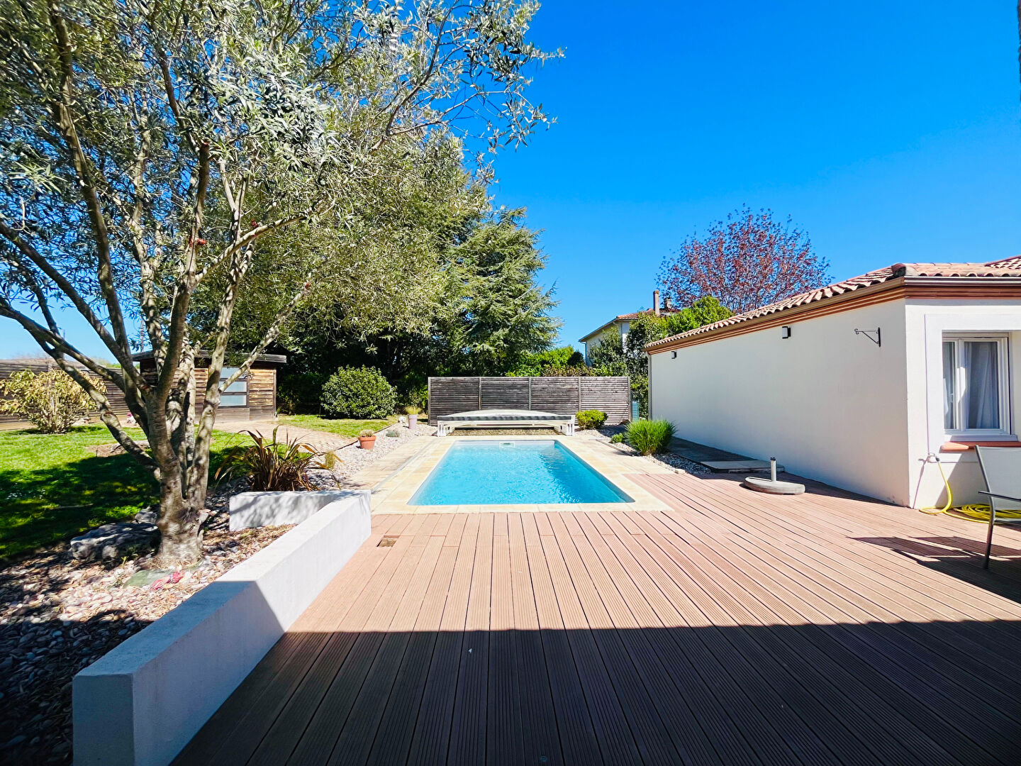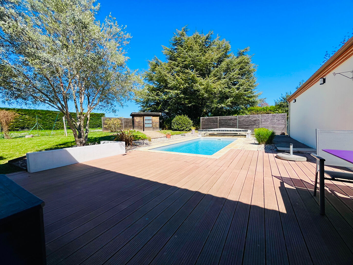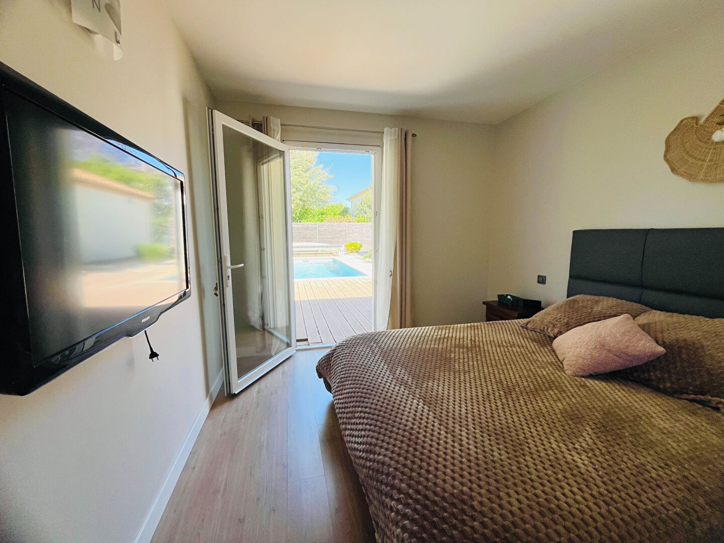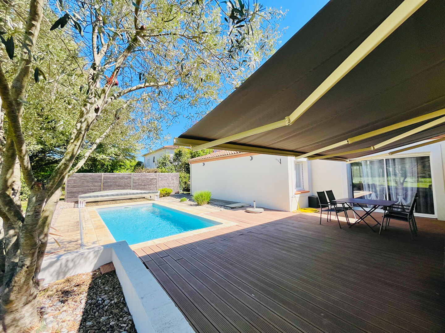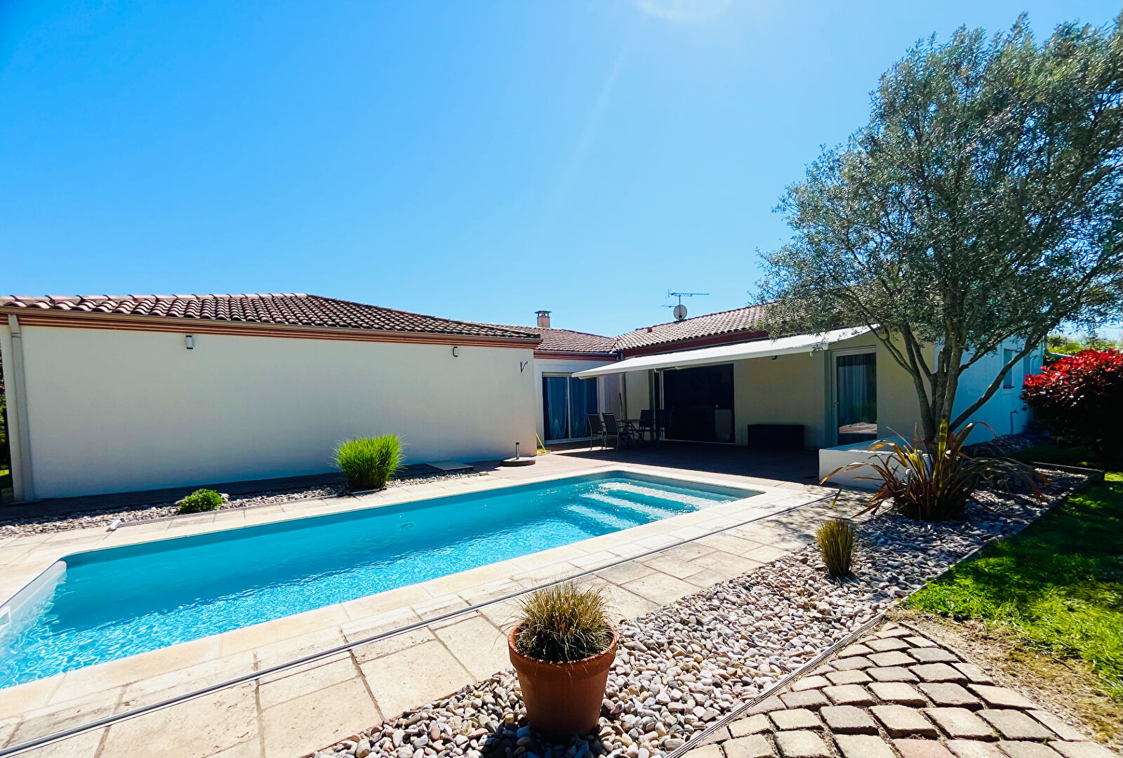 Pour tout renseignement ou visite contacter Aurélie Tanneur au 06.63.76.03.01 ( Agent commercial - RSAC Agen 951 225 226 ) Sur la commune très recherchée de Pujols, dans un quartier calme, venez visiter sans tarder cette magnifique villa de plain pied d'environ 190m², offrant un maximum de confort, avec piscine et 2 garages, le tout sur un terrain entièrement clôturé de 1 145m². Dès l'entrée, vous serez séduit par une grande pièce de vie lumineuse et climatisée d'environ 54m², donnant accès à une cuisine entièrement aménagée et équipée, qui, grâce à ses baies vitrées à galandage, vous permettra un accès direct à la terrasse coté piscine. Egalement dans la partie jour, un wc avec lave mains un bureau ainsi qu'un grand cellier / buanderie. Deux espaces nuits encadrent la pièce de vie, le premier est desservi par un dégagement climatisé avec rangements, qui comprend 3 chambres, (toutes équipées de placards), et d'une salle d'eau. Le second est composé d'une suite parentale climatisée, avec une chambre donnant sur la piscine, un dressing, une salle d'eau ainsi qu'un wc indépendant. A l'extérieur, vous pourrez profiter d'une terrasse, avec store banne électrique ainsi que d'une piscine au chlore 7x3m avec dôme, sans aucun vis à vis. Attenants à la maison, 2 garages, dont un avec double entrée et portes motorisées. La maison est également équipées de 8 panneaux solaires (2023) en autoconsommation. Le tout sur un terrain entièrement clôturé de 1 145m². Les +++ : Fenêtres double vitrage PVC, baies vitrées en alu, volets roulants électriques, chauffage au sol ( PAC air/eau), climatisation réversible, chauffe eau thermodynamique, panneaux solaires, fibre, tout à l'égout conforme, construction 2002 avec extension en 2009, piscine au chlore 7x3m avec dôme, portail électrique, interphone, digicode, parfait état d'entretien, quartier résidentiel calme. Les informations sur les risques auxquels ce bien est exposé sont disponibles sur le site Géorisques : www.georisques.gouv.fr
