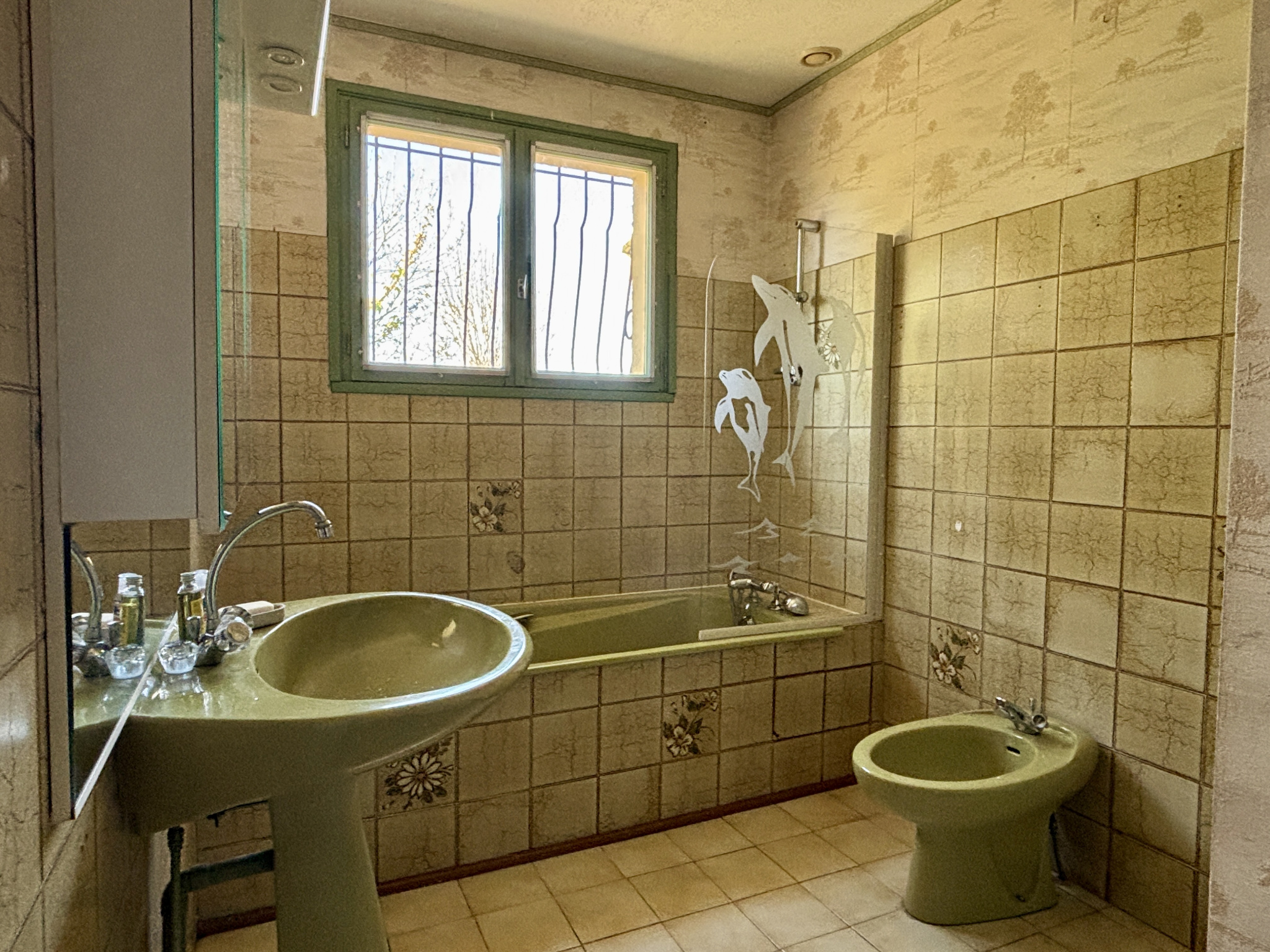Elle se compose d'une entrée, d'un séjour-salon lumineux exposé plein sud avec cheminée, d'une cuisine séparée, ainsi que d'un dégagement desservant trois chambres avec placards, dont une avec point d'eau et douche. Vous trouverez également une salle de bains et des WC séparés.