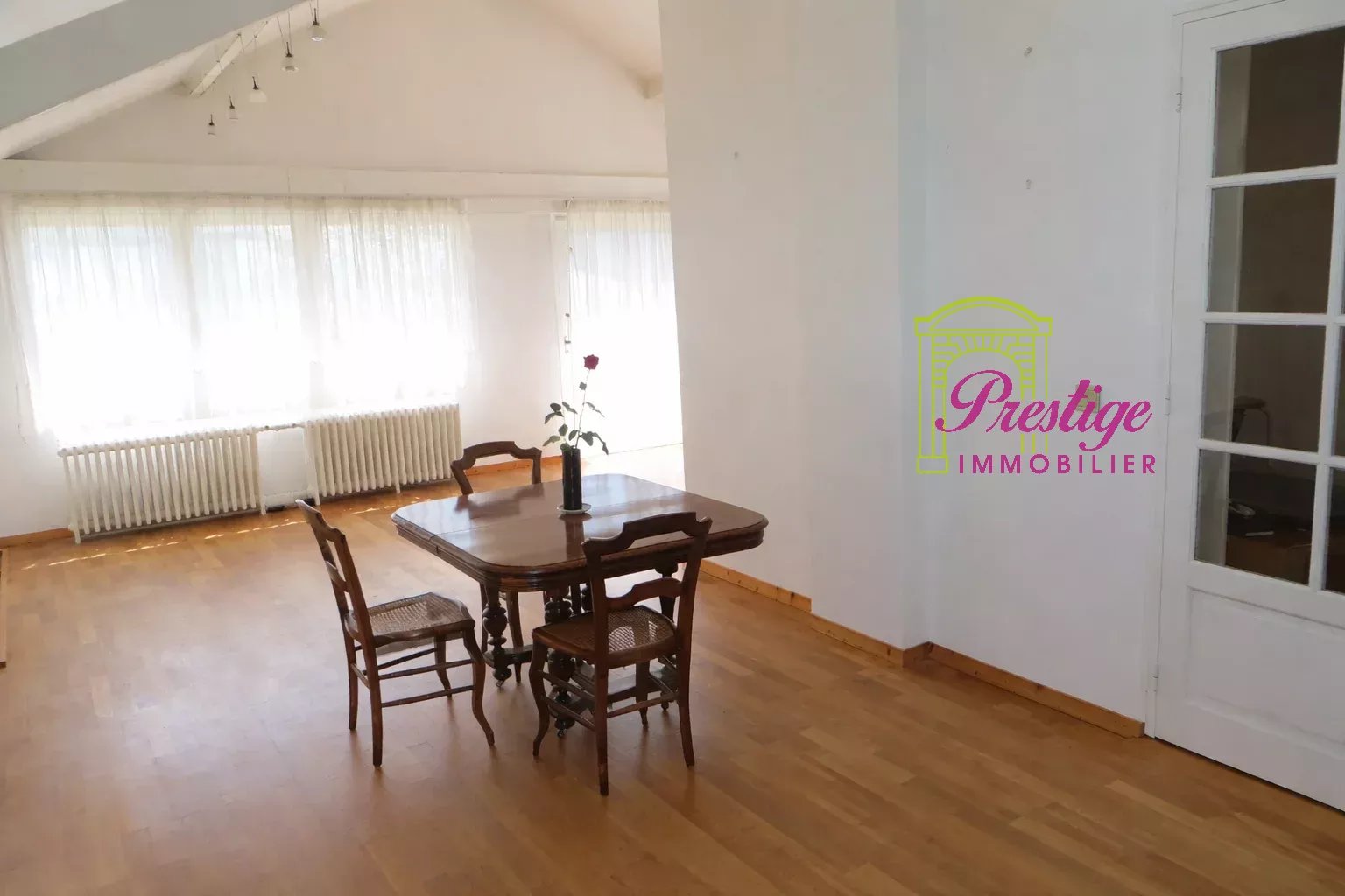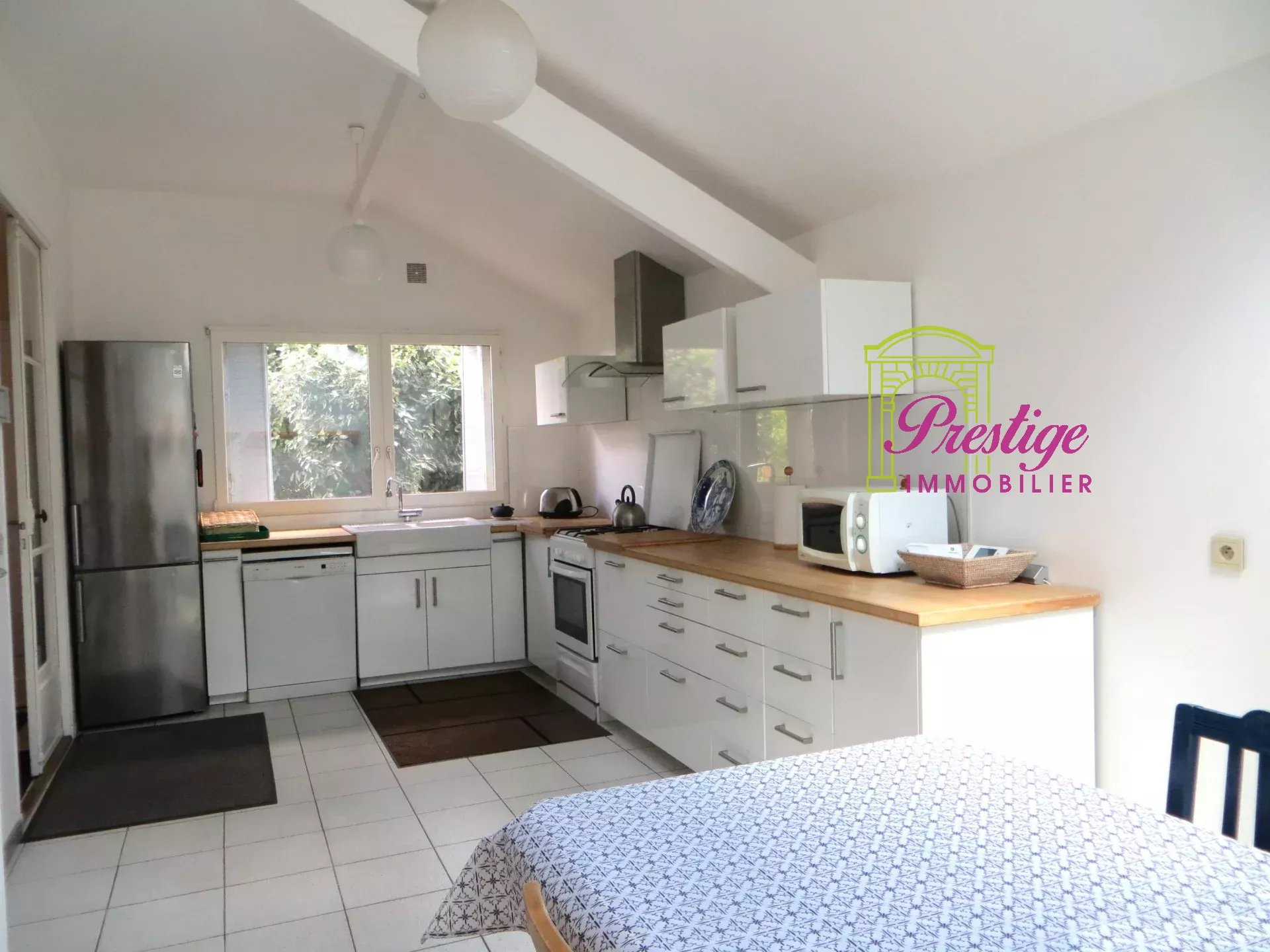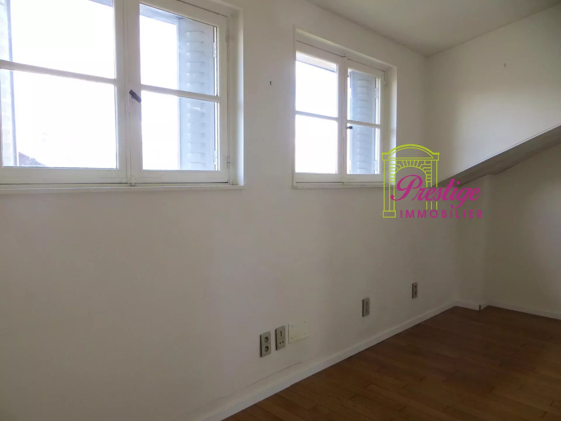 Dans quartier très calme, surprenante construction de 1920 entièrement remaniée en 1989, et dont l'intérieur est inattendu par ses volumes : Le rez-de-chaussée comprend une cuisine aménagée, un dégagement, un séjour, un salon avec poêle à bois, des toilettes, une salle de bains, une salle d'eau, et une chambre,