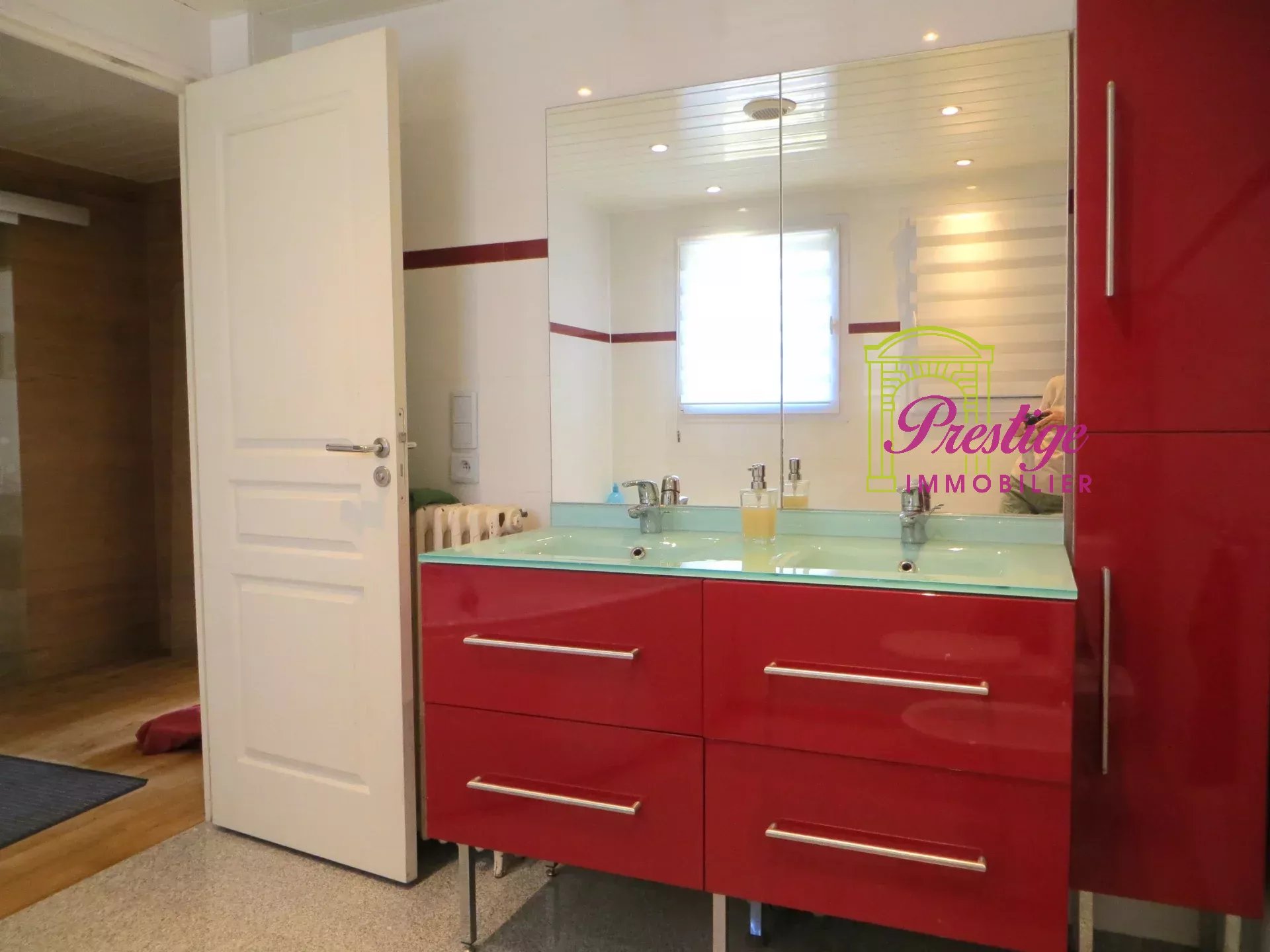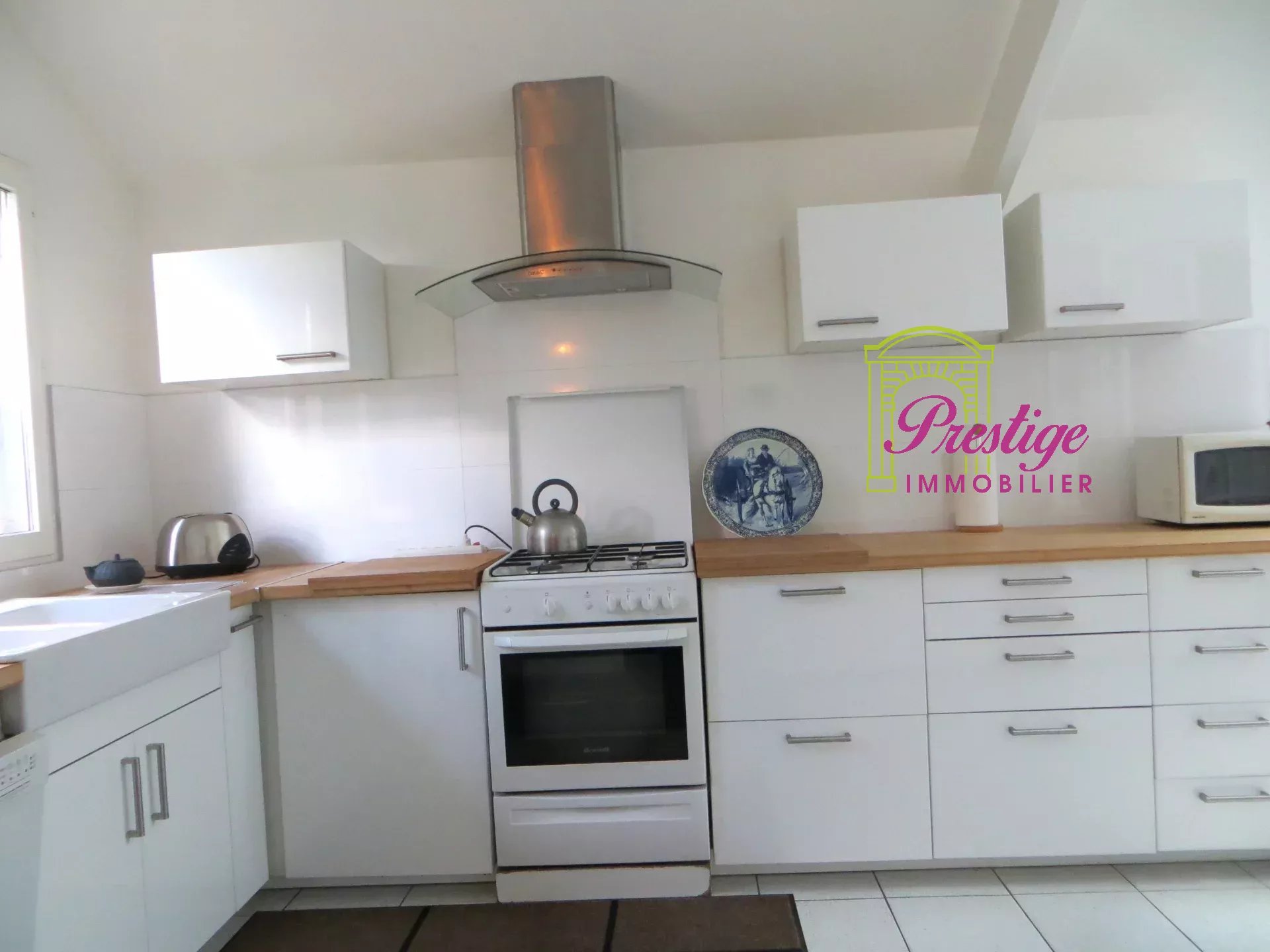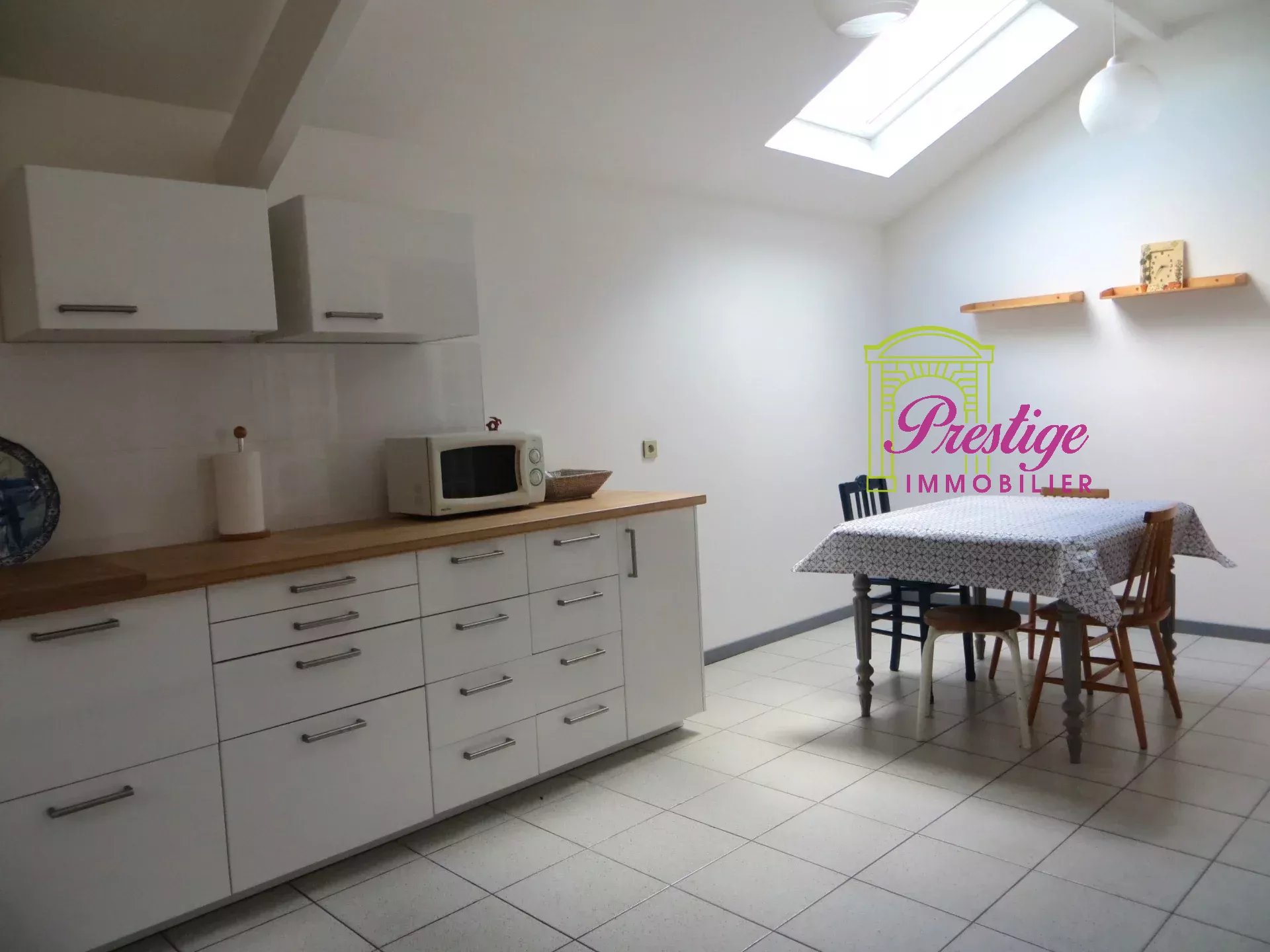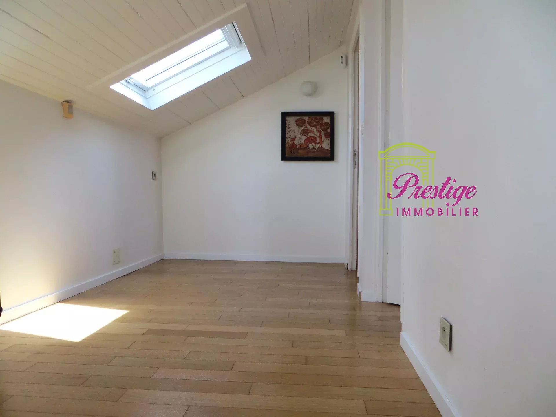 Dans quartier très calme, surprenante construction de 1920 entièrement remaniée en 1989, et dont l'intérieur est inattendu par ses volumes : Le rez-de-chaussée comprend une cuisine aménagée, un dégagement, un séjour, un salon avec poêle à bois, des toilettes, une salle de bains, une salle d'eau, et une chambre,