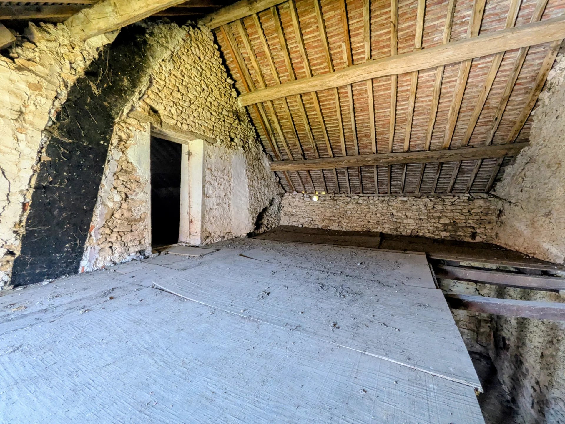 Vous trouverez de beaux volumes à faire renaitre entièrement, des possibilités d'agrandissement grâce à un grand grenier de plus de 65m2.