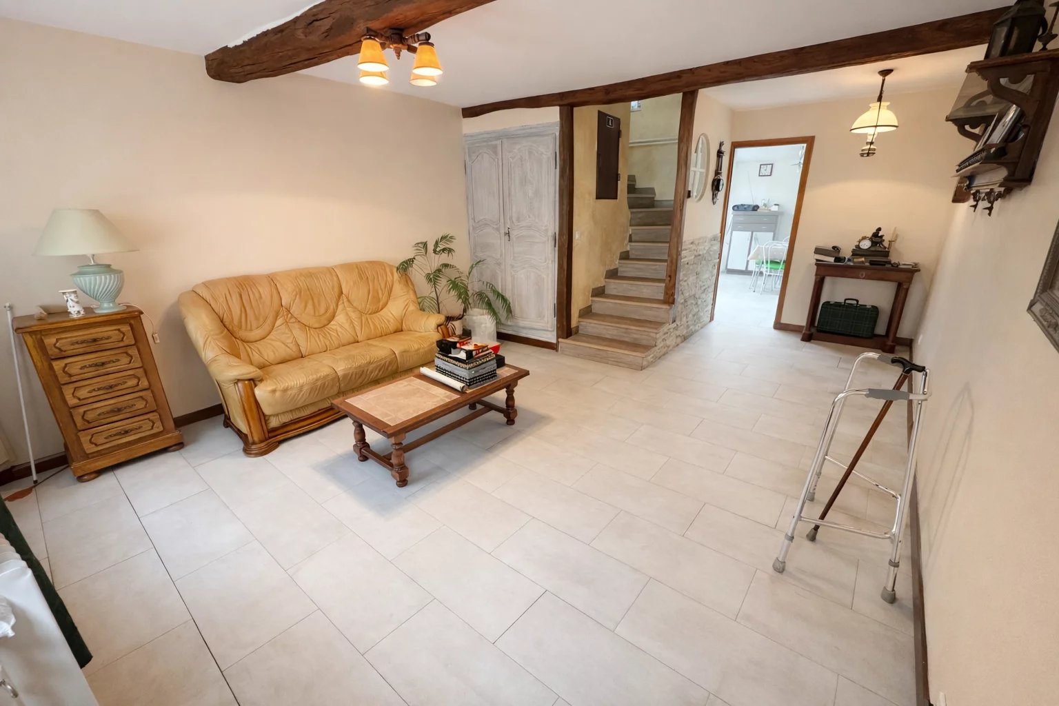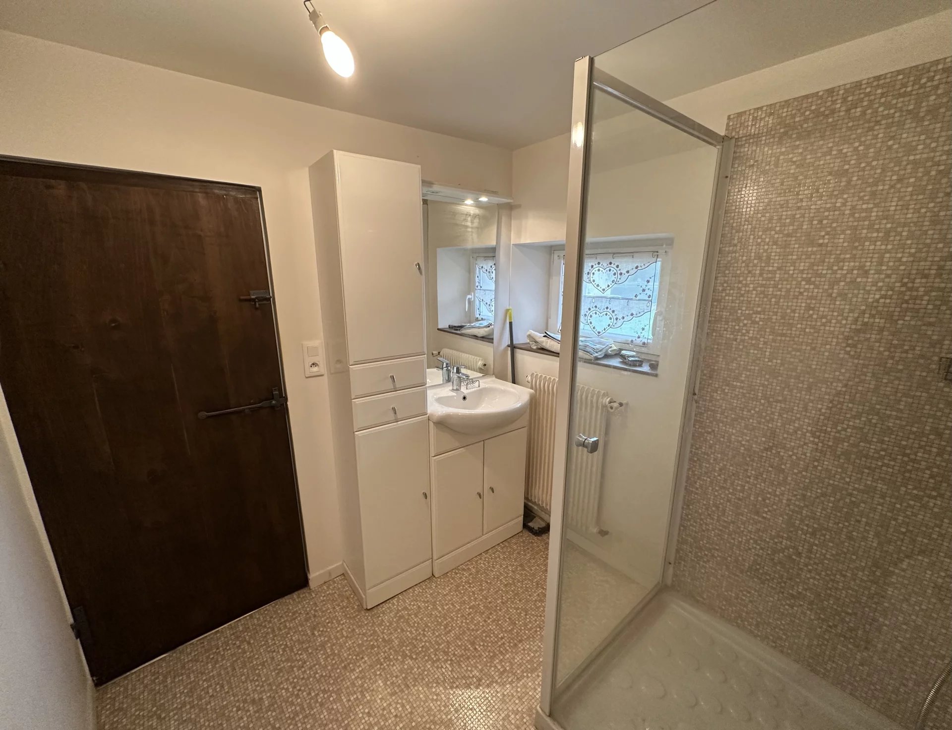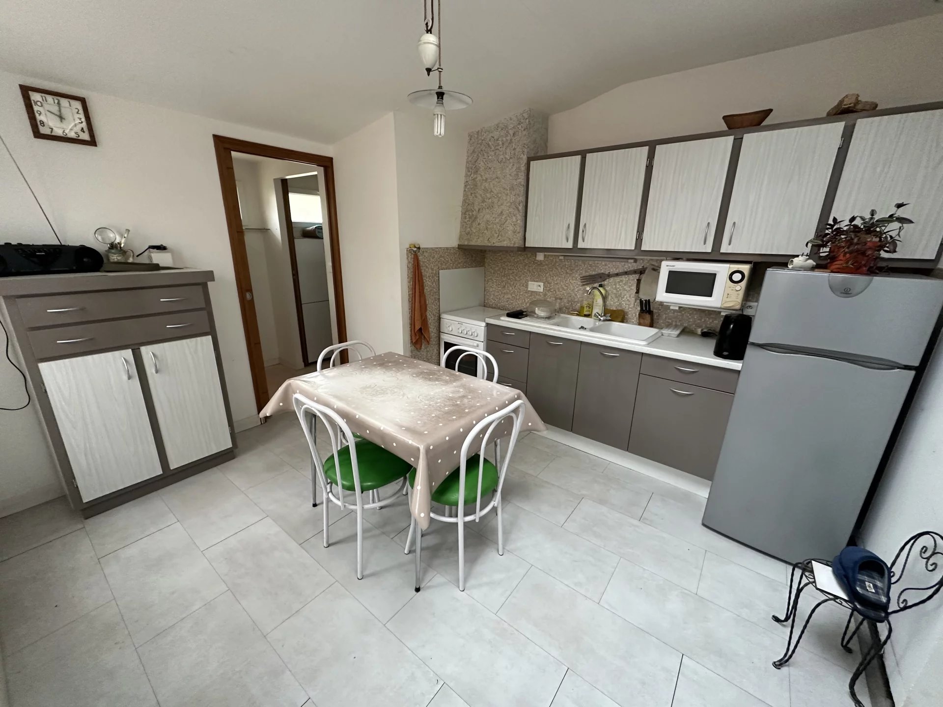 Au rez-de-chaussée, vous trouverez une entrée ouvrant sur un séjour, une cuisine, ainsi qu’une salle d’eau avec WC.