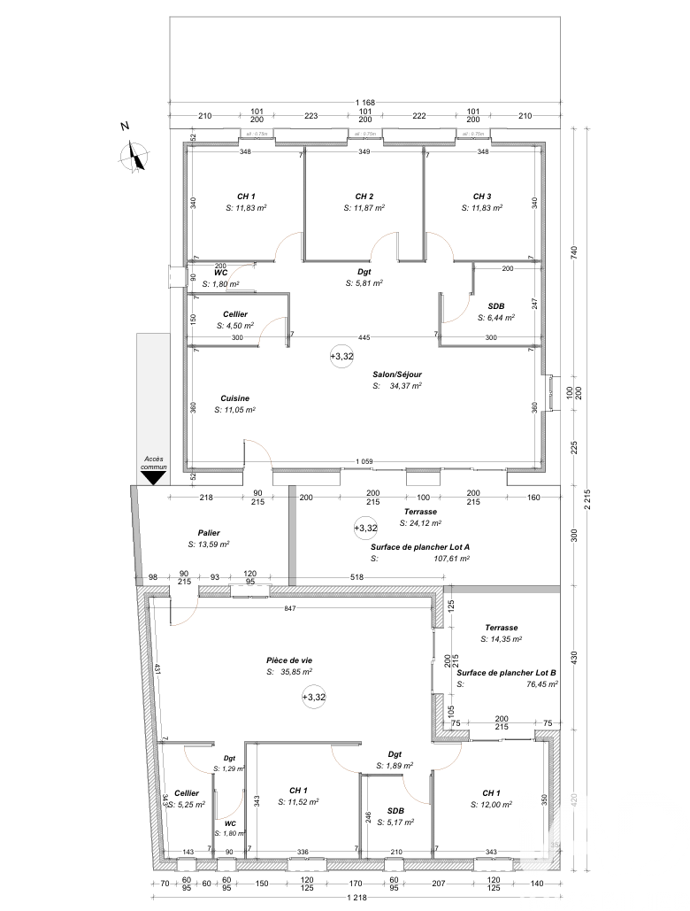 ? ÉTAGE (R + 1) : DEUX APPARTEMENTS